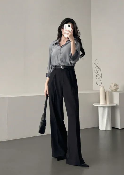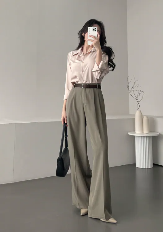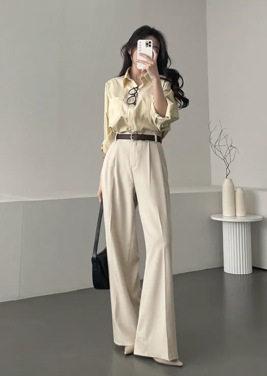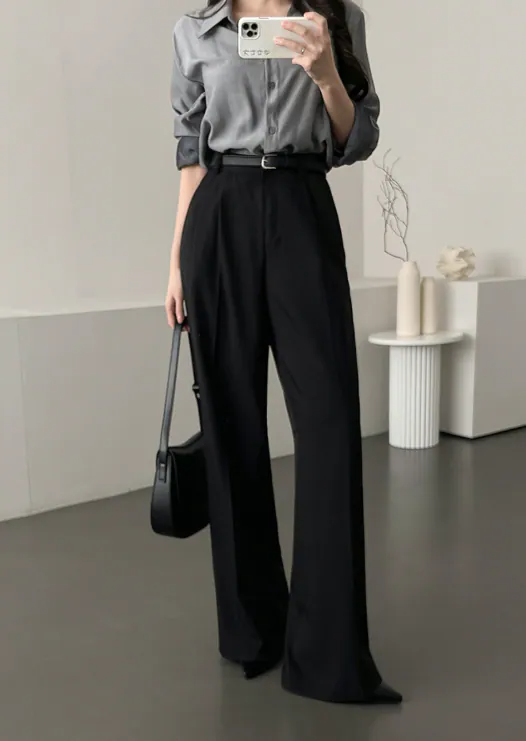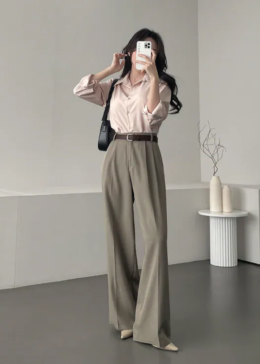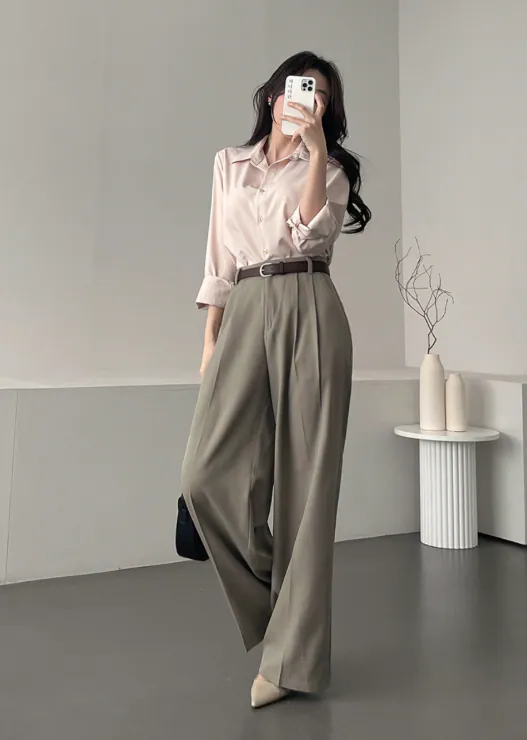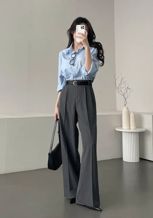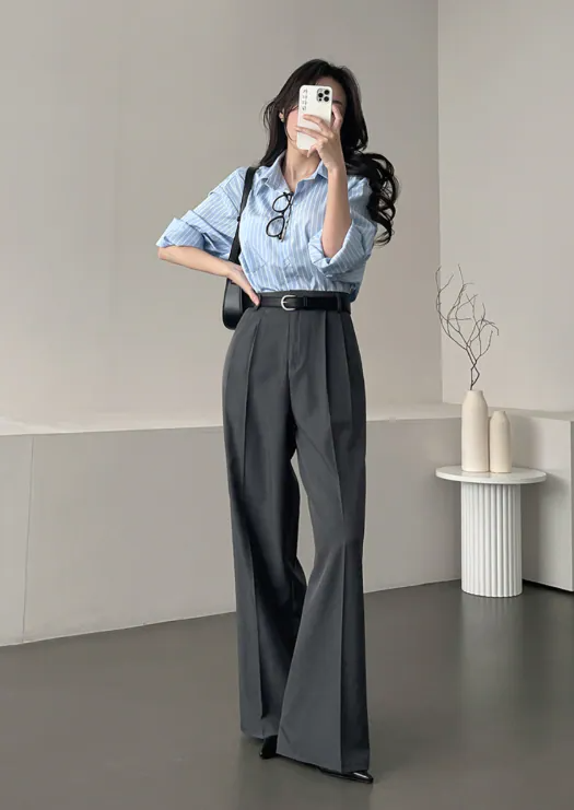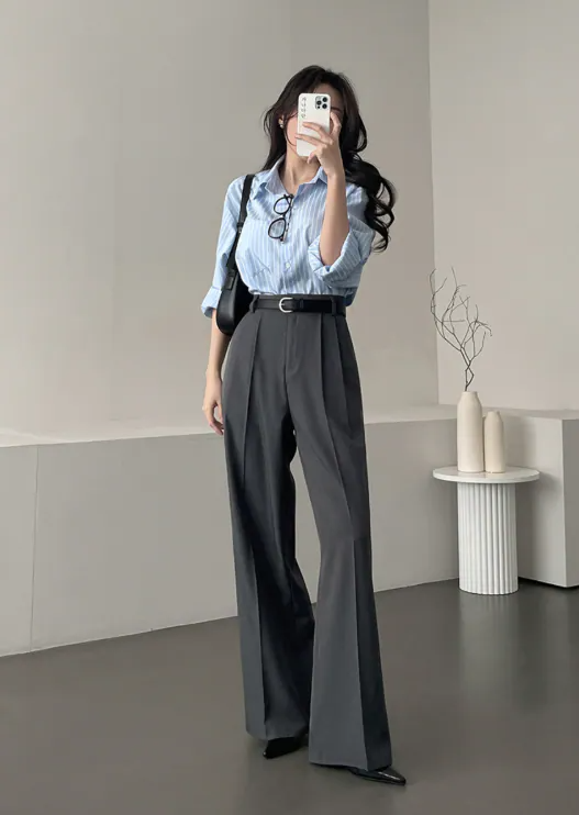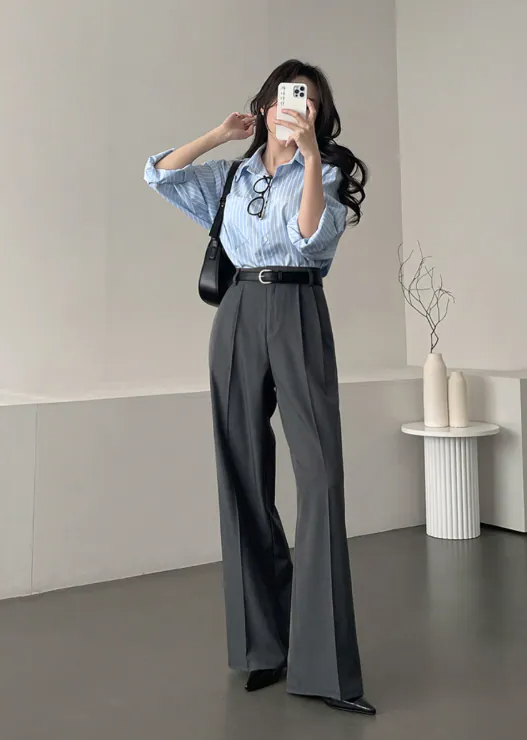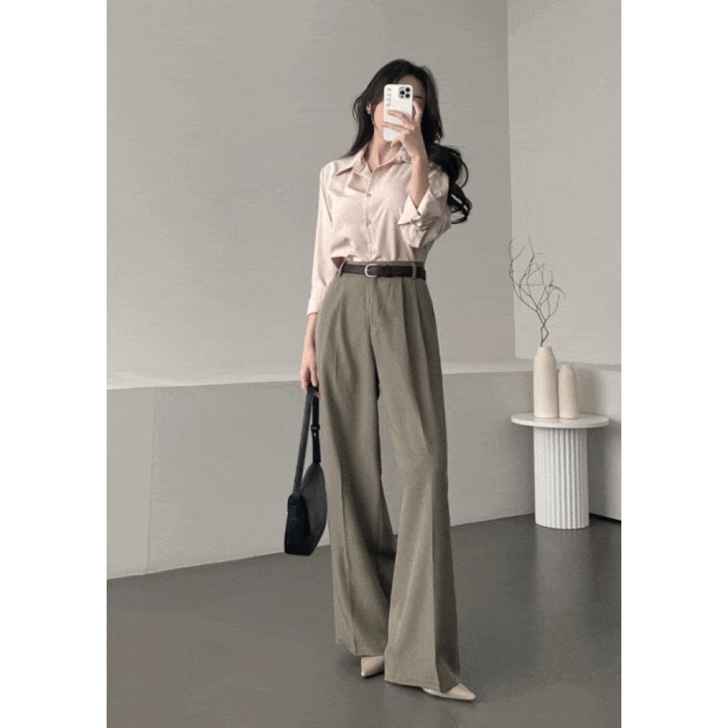 高腰兩針褶半寬西褲【S-2XL】【4色入】