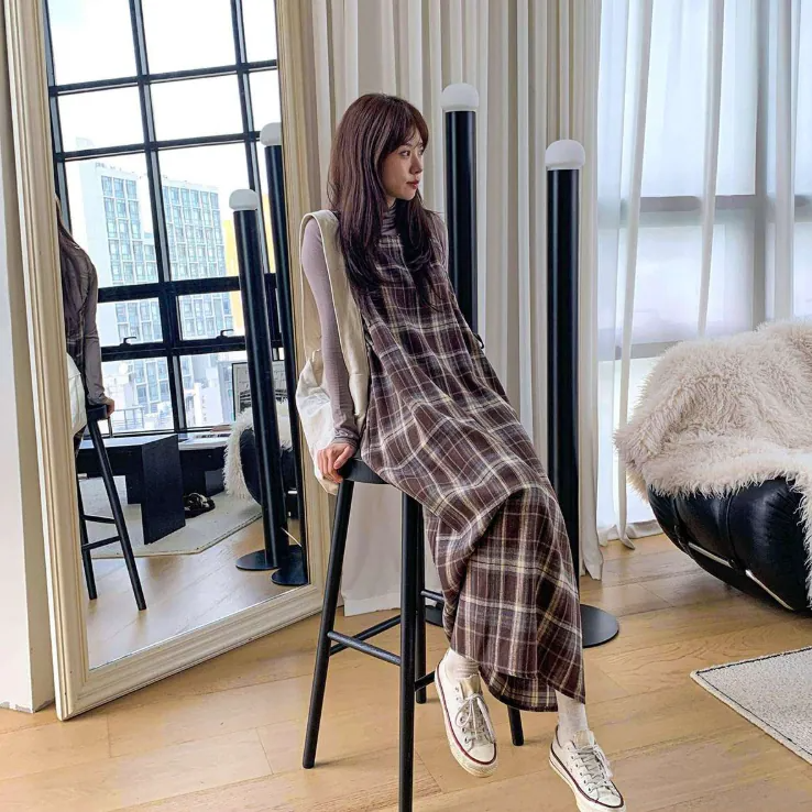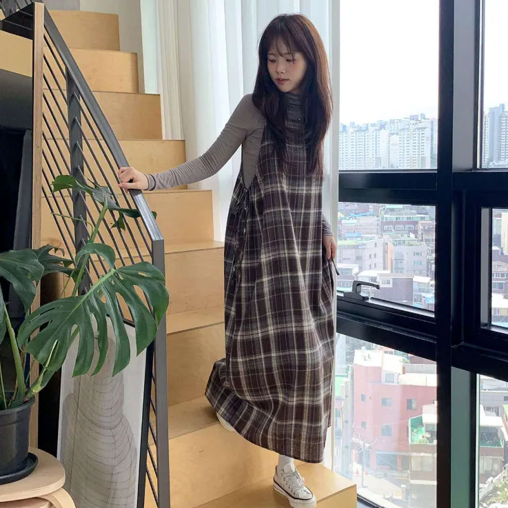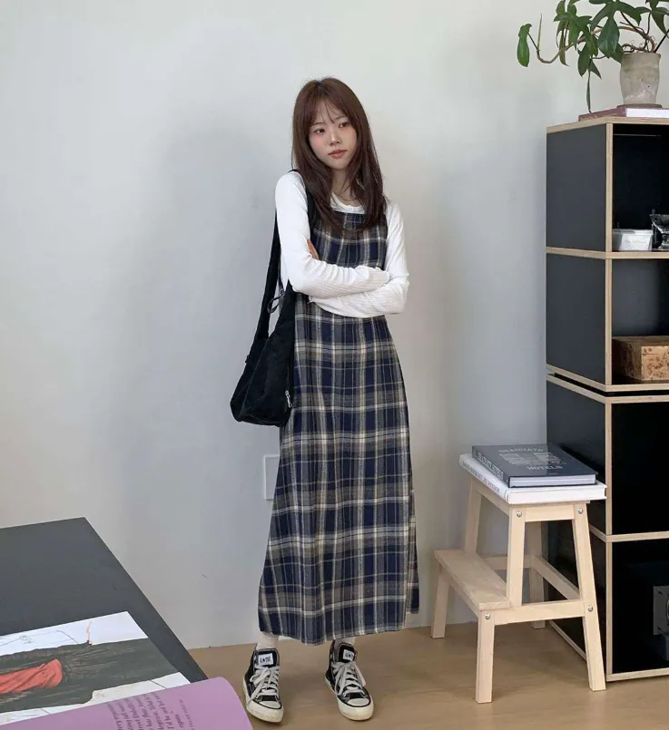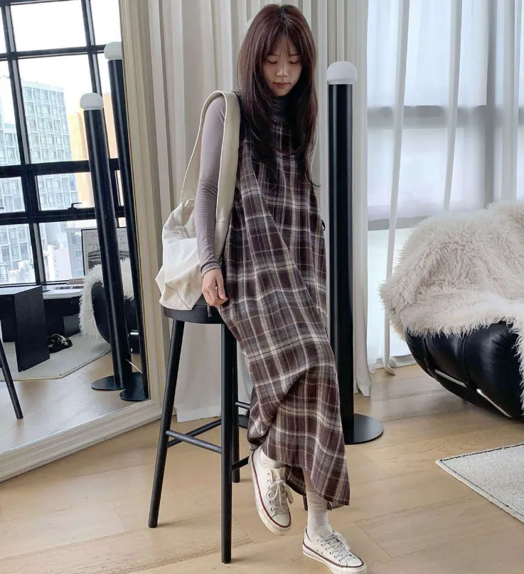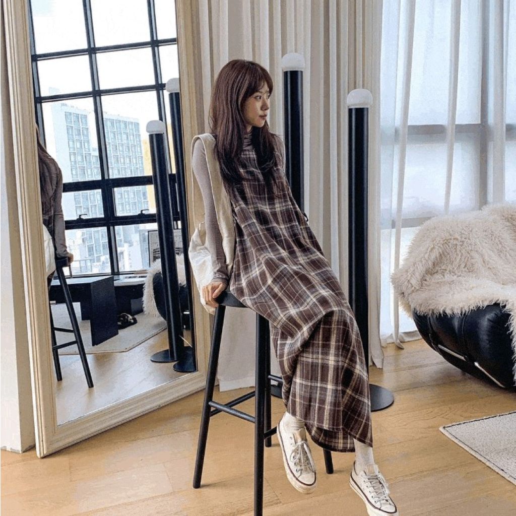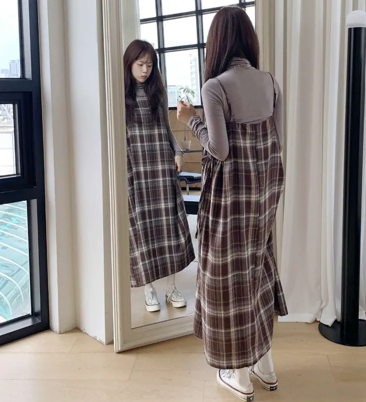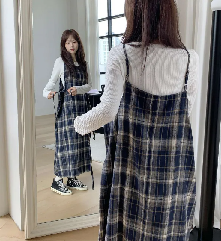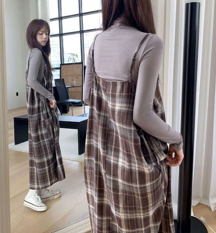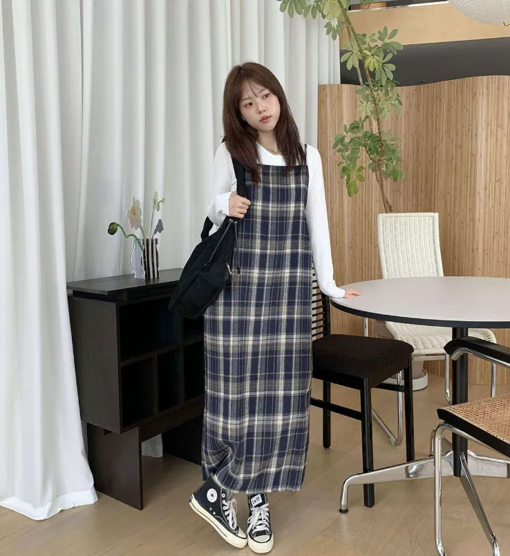 ₍˄·͈༝·͈˄₎◞︎ ̑̑好適合入秋既格仔連身長裙❤️簡單內搭素色T恤已經好好睇💕