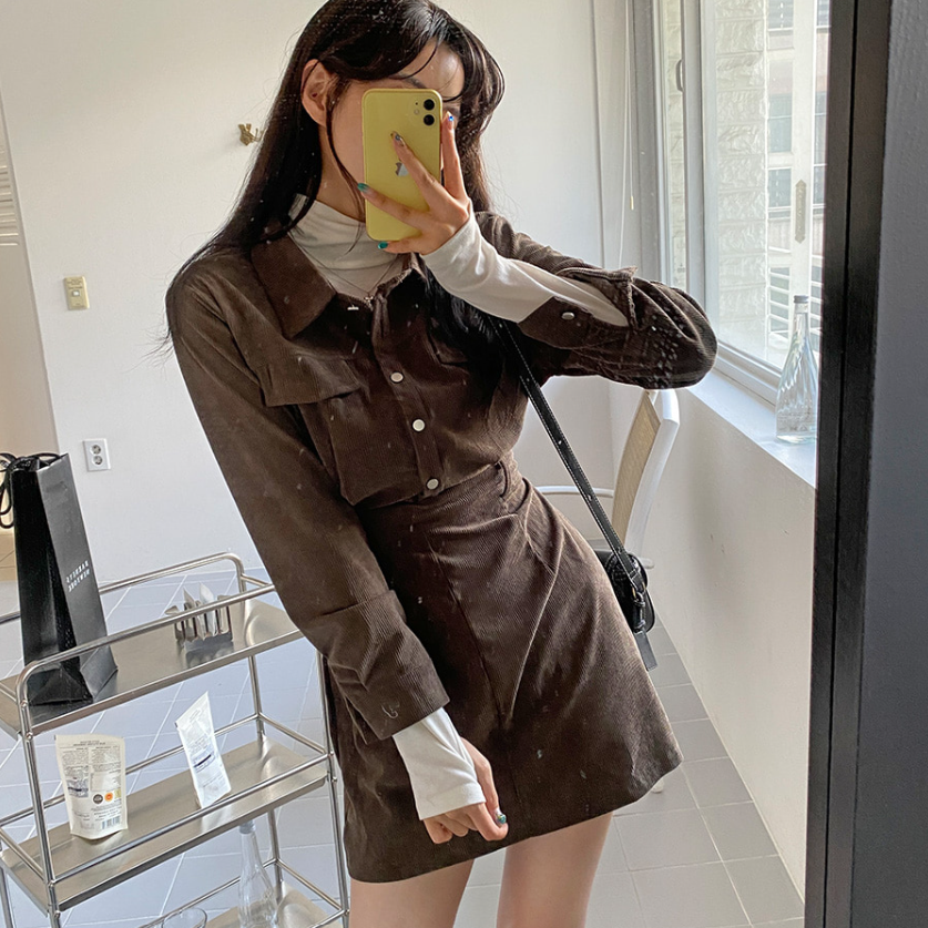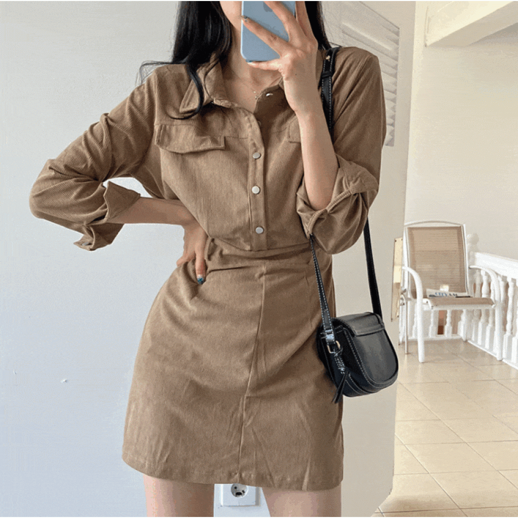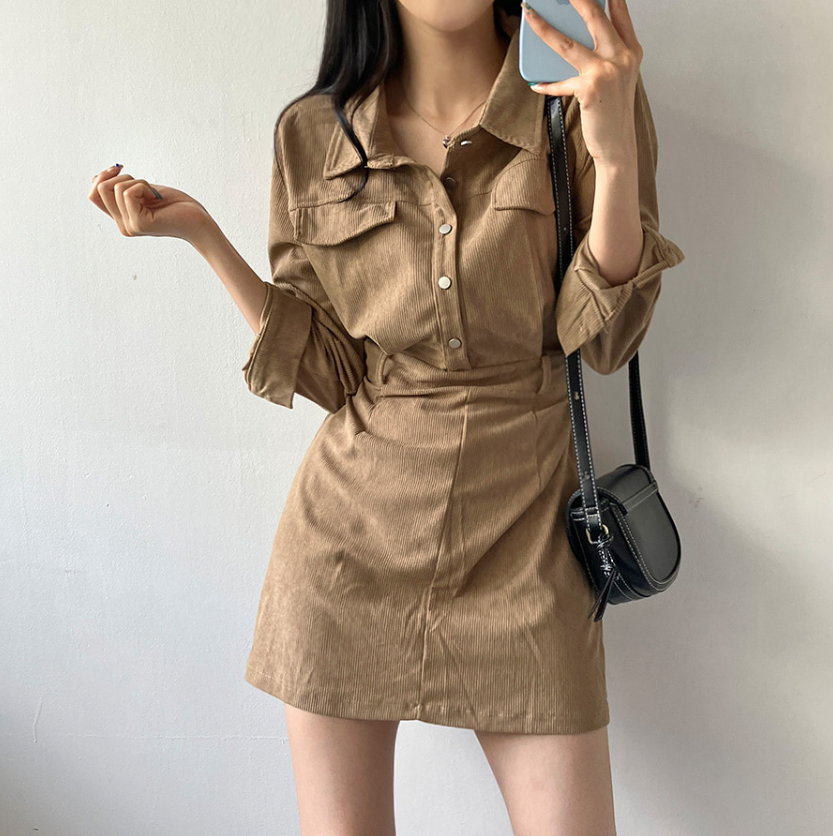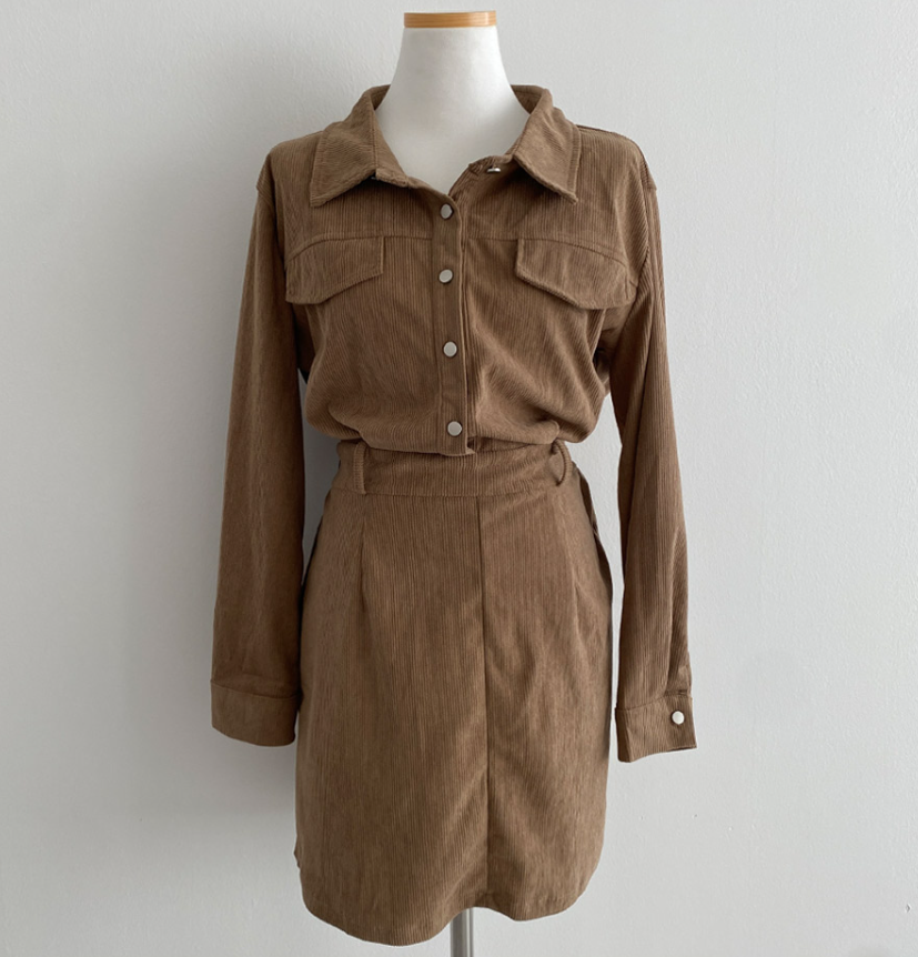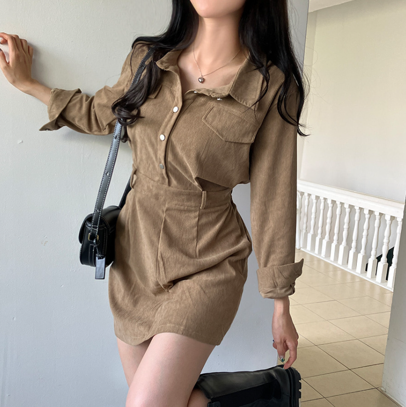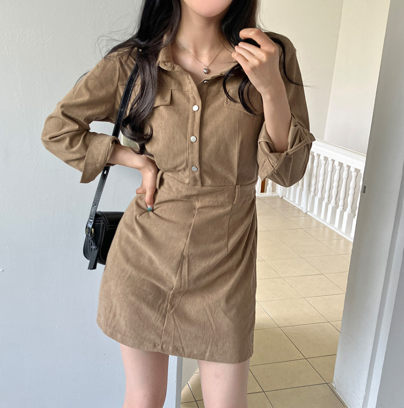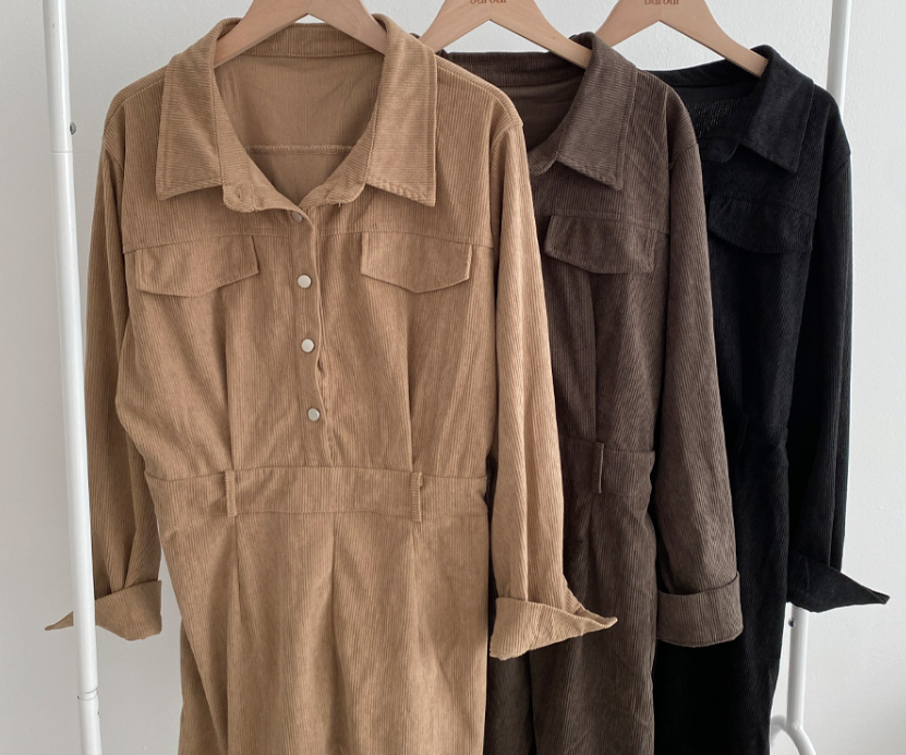 燈芯絨後橡筋腰連身裙 - 現貨