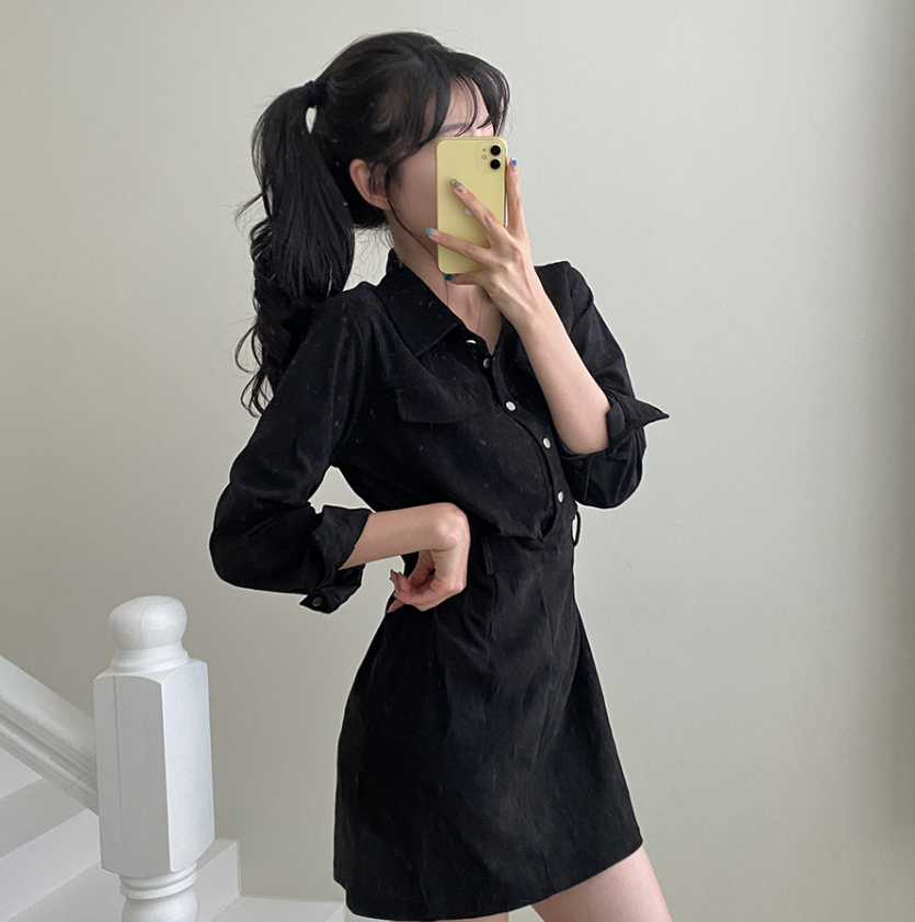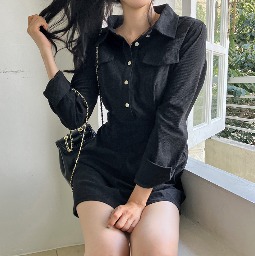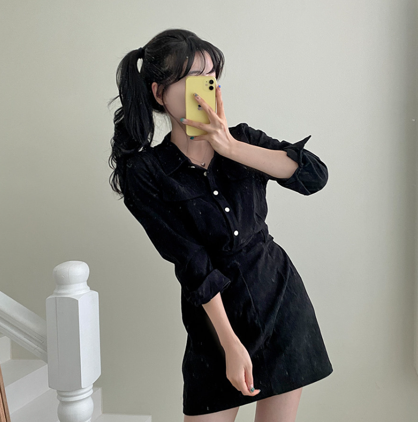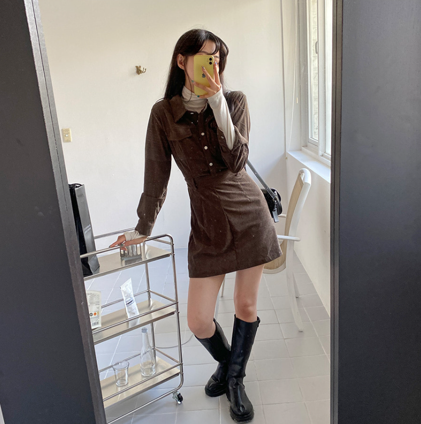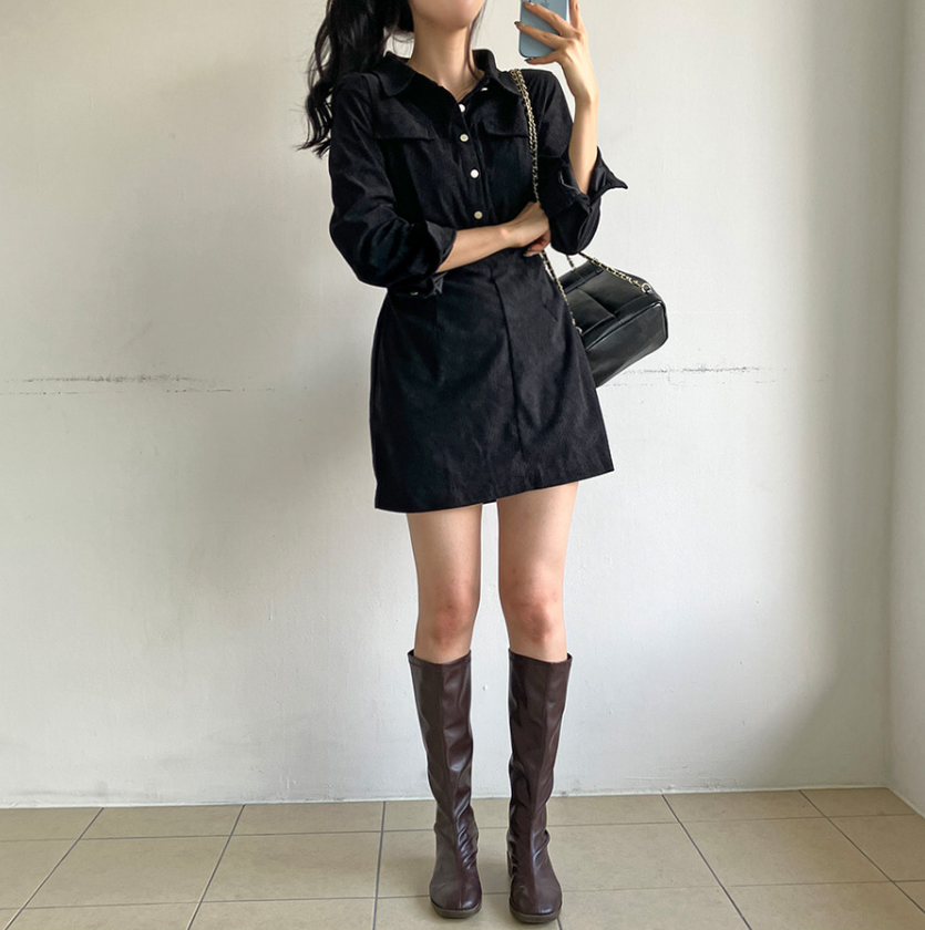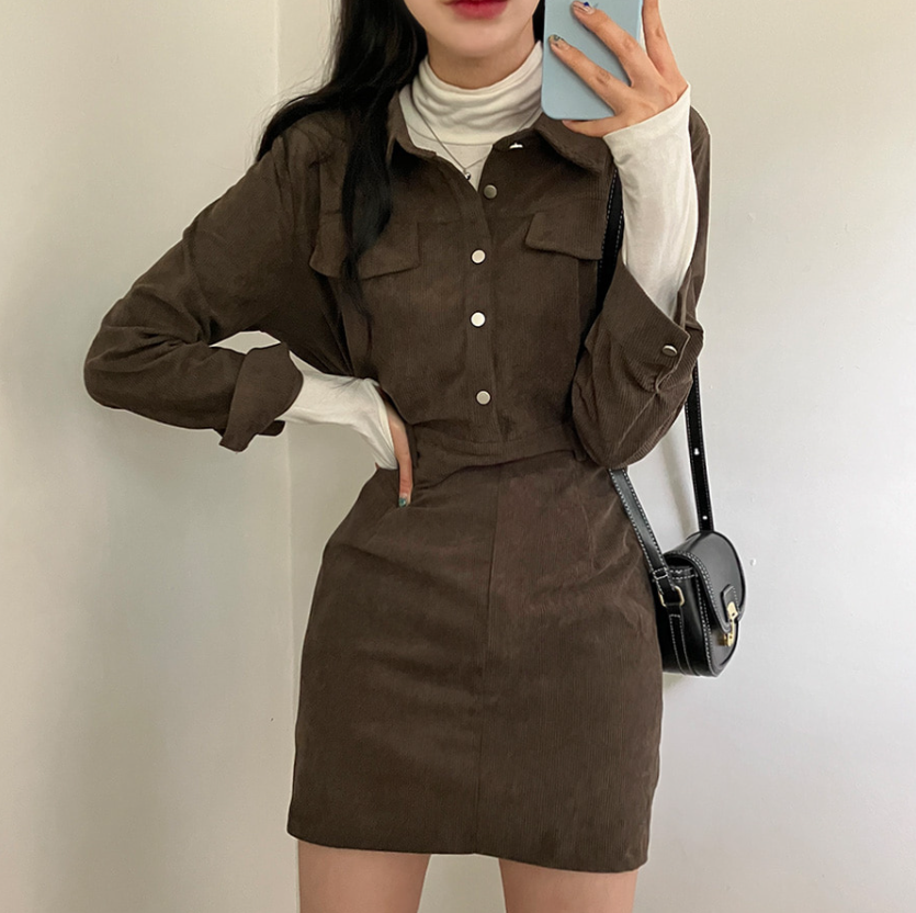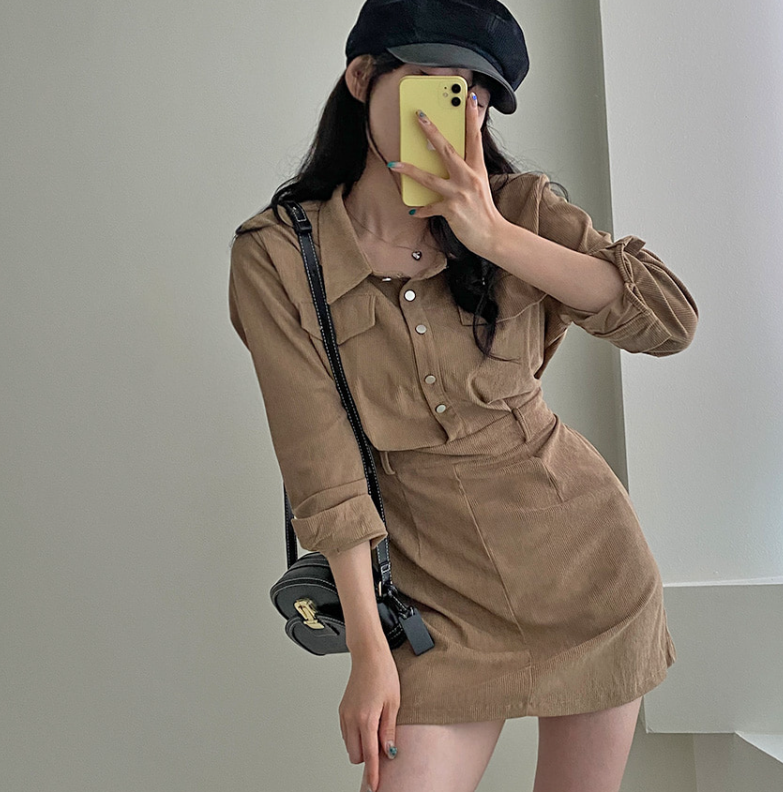 燈芯絨後橡筋腰連身裙 - 現貨