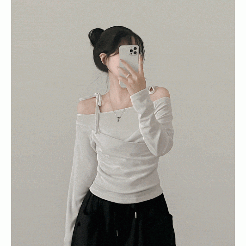 露肩綁帶交衩設計長袖【4色入】 - 現貨