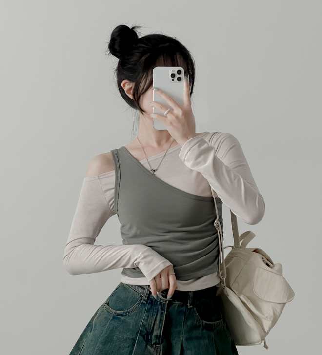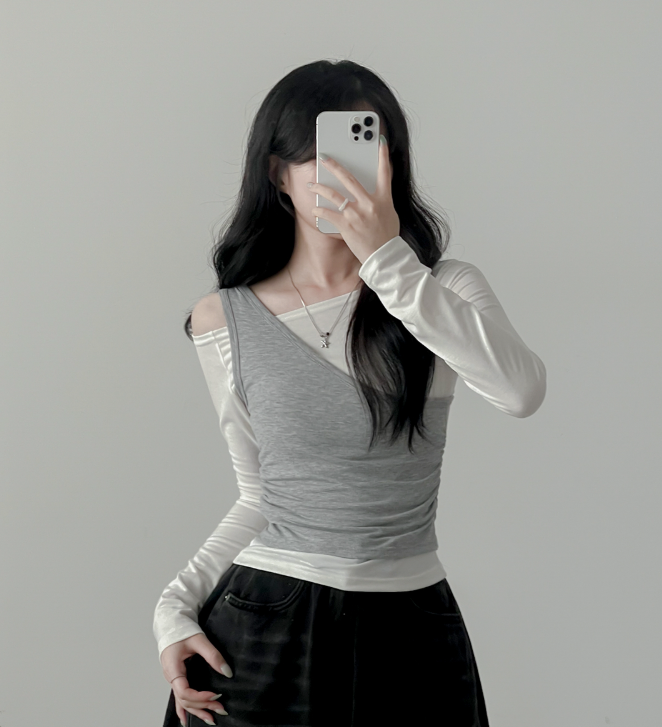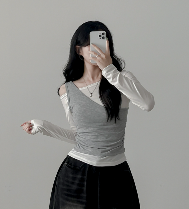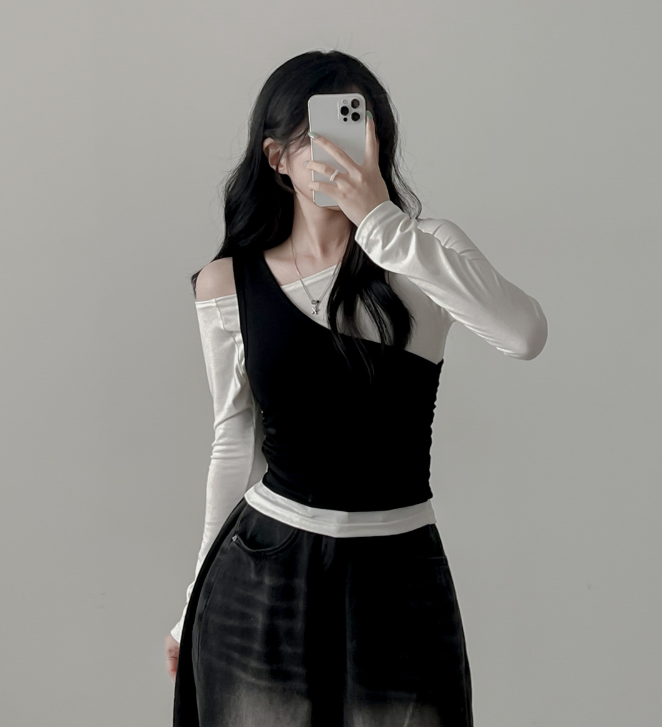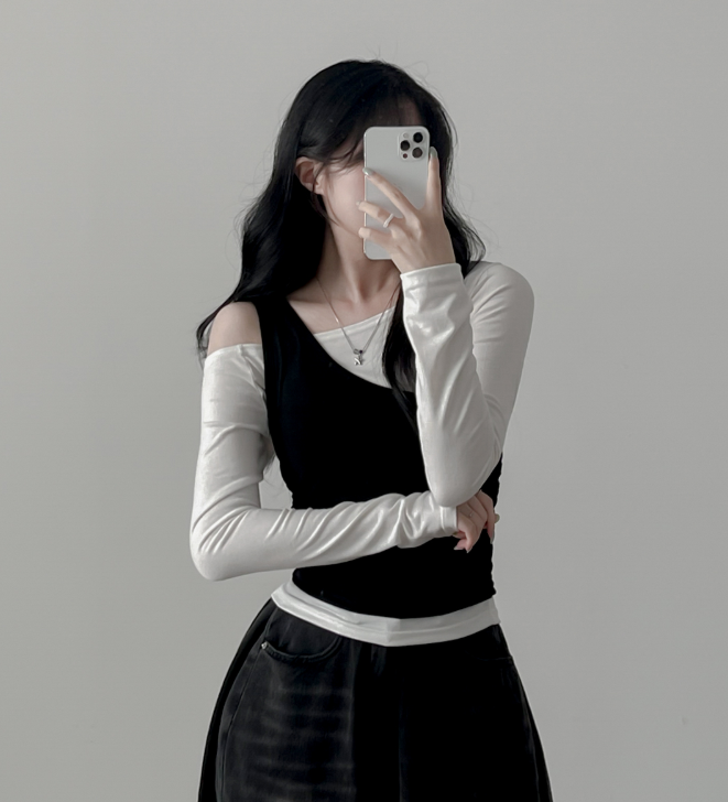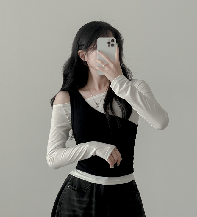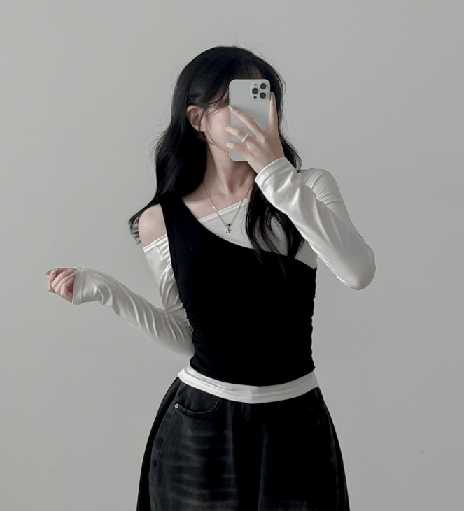 (•‾⌣‾•)拼色疊穿長袖💕簡約中帶點不平凡❤️