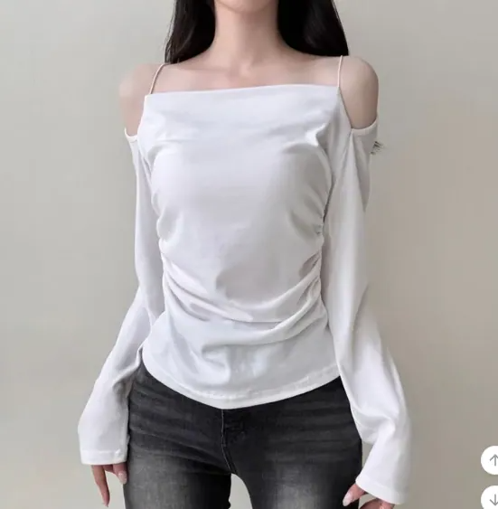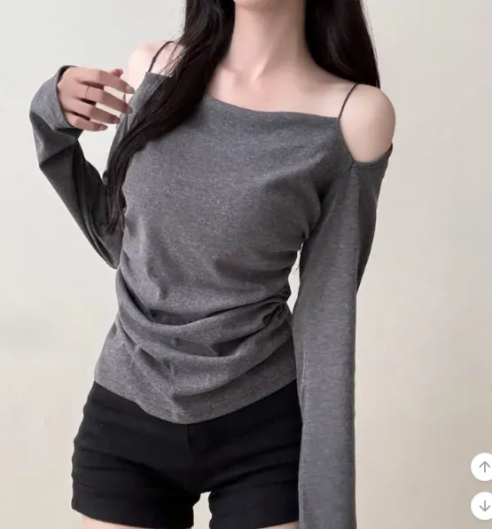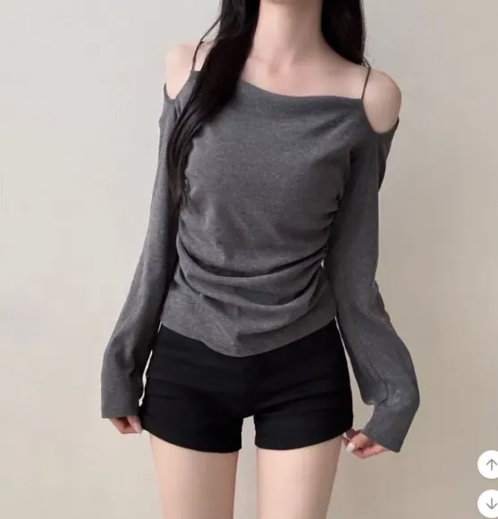 (•‾⌣‾•)單露肩多色短衛衣❤️日常穿搭必不可少💕