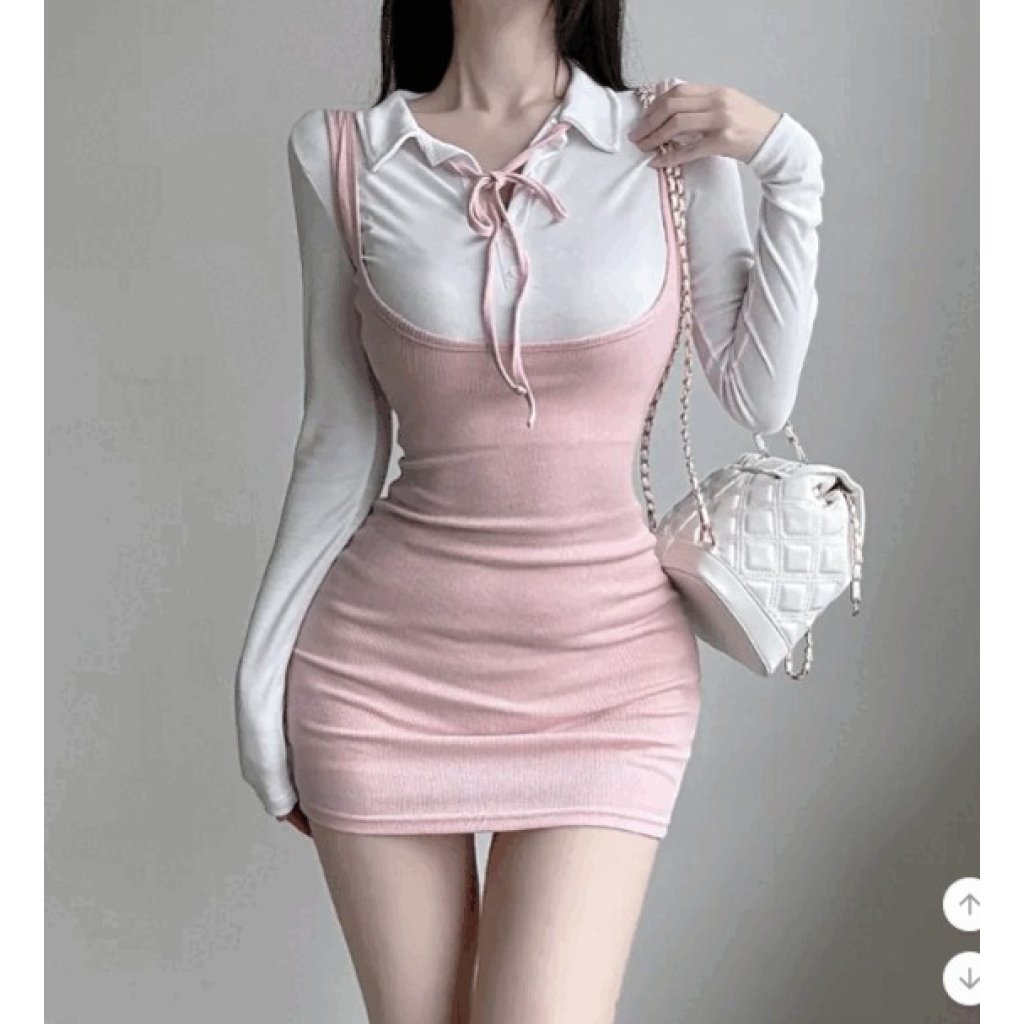 ₍˄·͈༝·͈˄₎◞︎ ̑̑拼色綁帶連身裙💕出街或者約會都好適合❤️