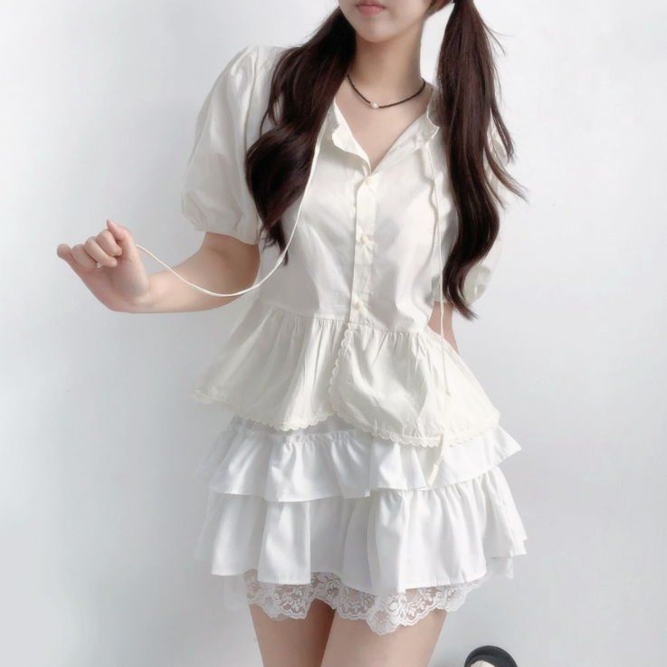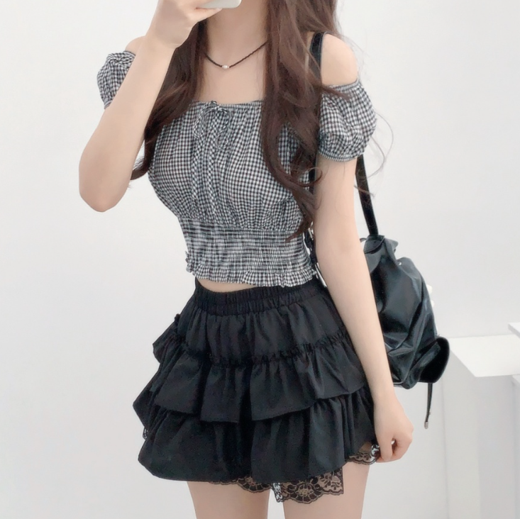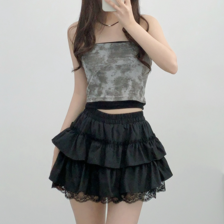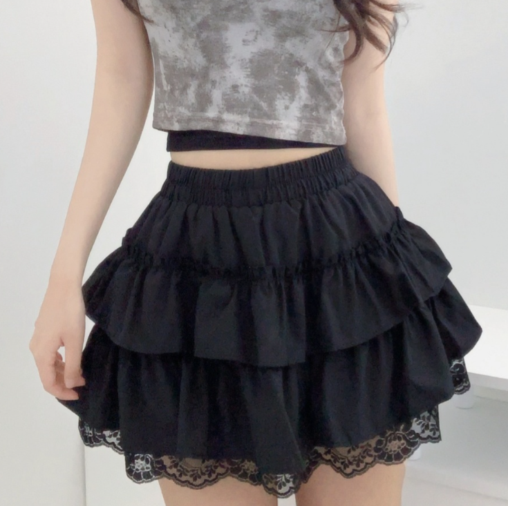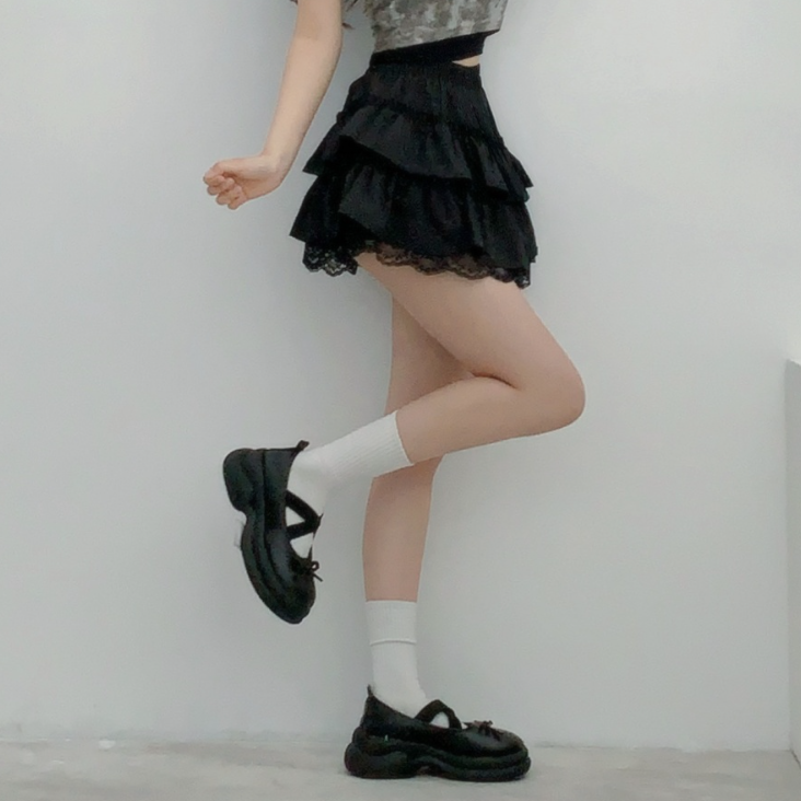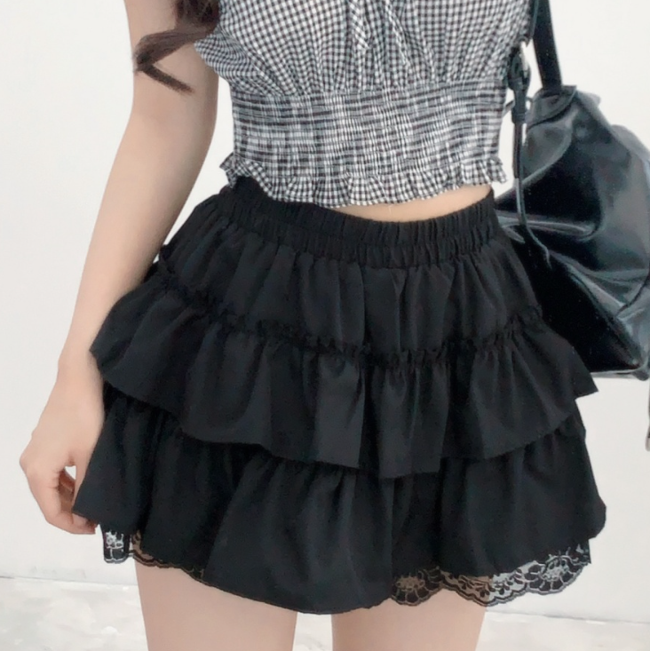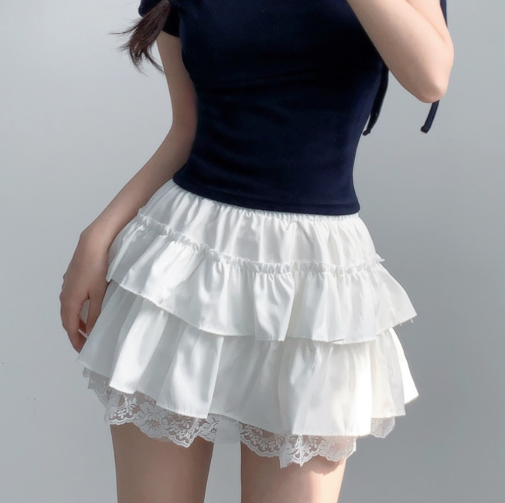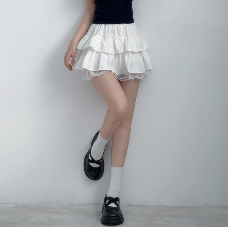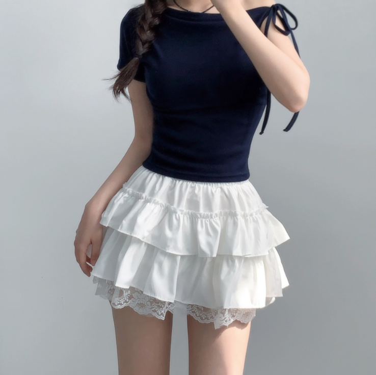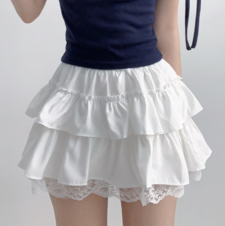雙層蕾絲荷葉邊半身裙【2色入】 - 現貨
