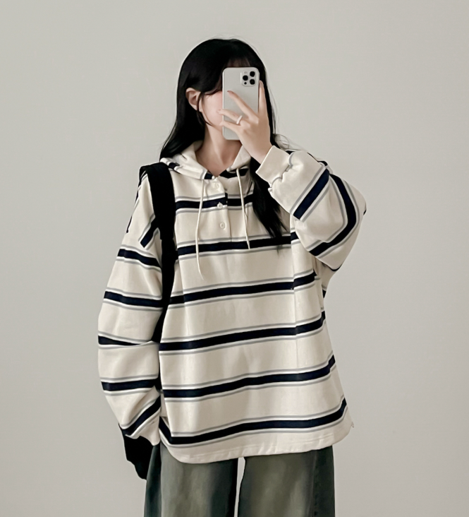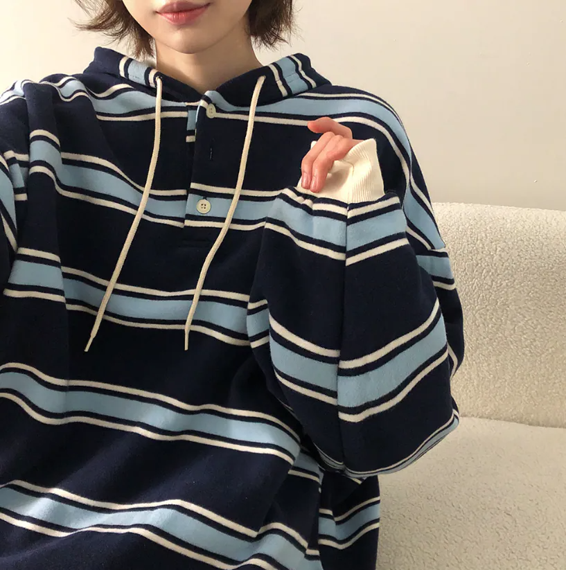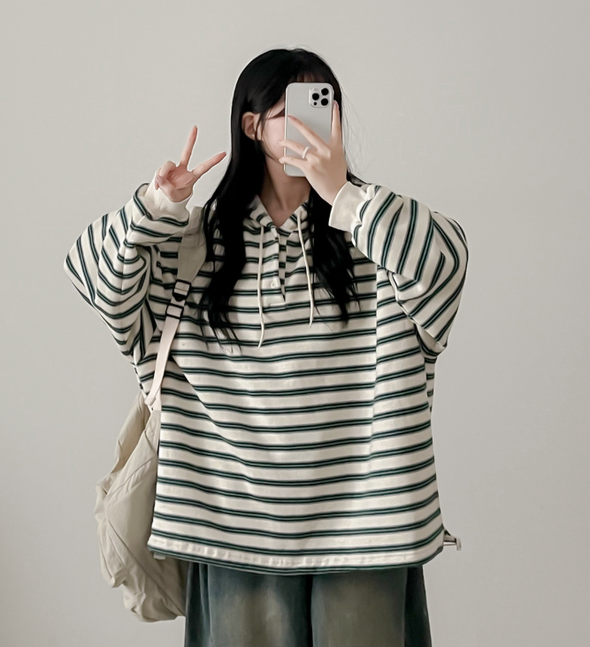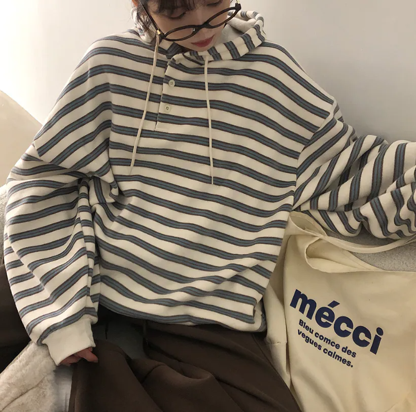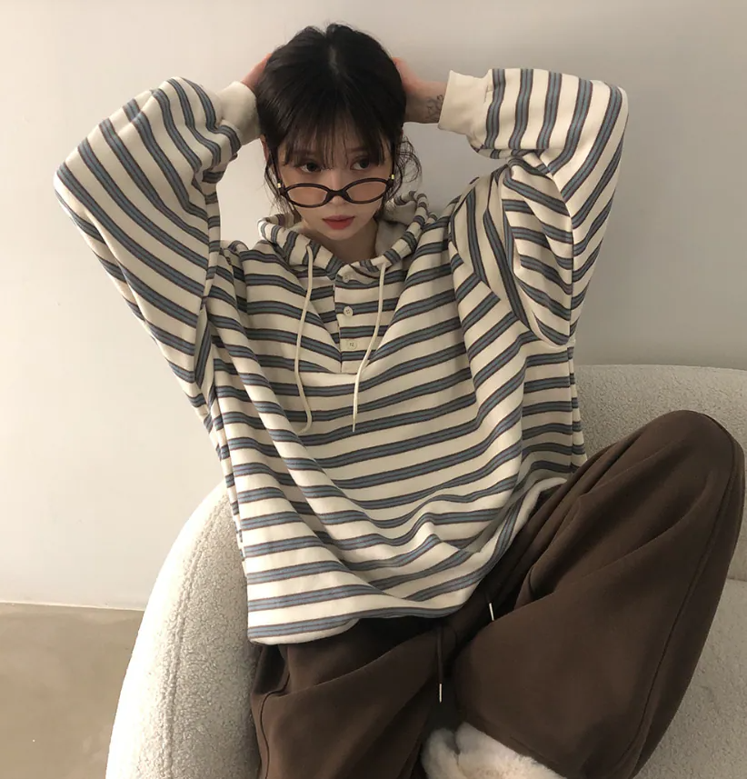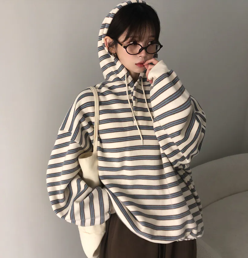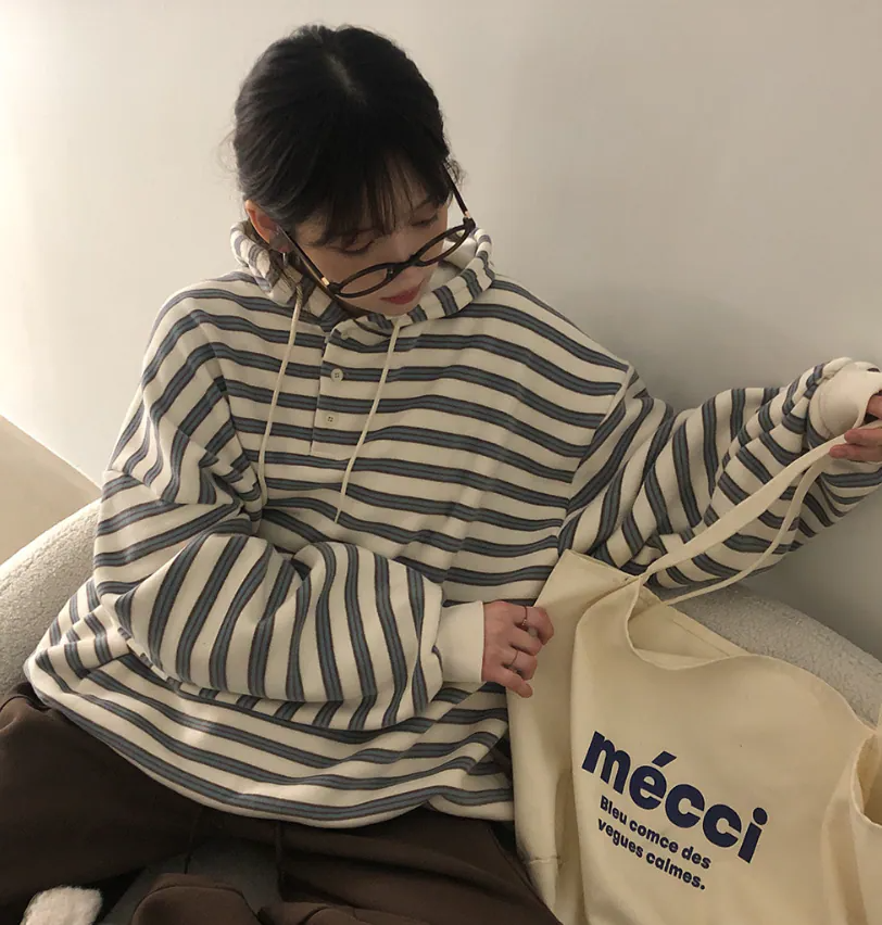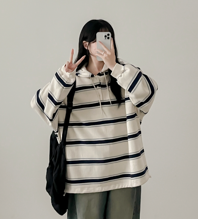寬鬆條紋羊毛連帽衫【男女可穿】【4色入】