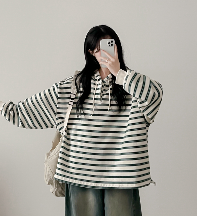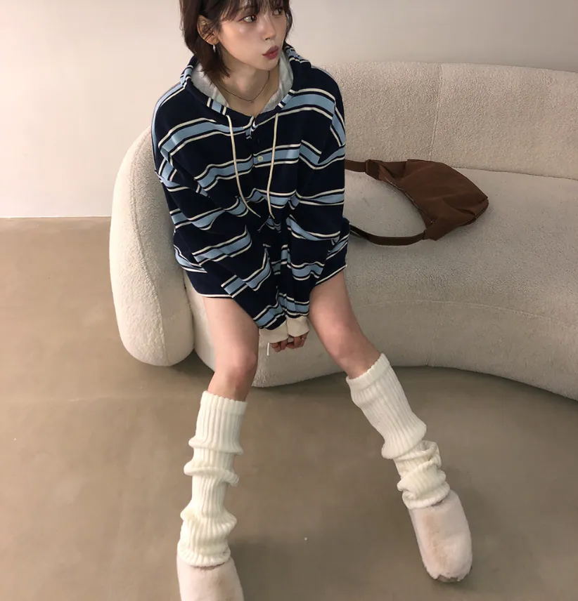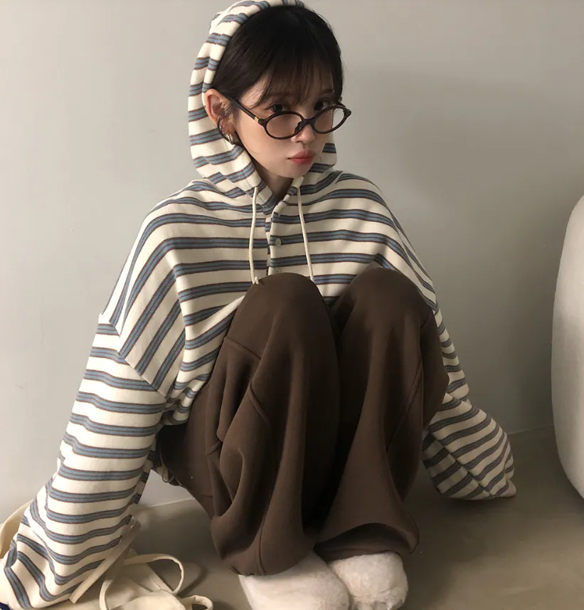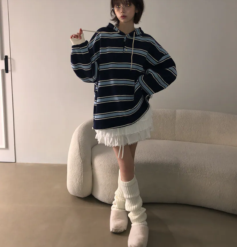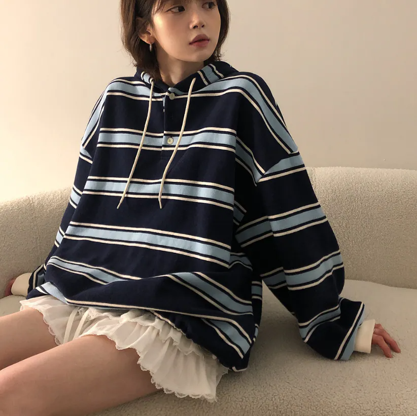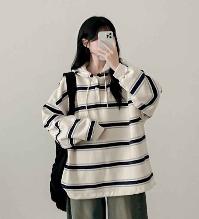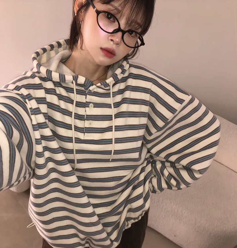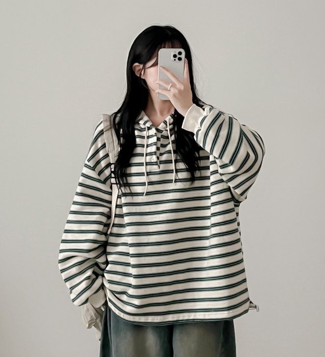 寬鬆條紋羊毛連帽衫【男女可穿】【4色入】
