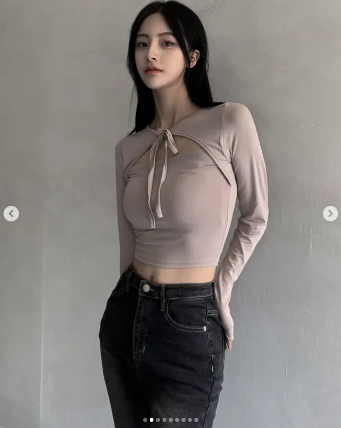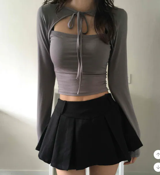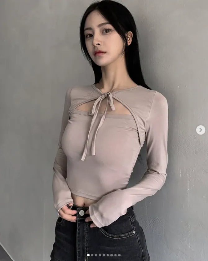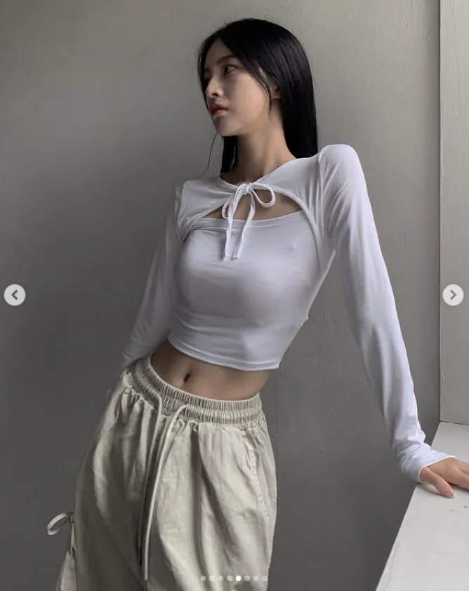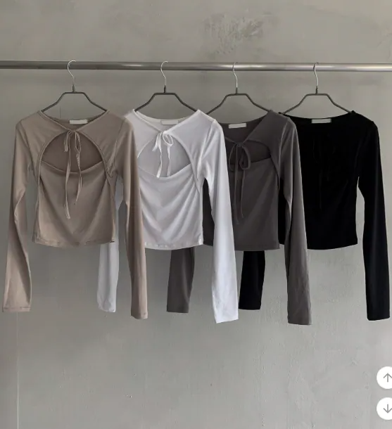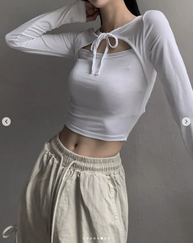 綁帶短上衣長袖【4色入】 - 現貨