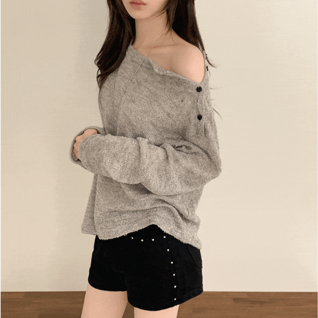 寬鬆單肩側釦長袖針織衫【3色入】 - 現貨