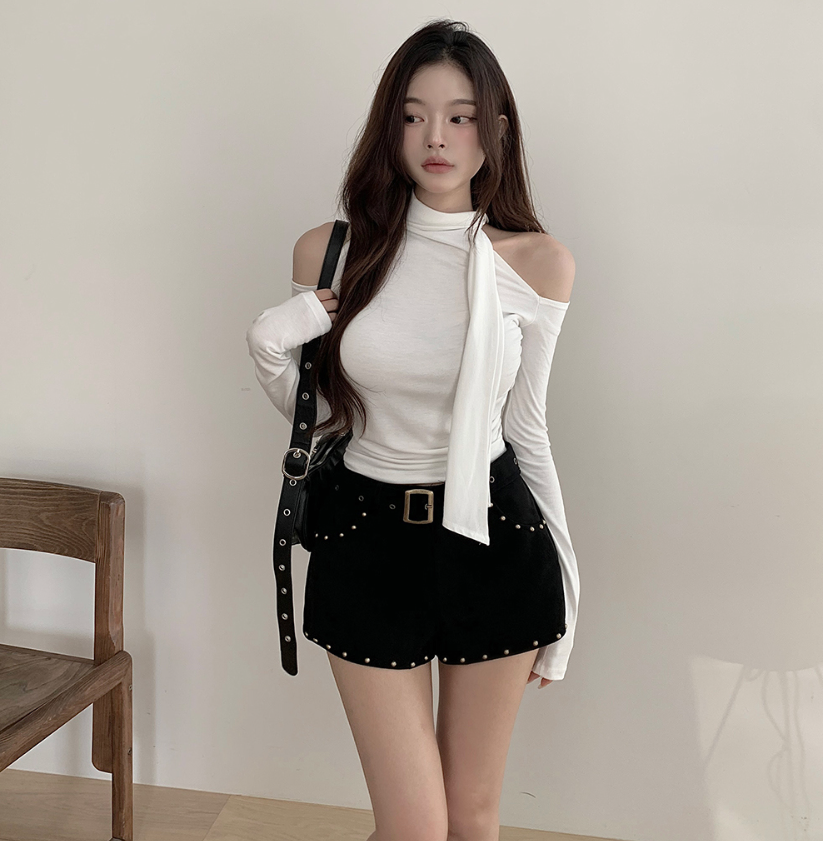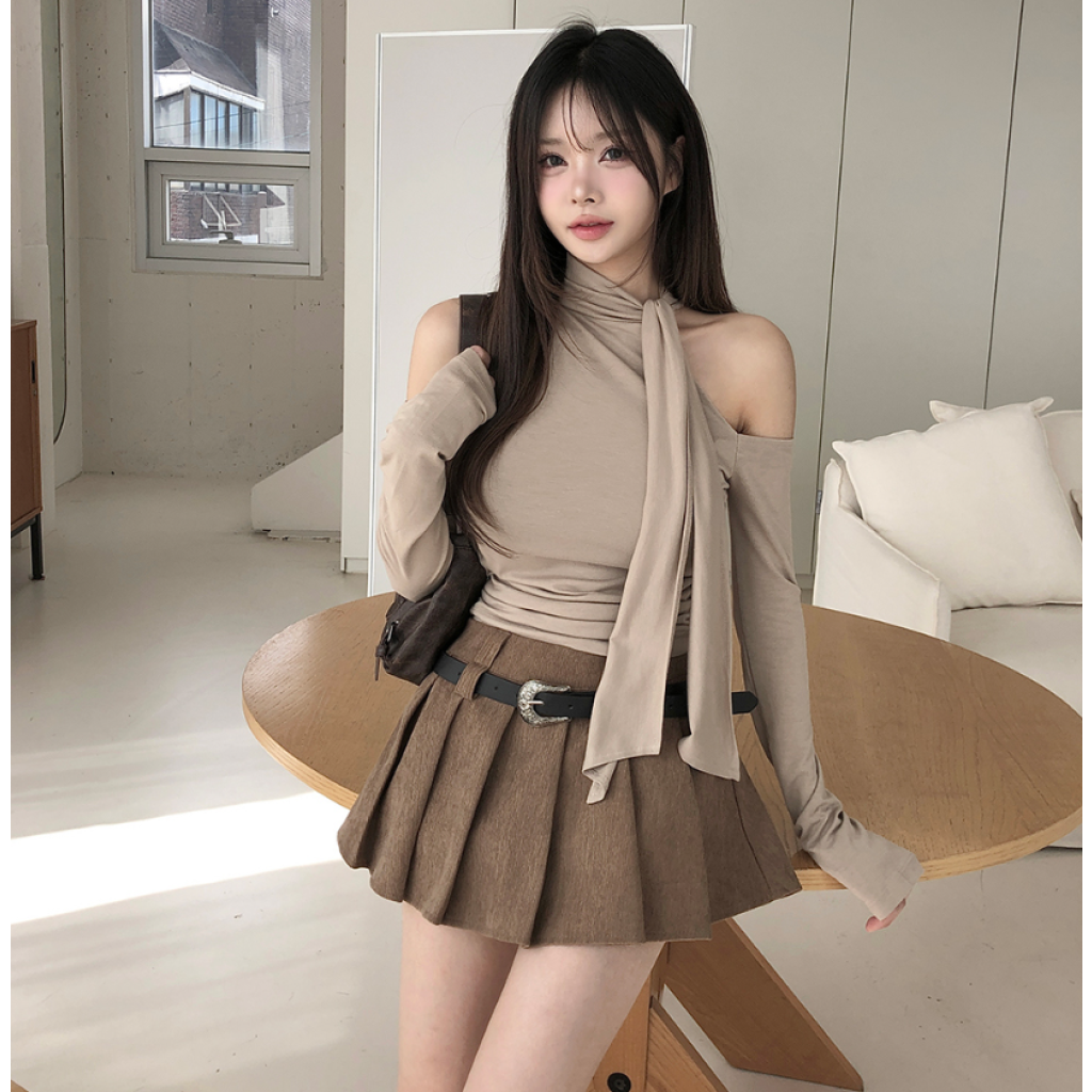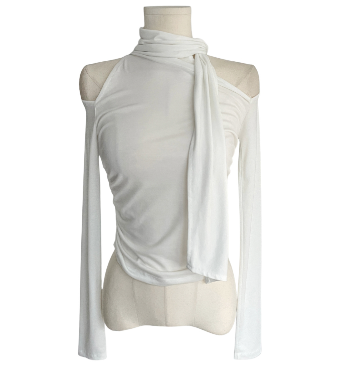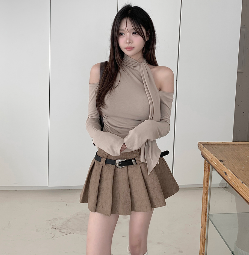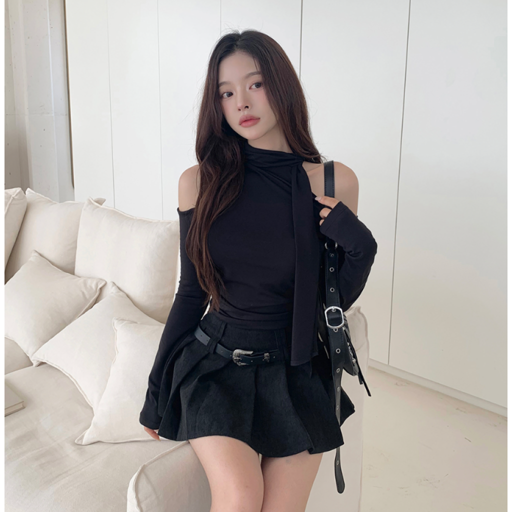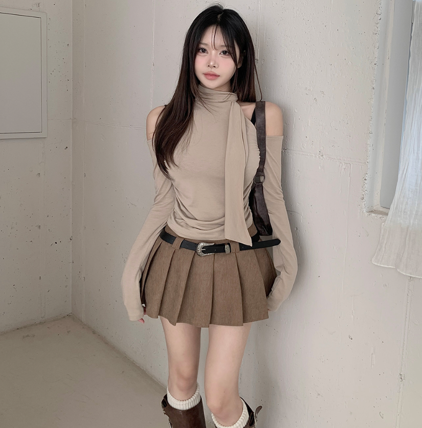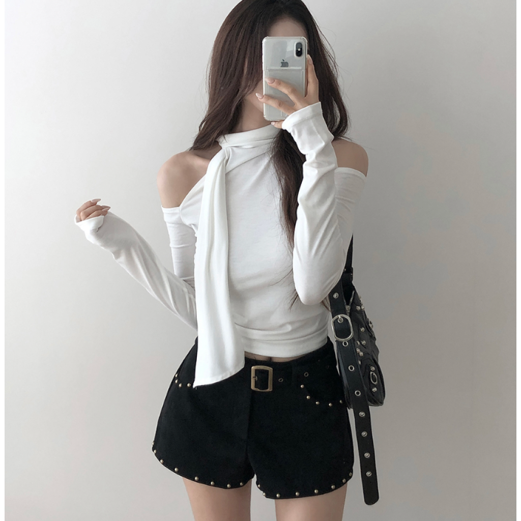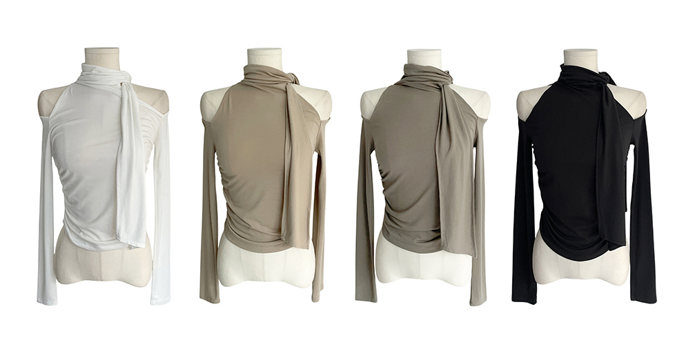 露肩圍巾長袖T恤【4色入】