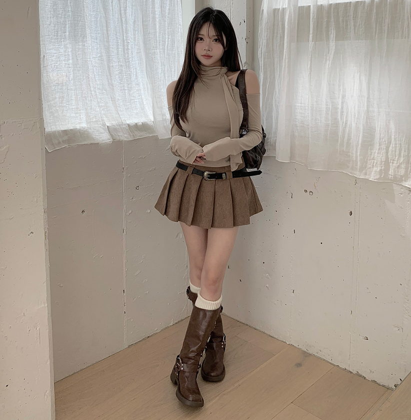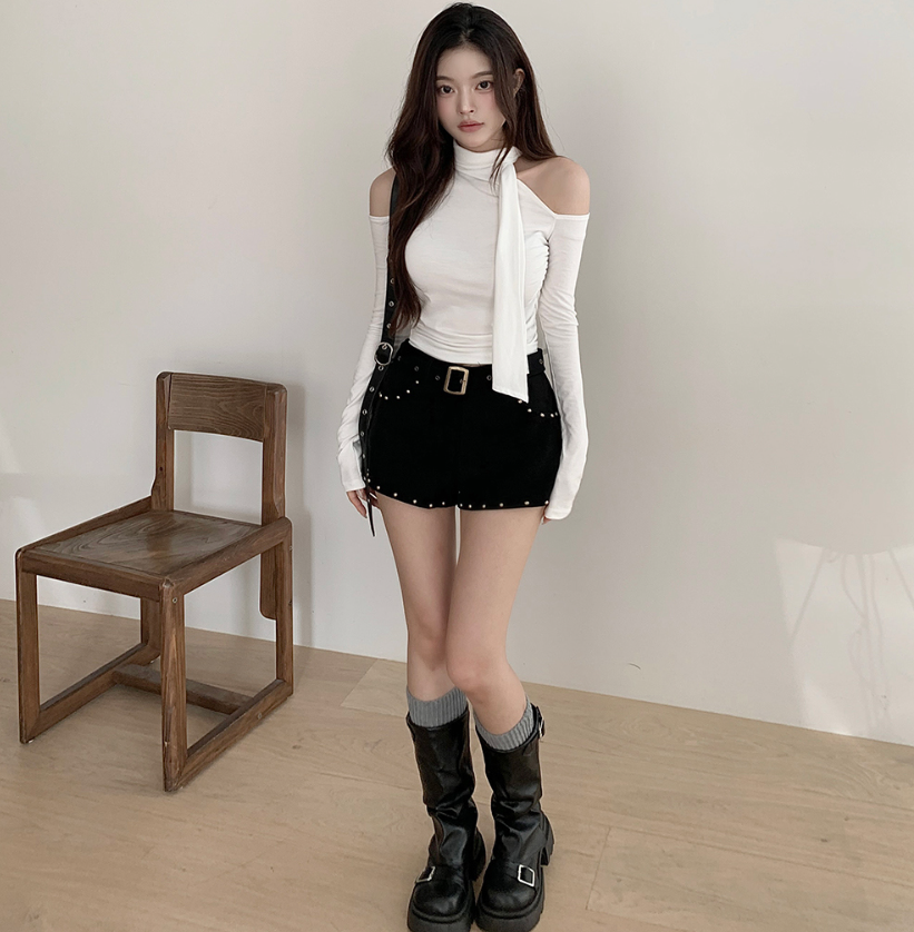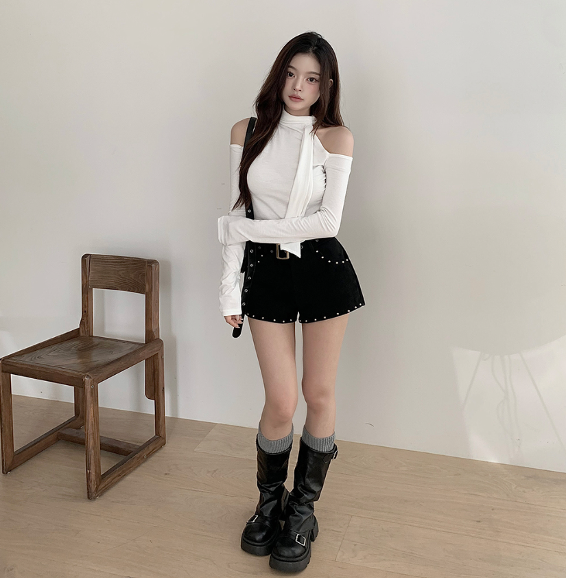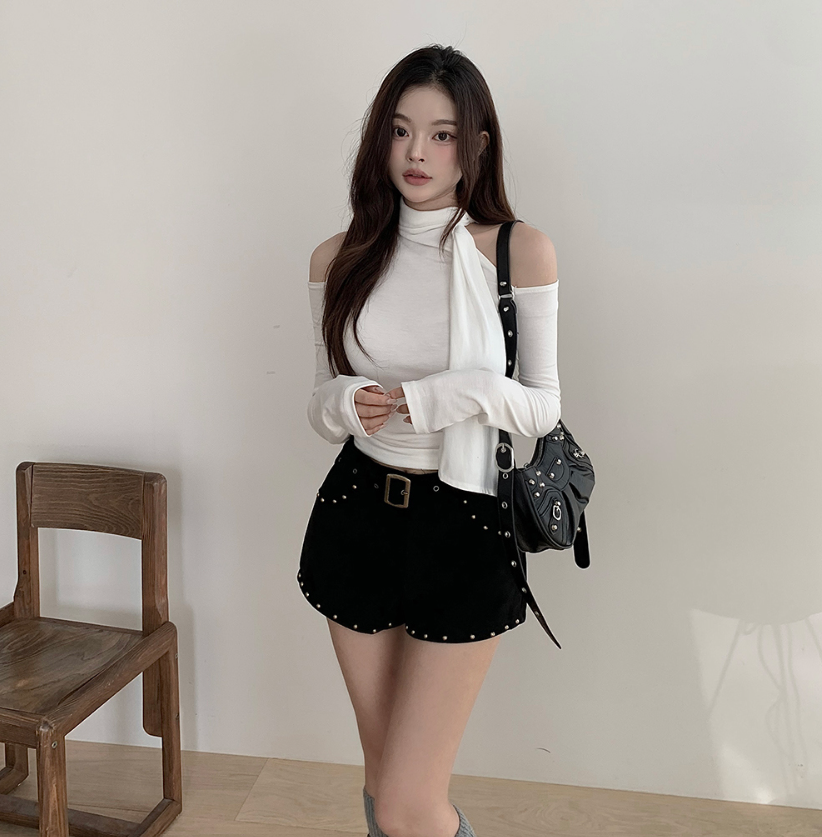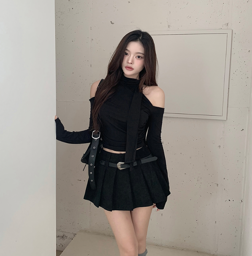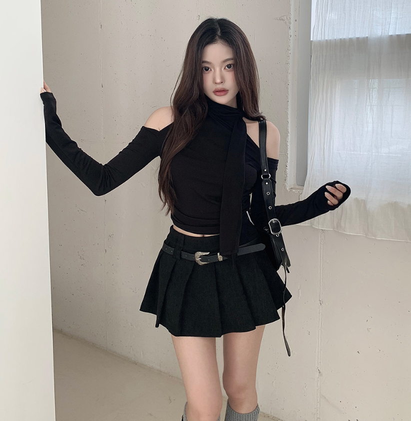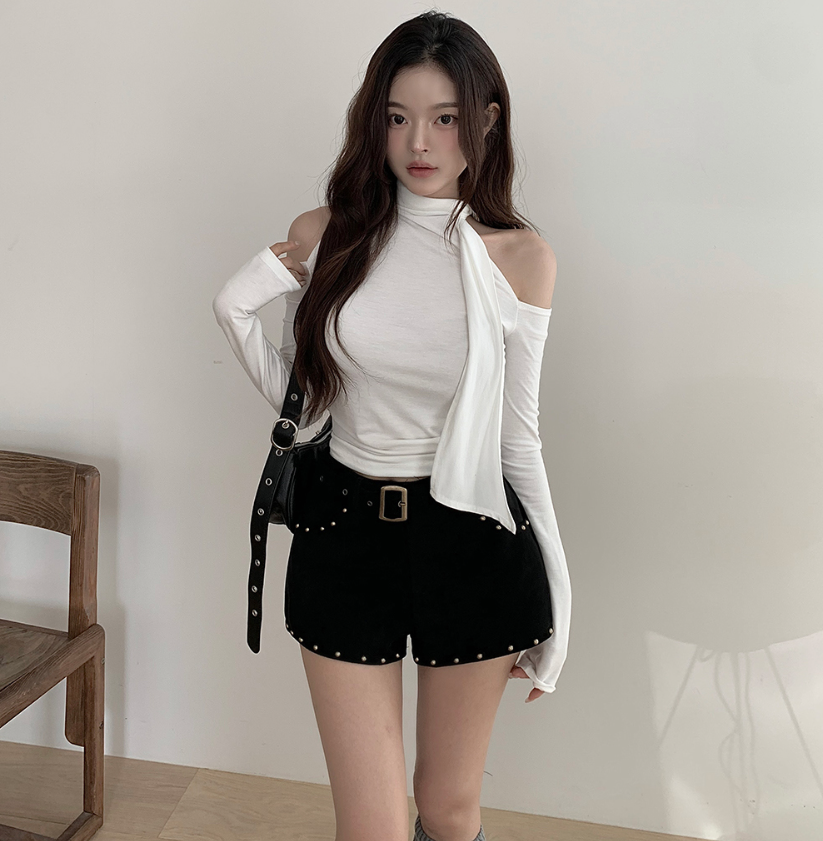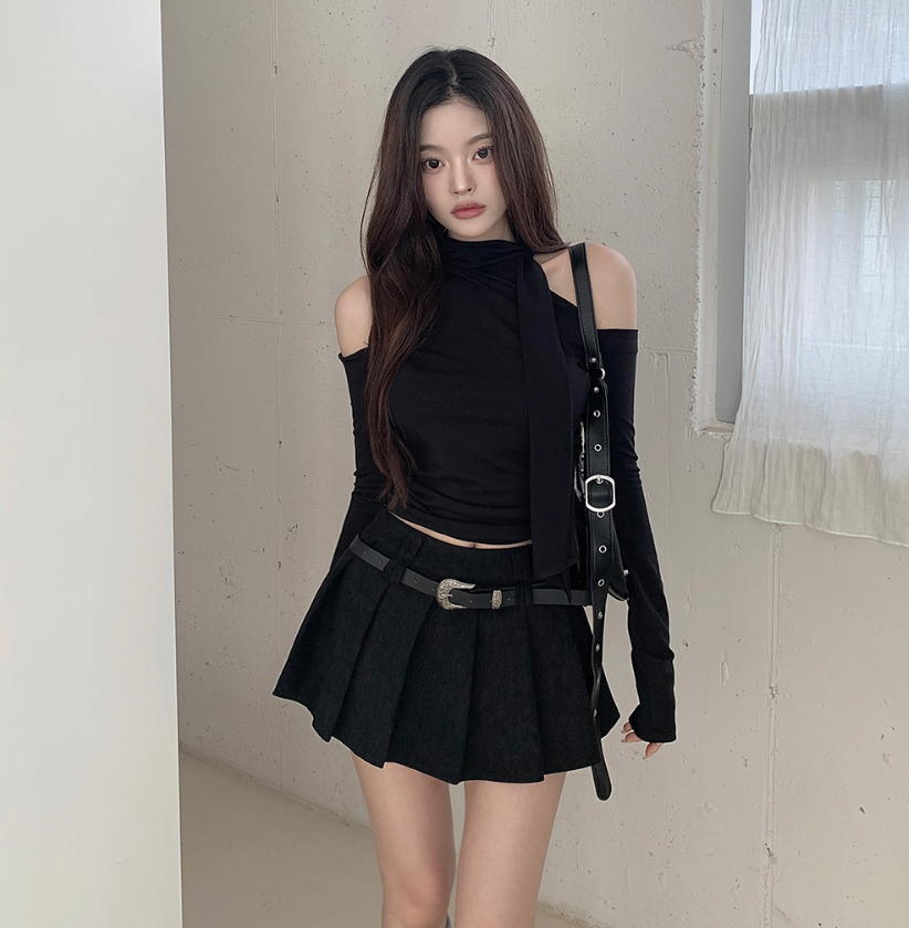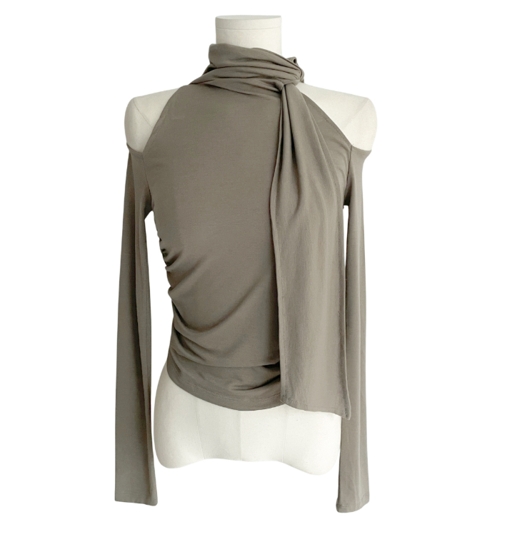 露肩圍巾長袖T恤【4色入】