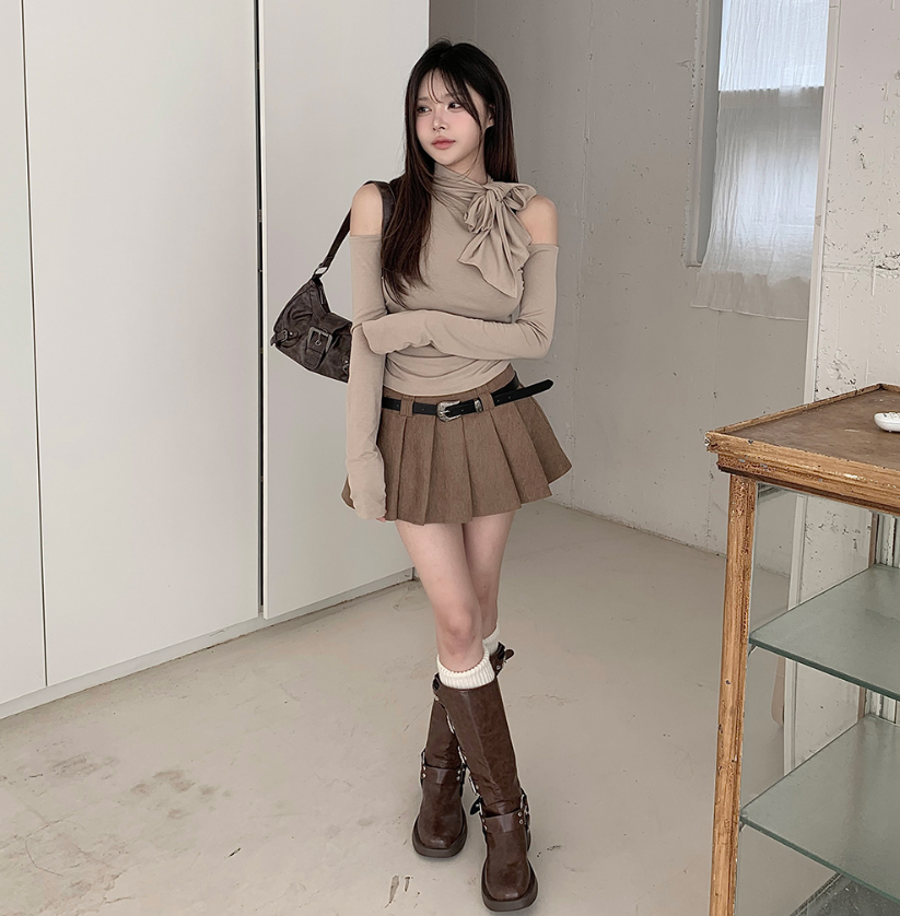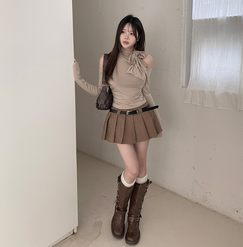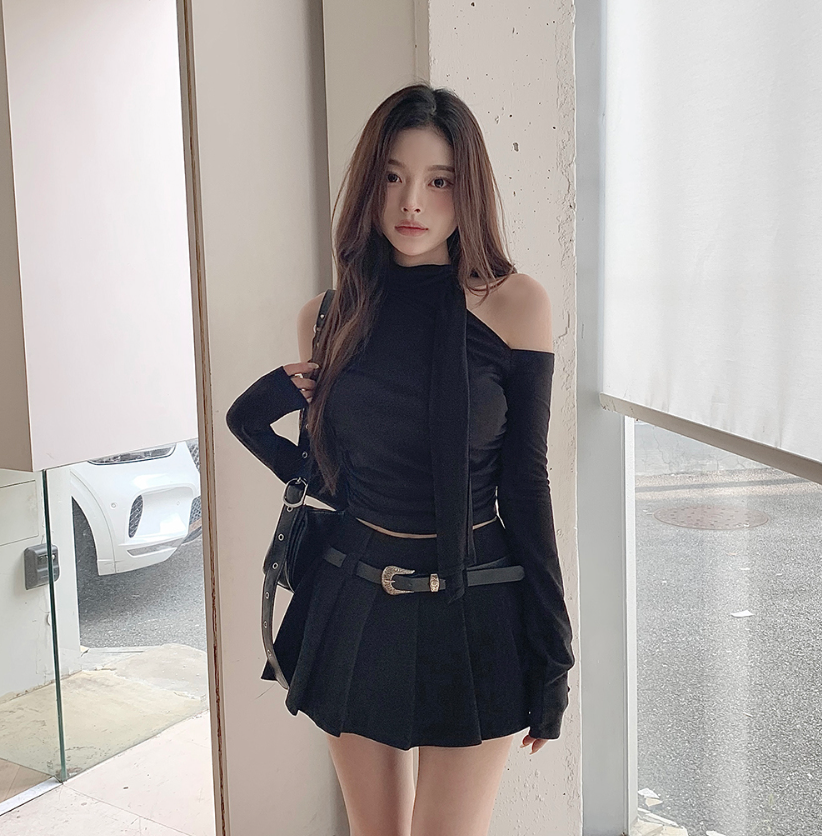 (•‾⌣‾•)低調小設計露肩長袖T恤❤️出街約會都好適合💕