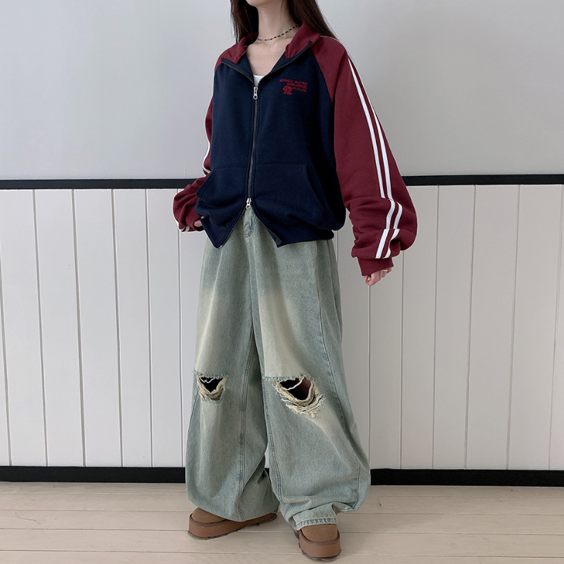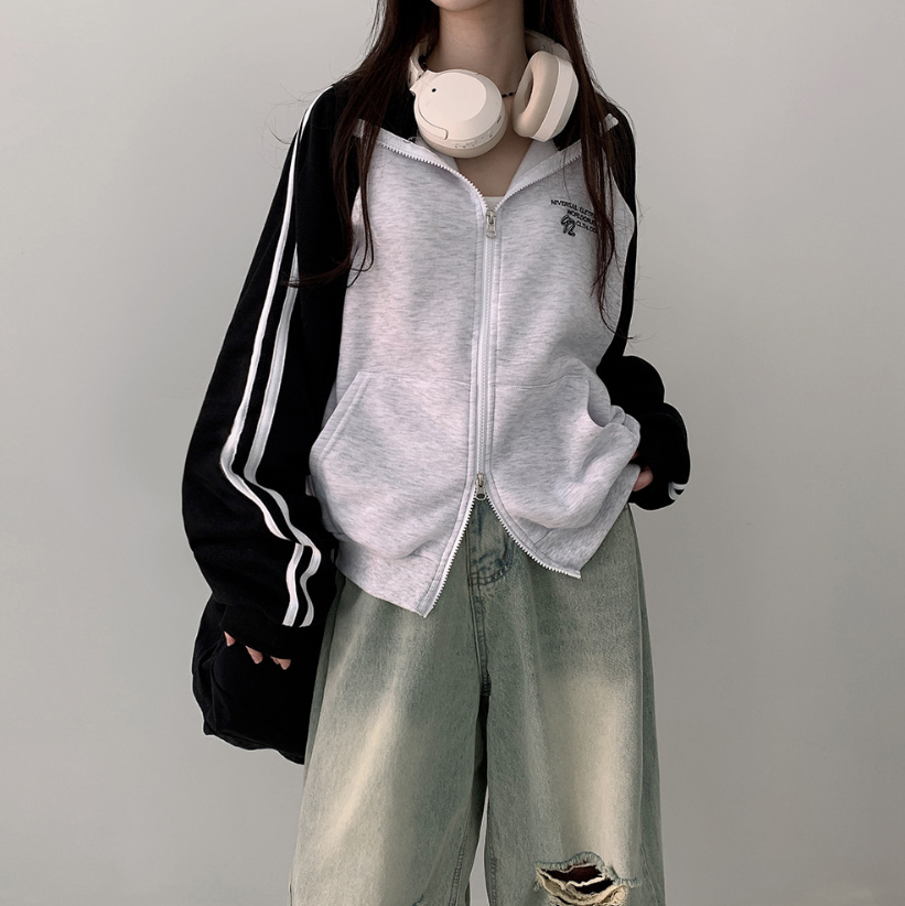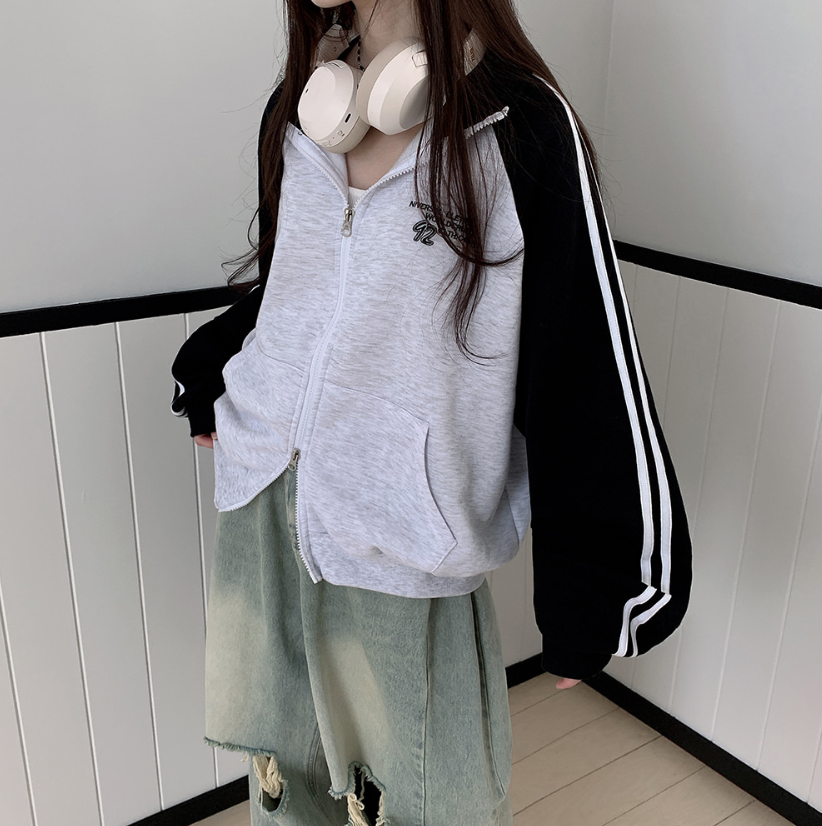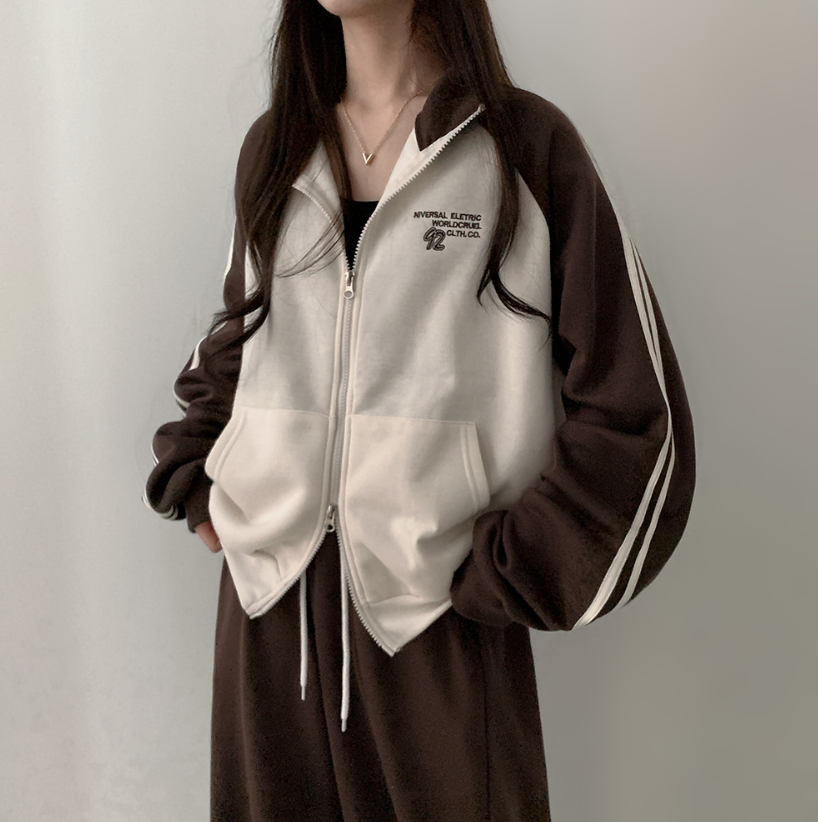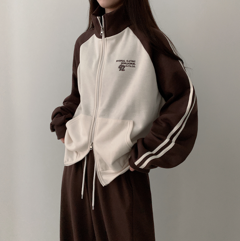 拼色雙拉鏈抓毛外套【4色入】【男女可穿】
