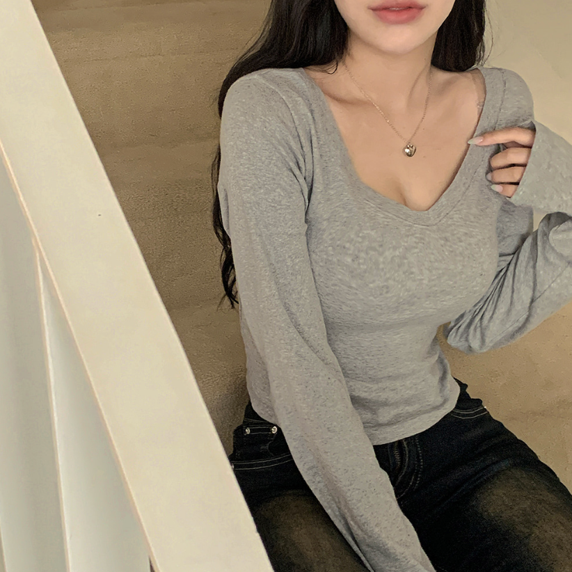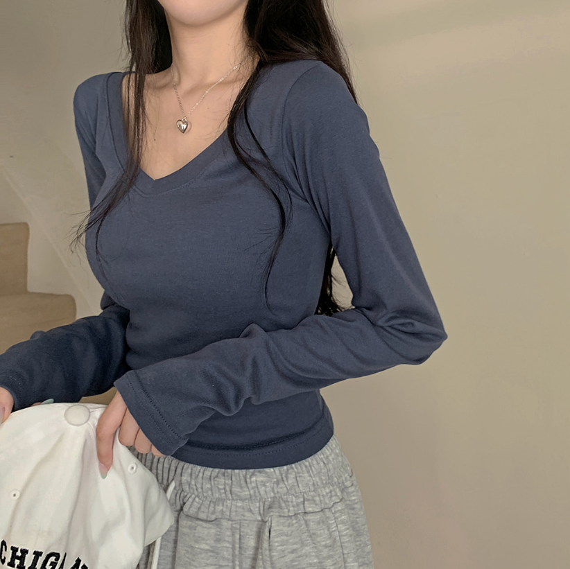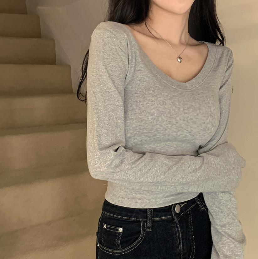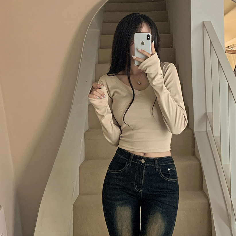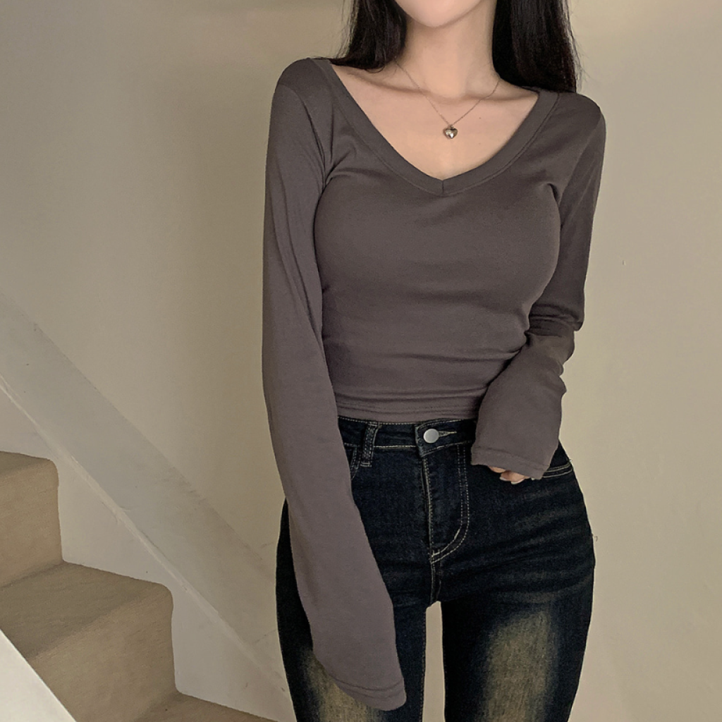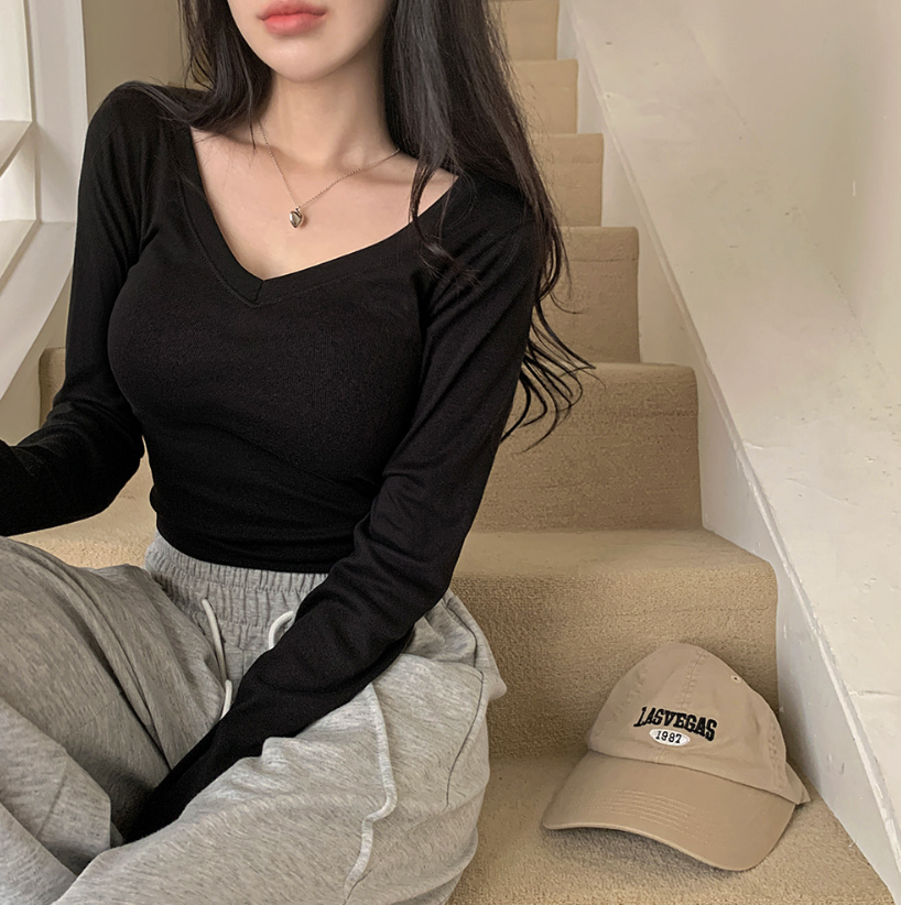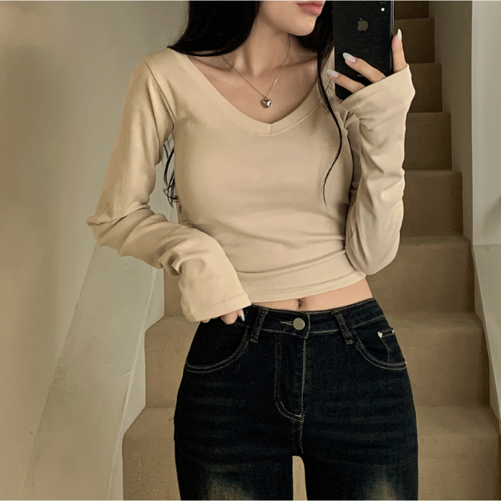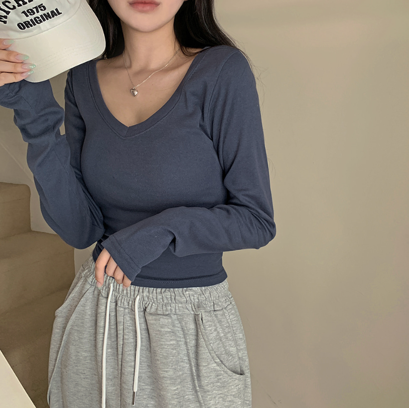 (•‾⌣‾•)V領短款長袖衫💕簡單內搭點襯都好睇❤️