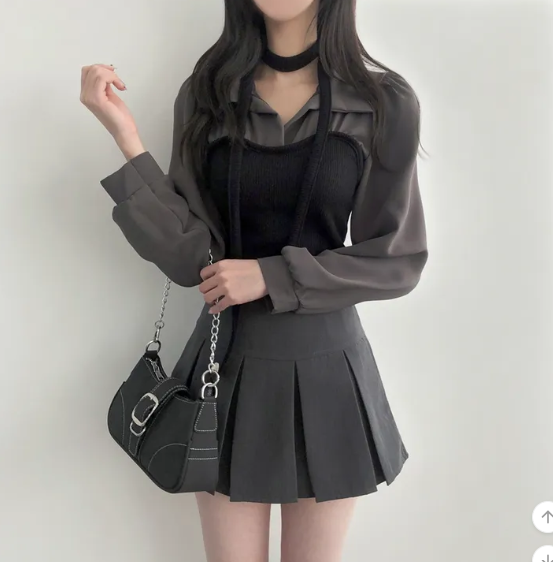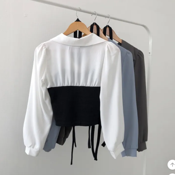 (•‾⌣‾•)拼接雪紡恤衫長袖衫💕好適合秋涼既天氣❤️