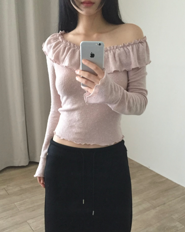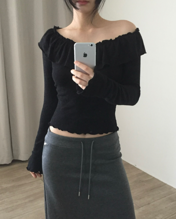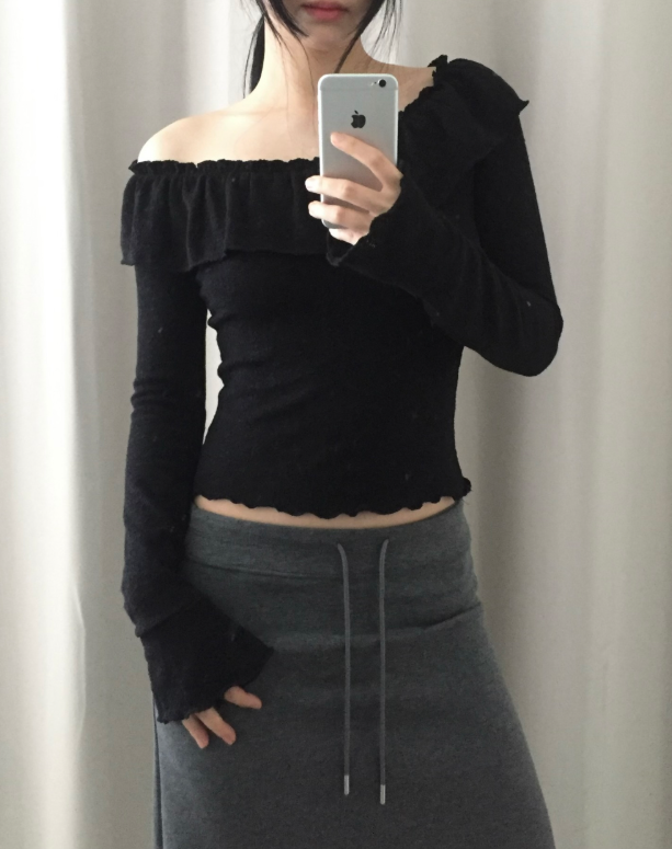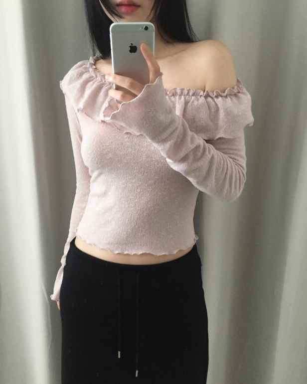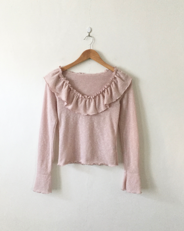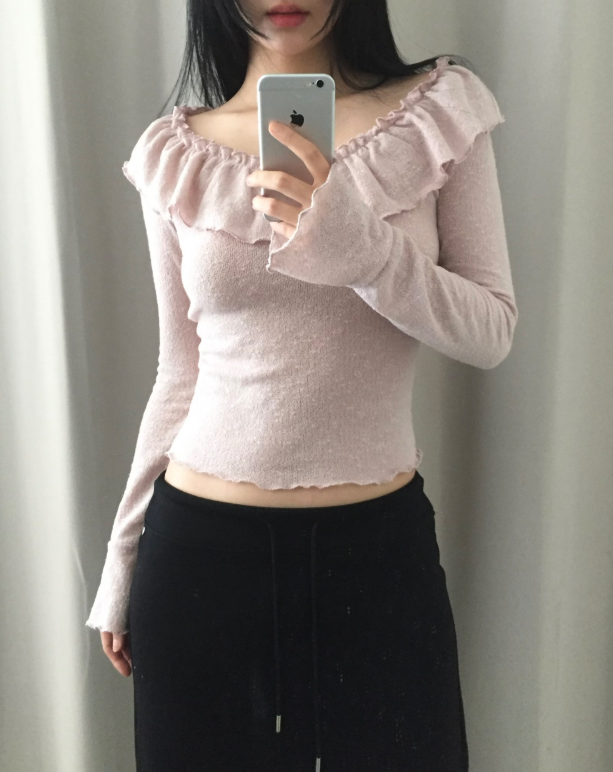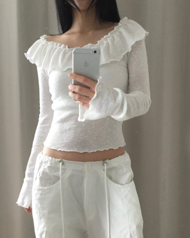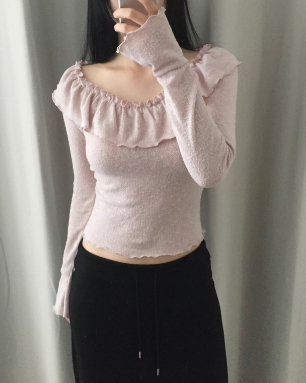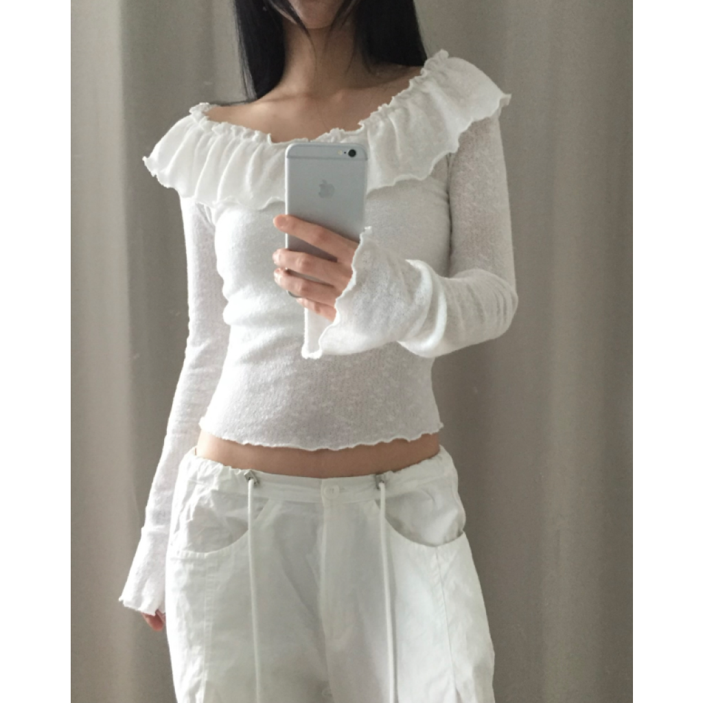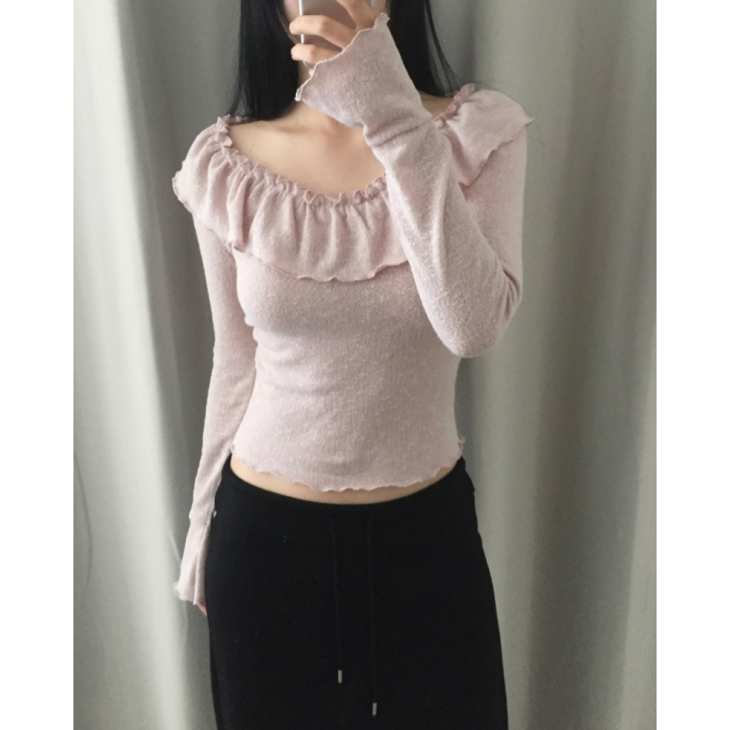荷葉邊領針織薄長袖【3色入】