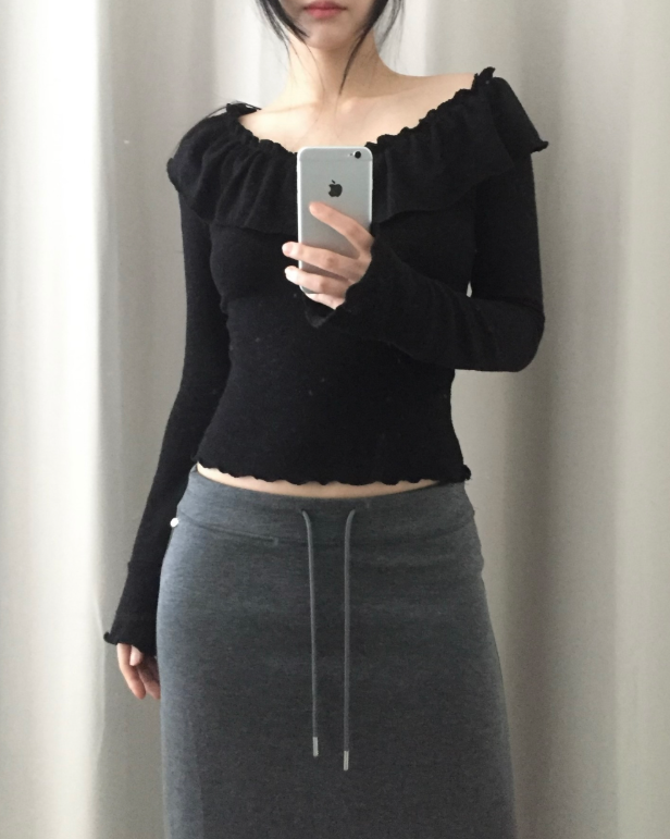 (•‾⌣‾•)荷葉邊領位好特別💕可以做一字肩可露肩或者拉上邊U領都可以❤️