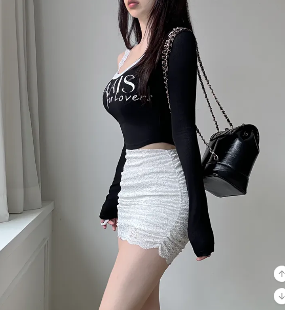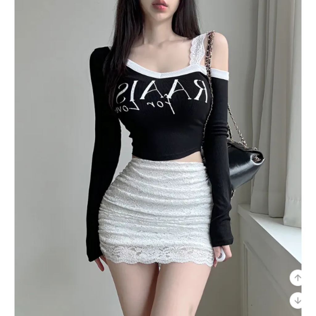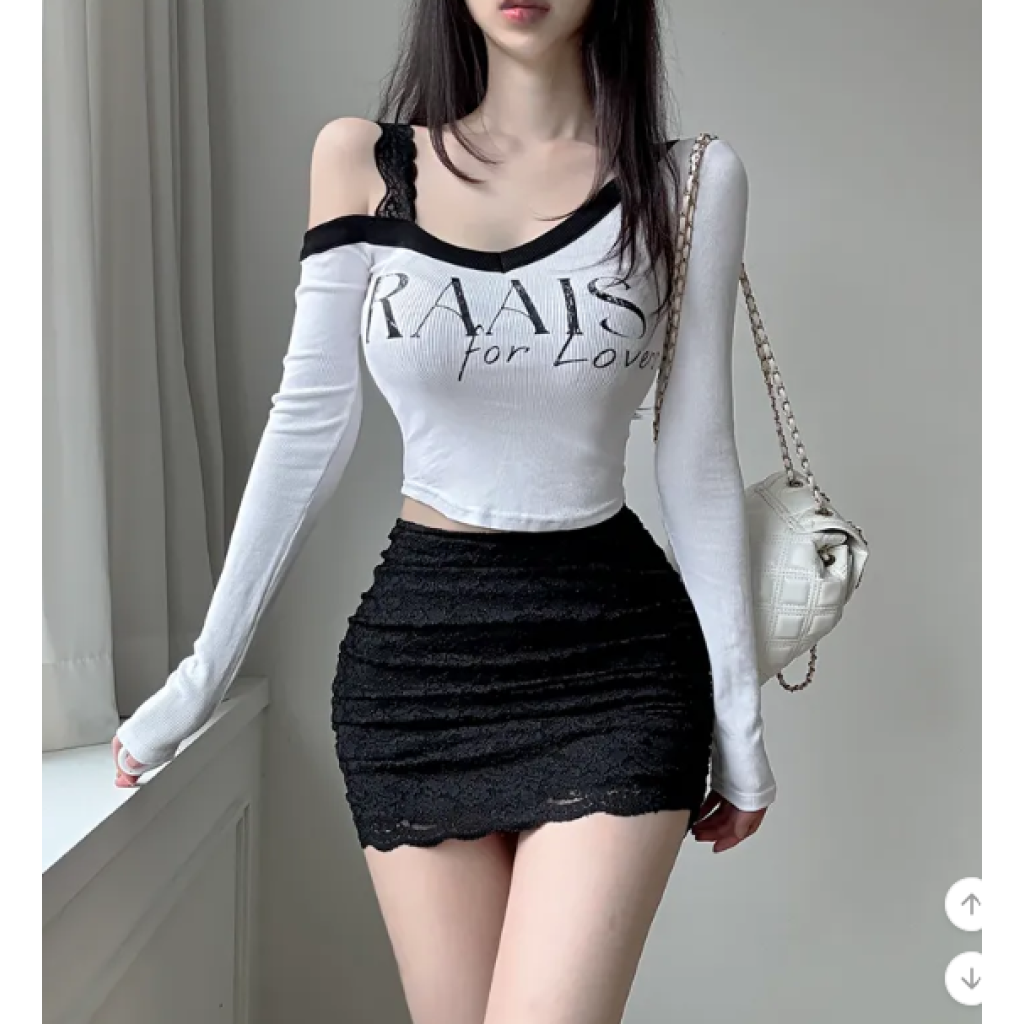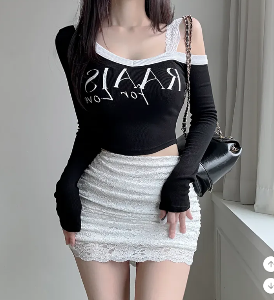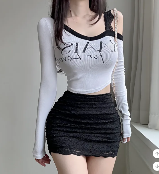 (•‾⌣‾•)單邊蕾絲吊帶有點小性感💕修身設計更顯身材❤️