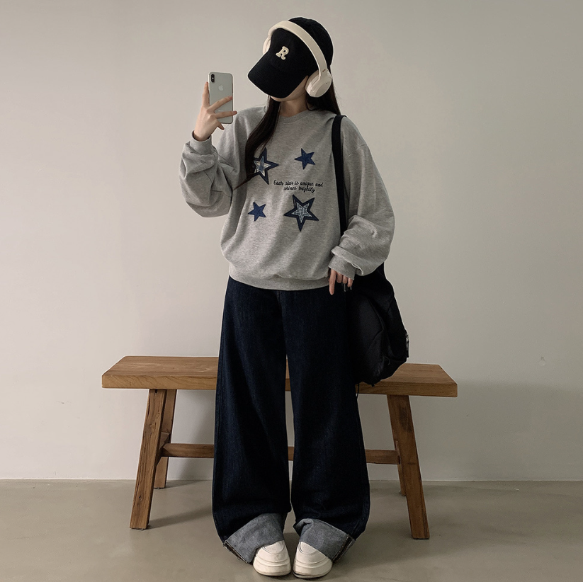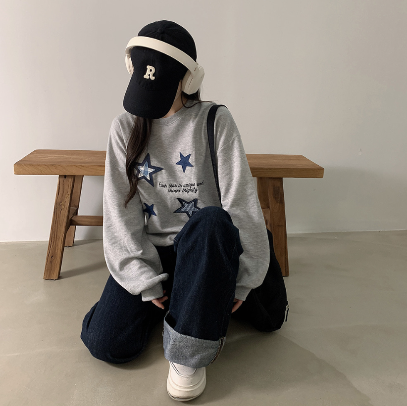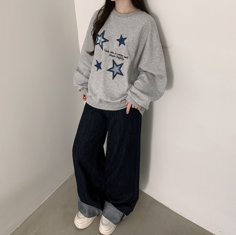 寬鬆星星圓領衛衣【4色入】【男女可穿】