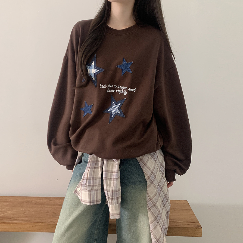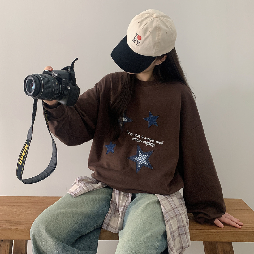 (•‾⌣‾•)圓領星星衛衣❤️日常出街好容易配搭💕