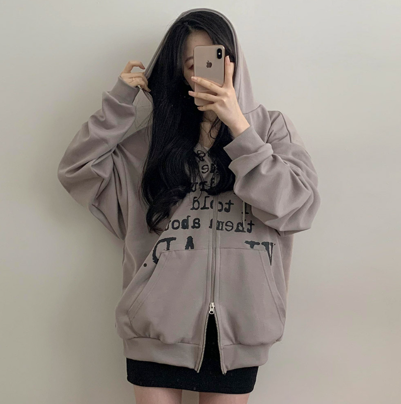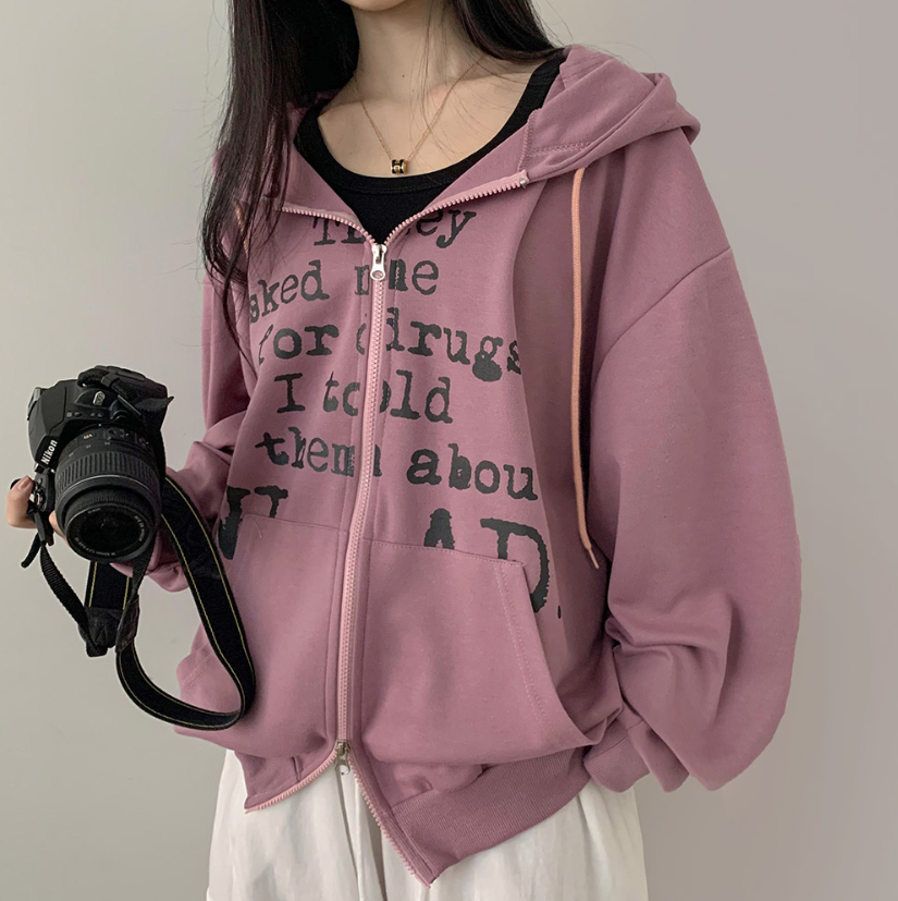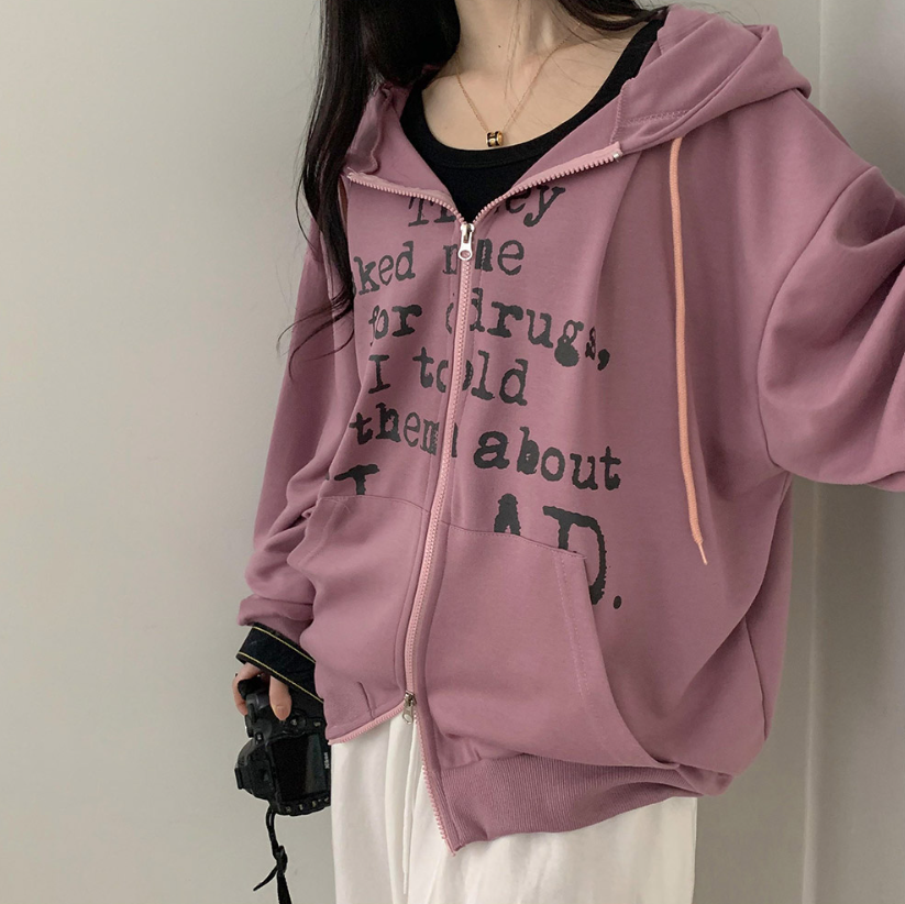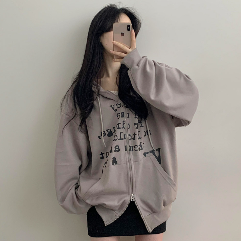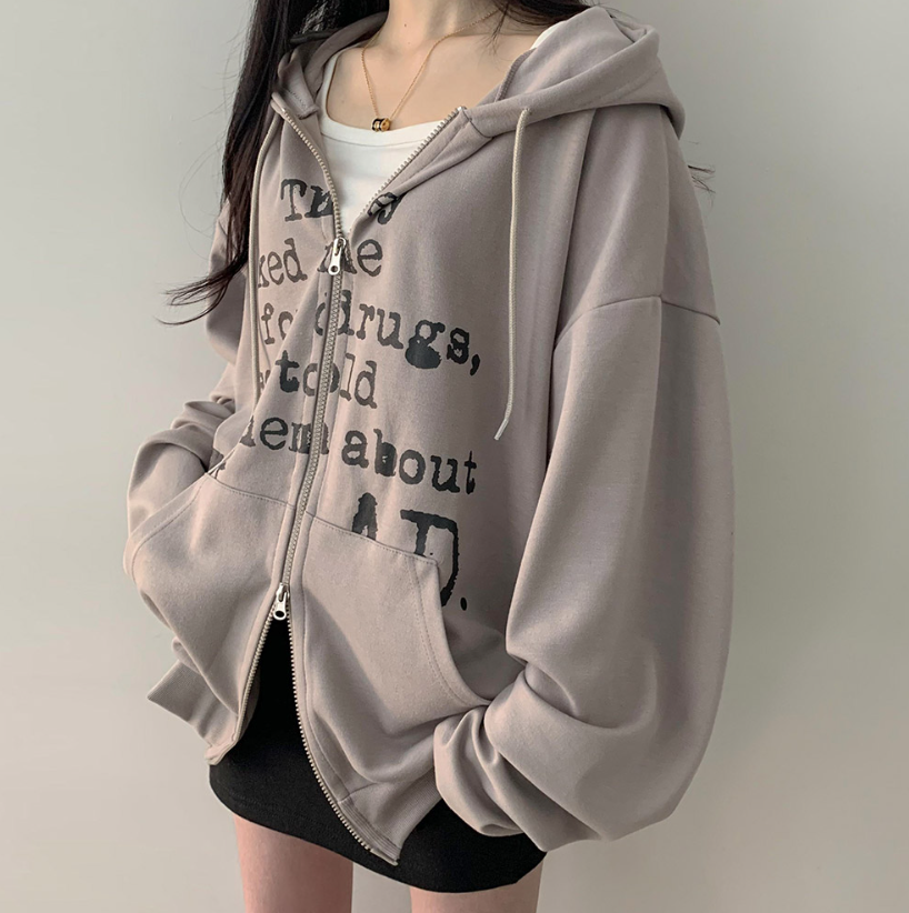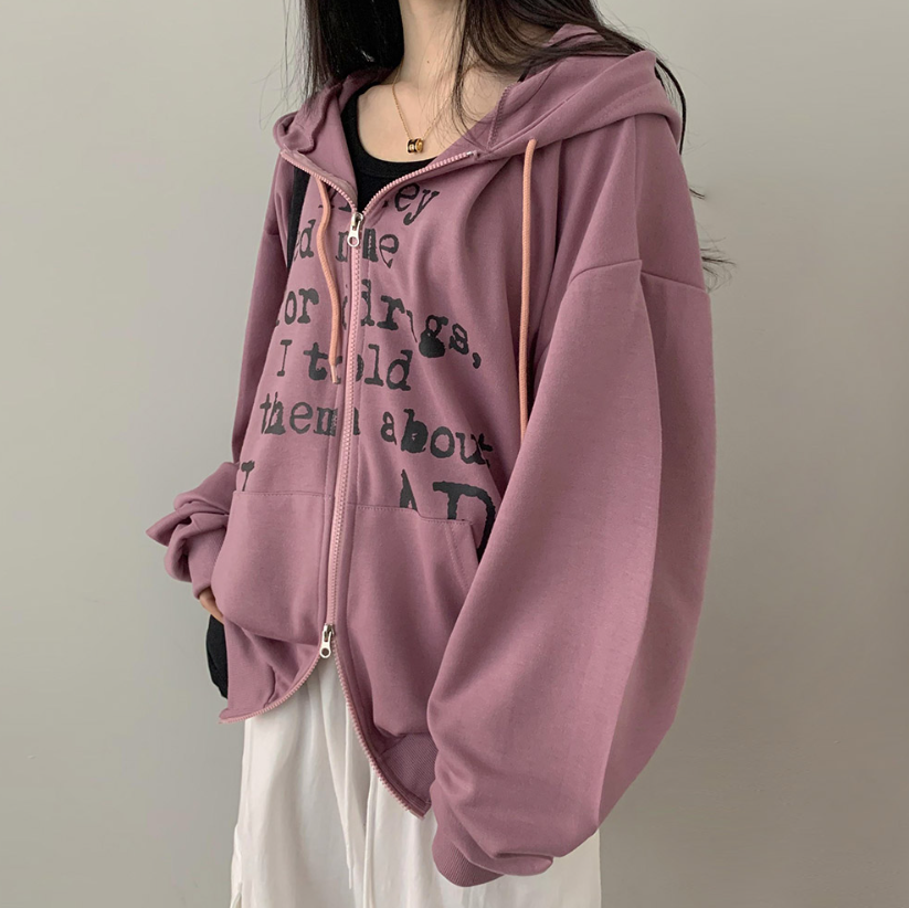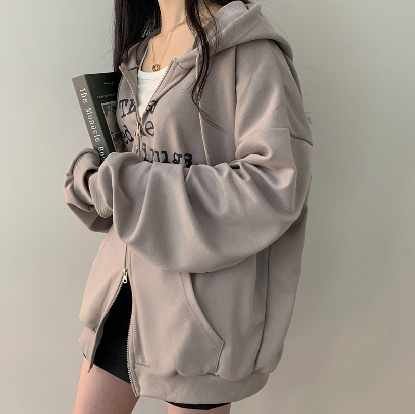 寬鬆字母連帽雙拉鍊衫【4色入】【男女可穿】
