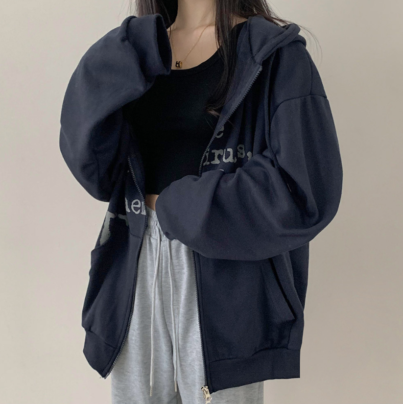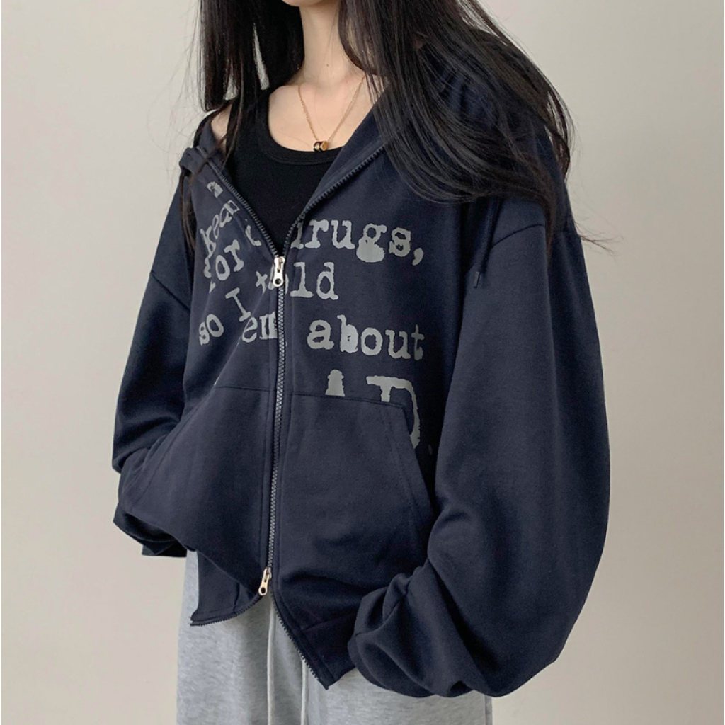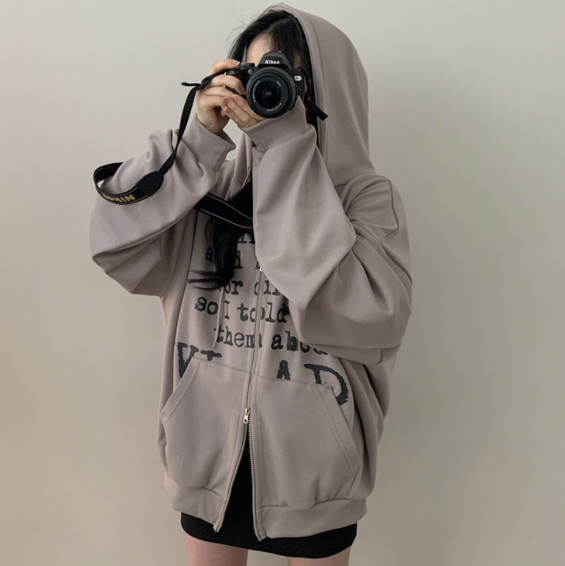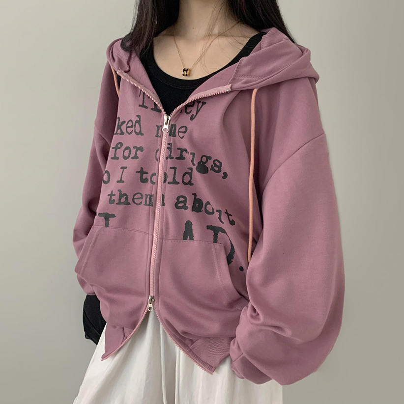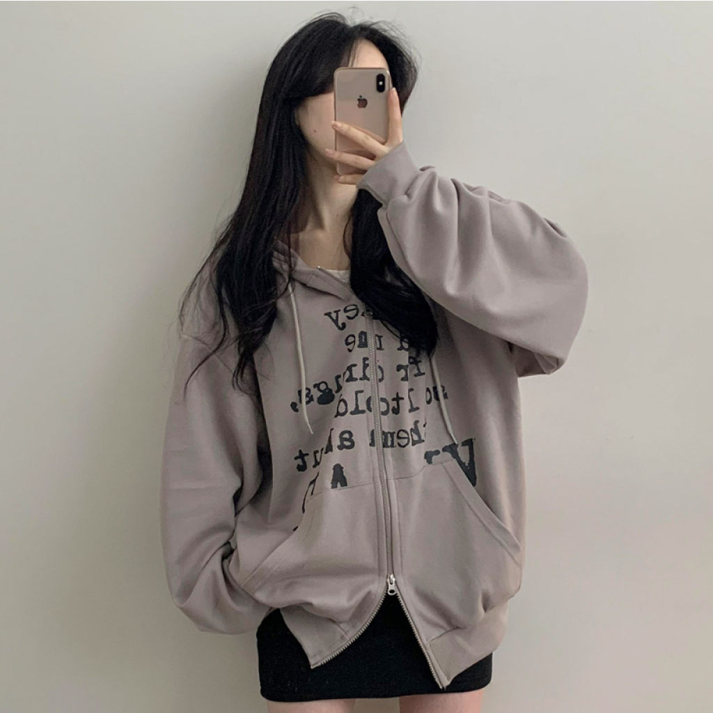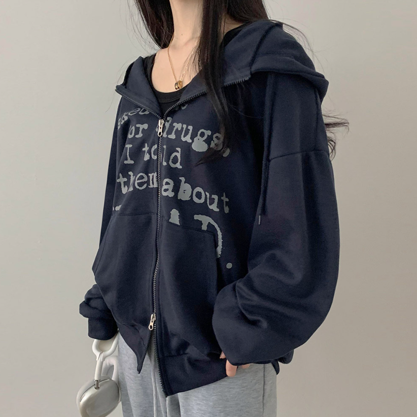 寬鬆字母連帽雙拉鍊衫【4色入】【男女可穿】