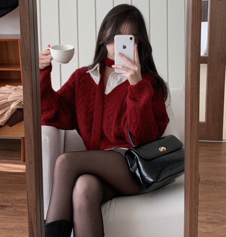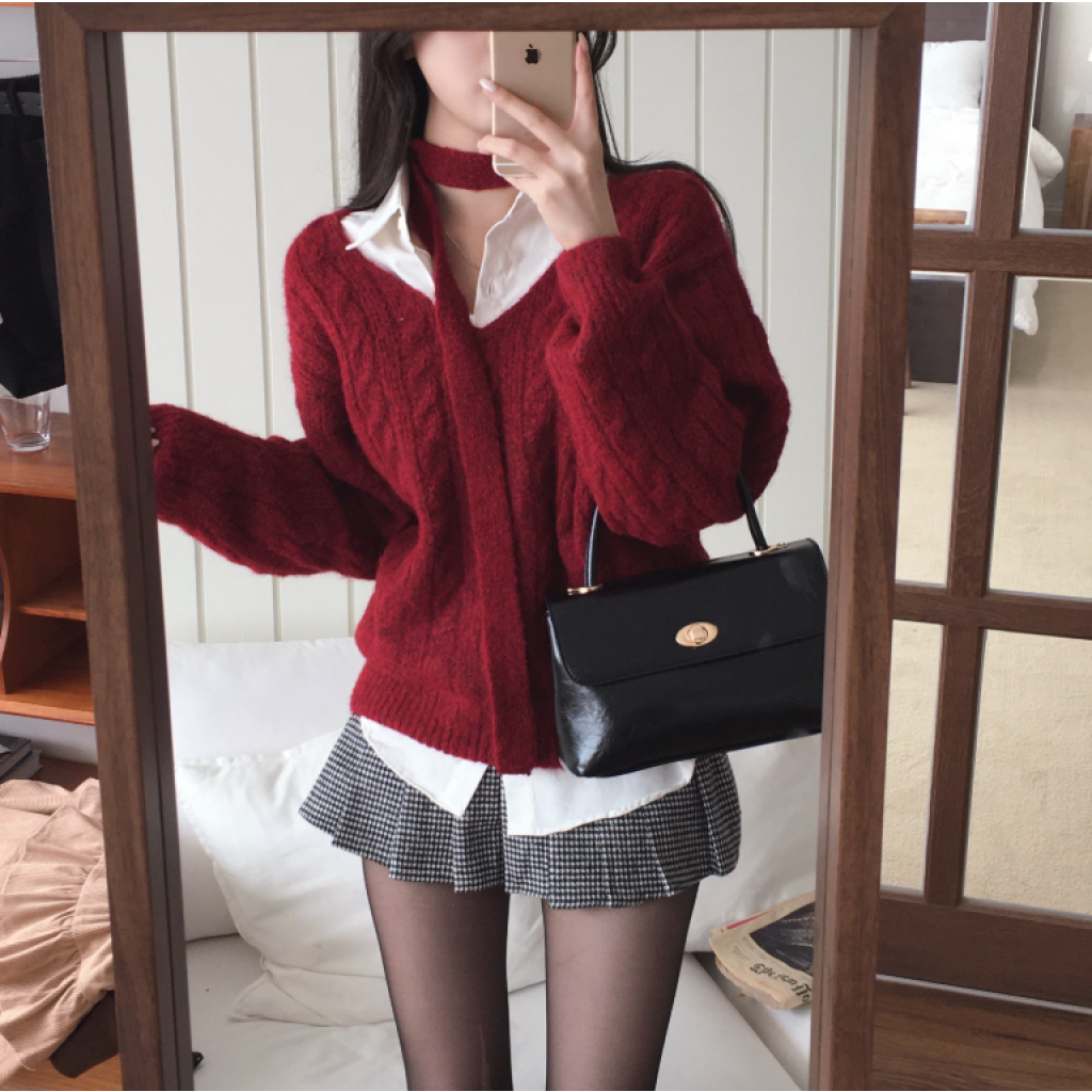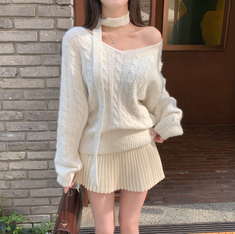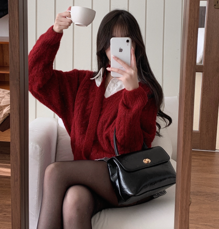 (•‾⌣‾•)V領設計可以凸顯鎖骨💕麻花編織唔會太單調❤️