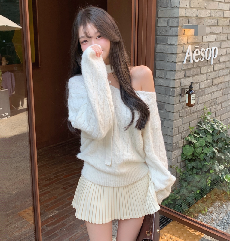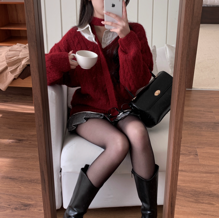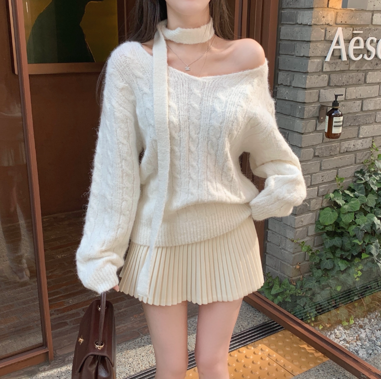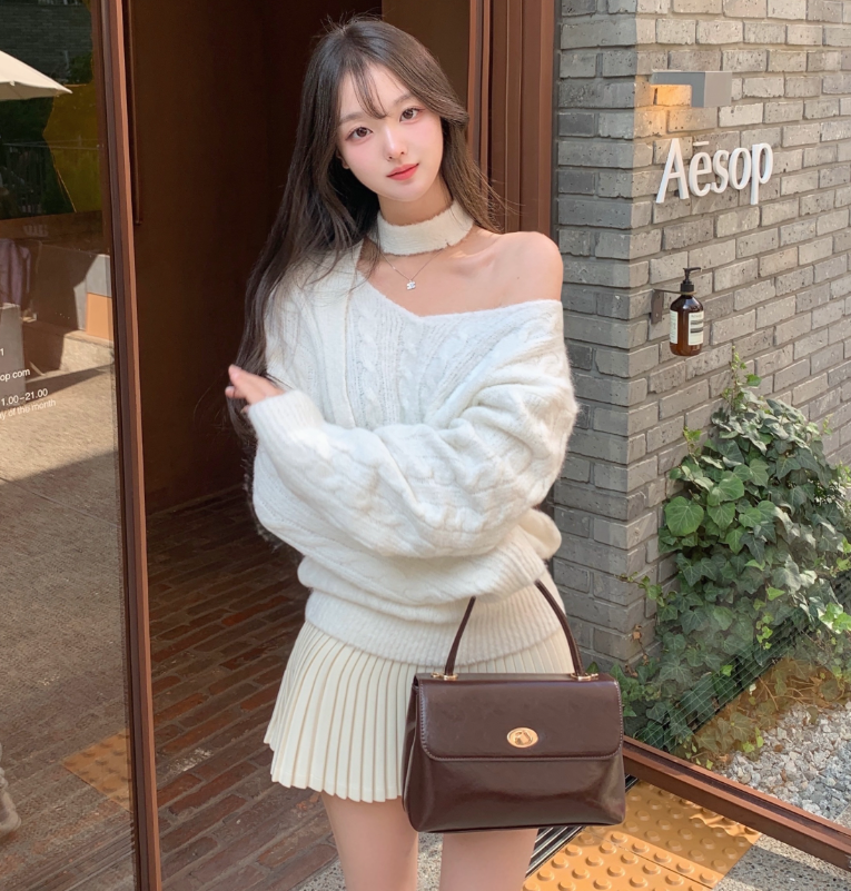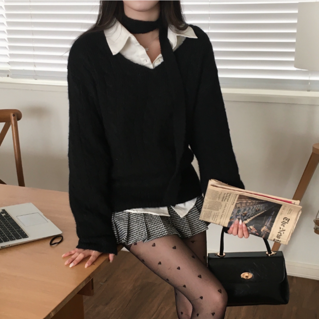 (•‾⌣‾•)V領設計可以凸顯鎖骨💕麻花編織唔會太單調❤️