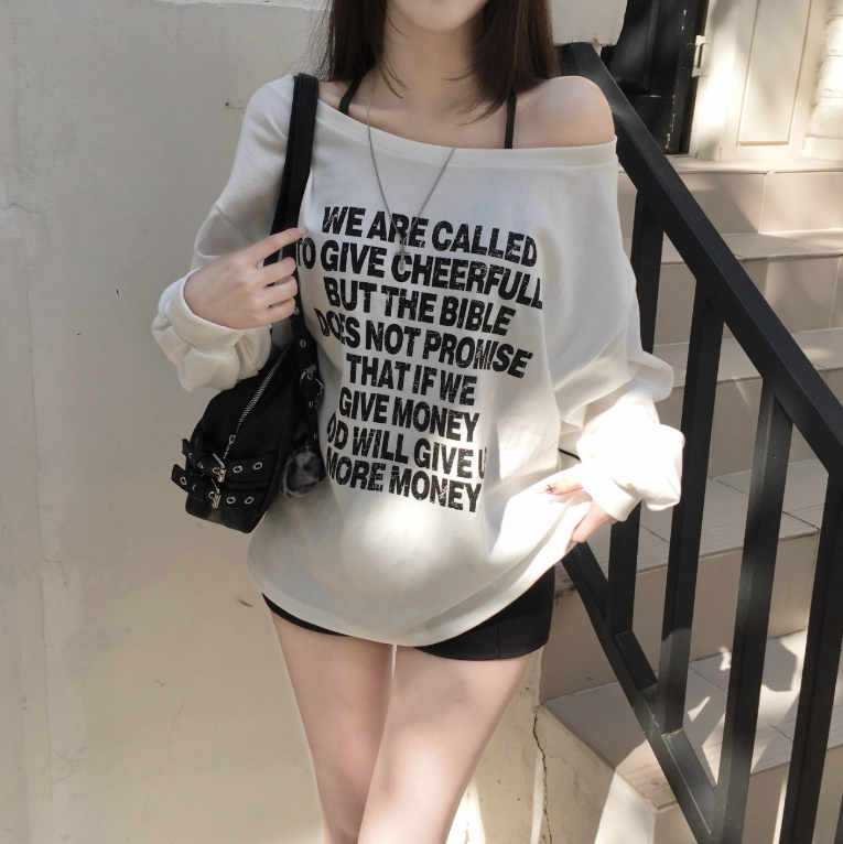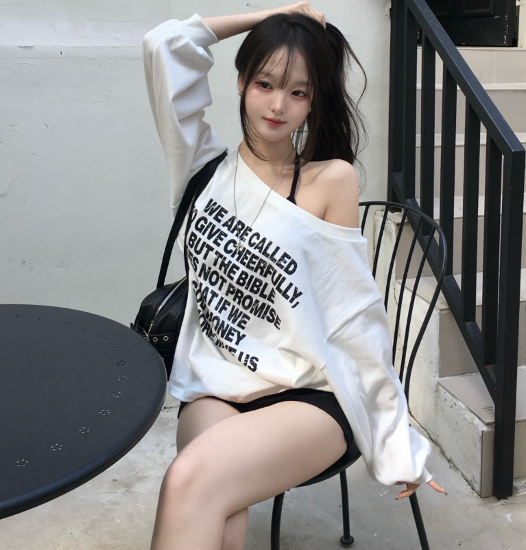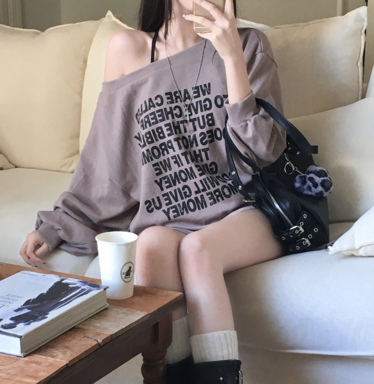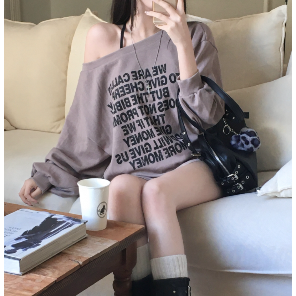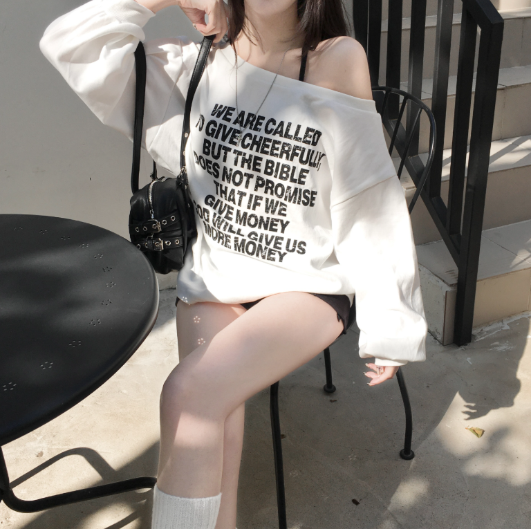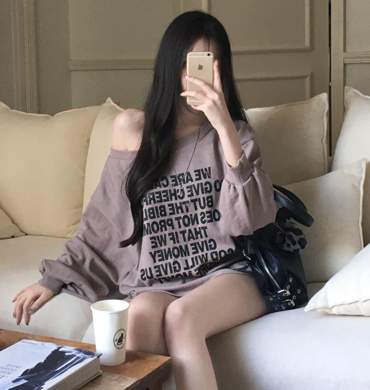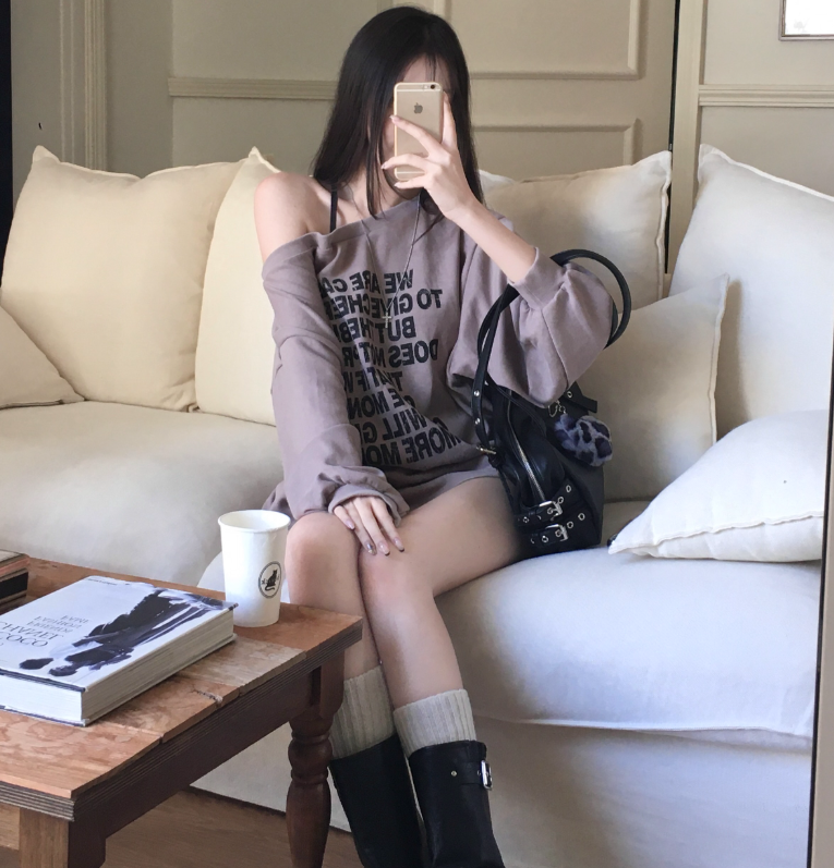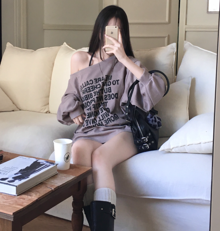 (•‾⌣‾•)寬鬆露肩衛衣可以當One piece好方便💕