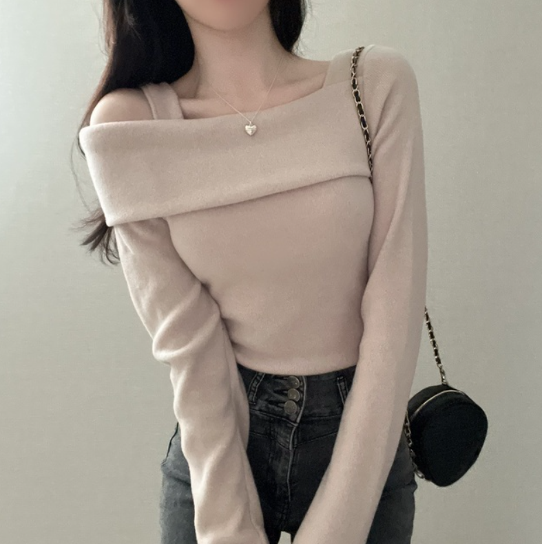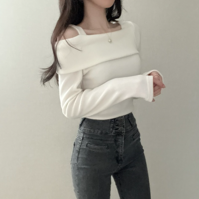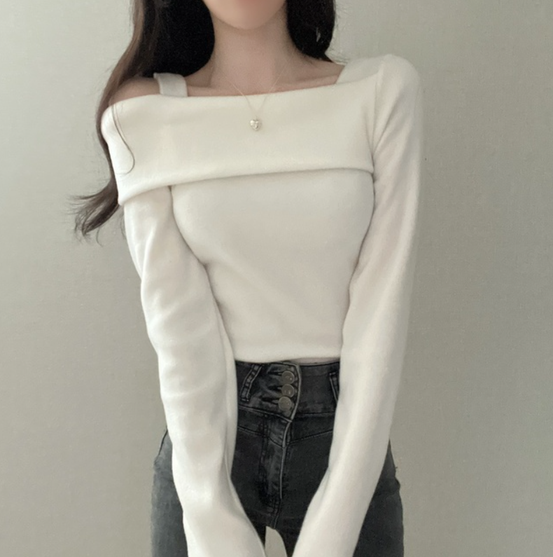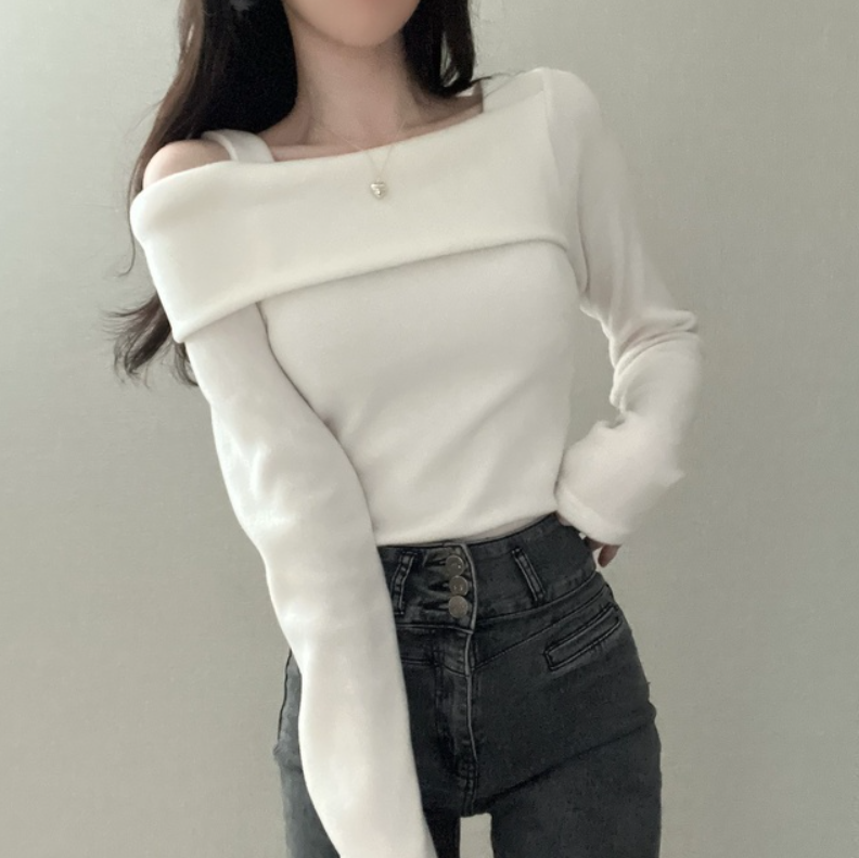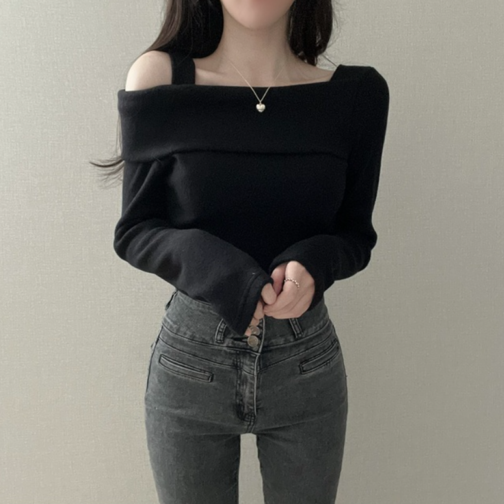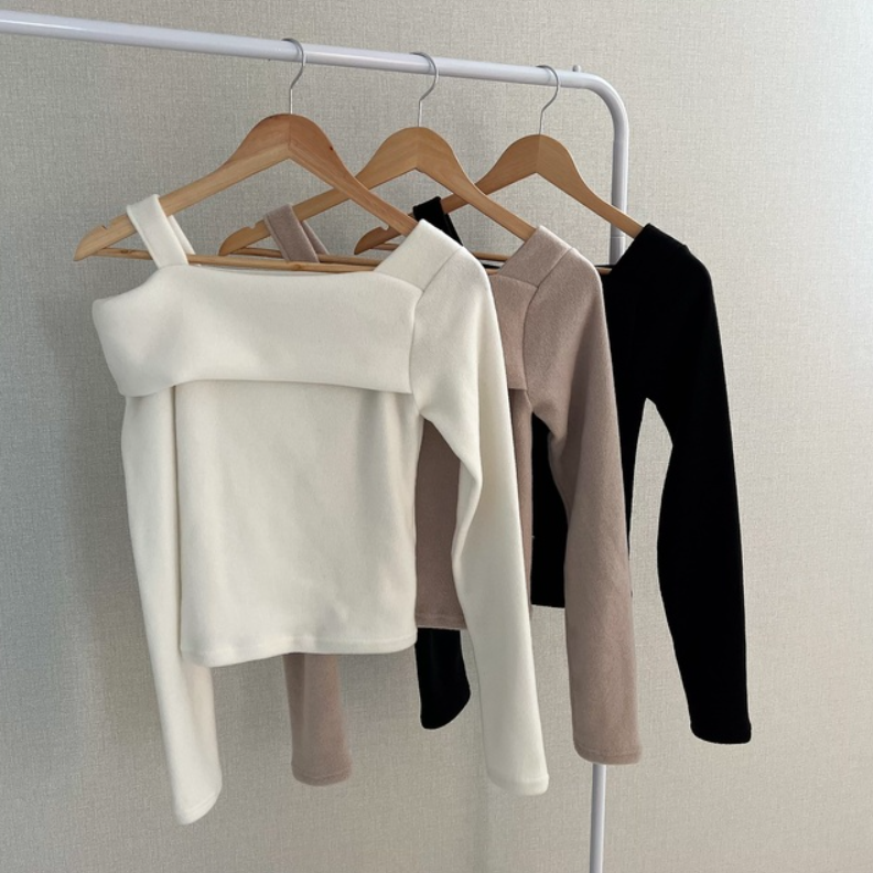 不規則露肩長袖T恤【3色入】