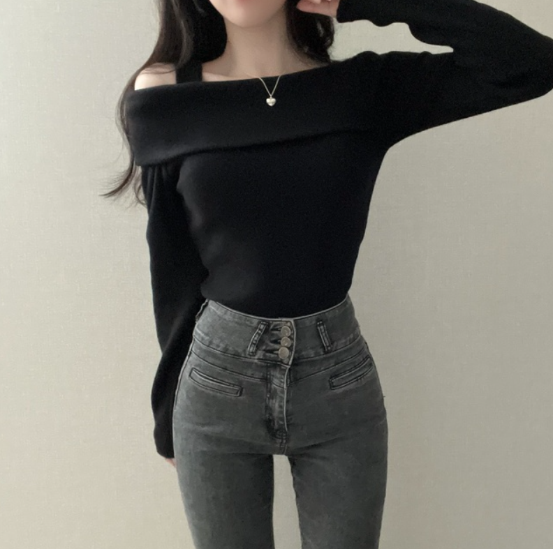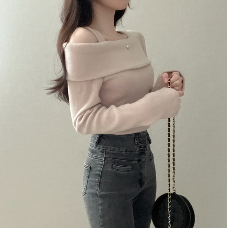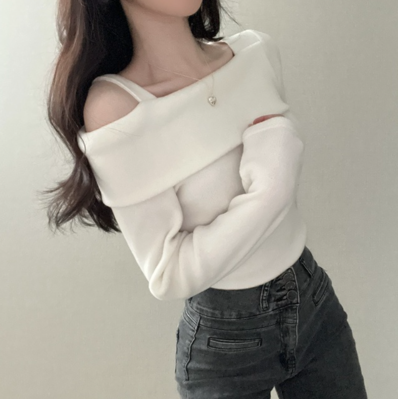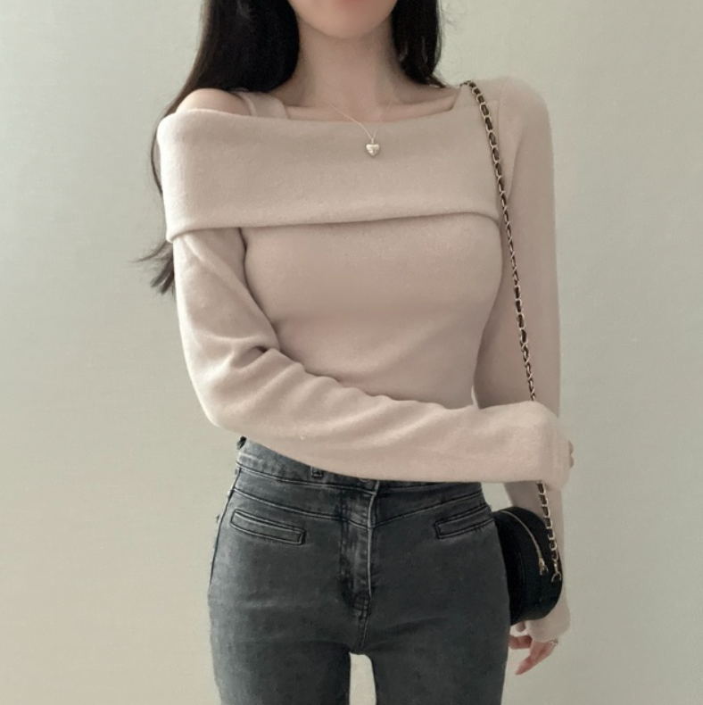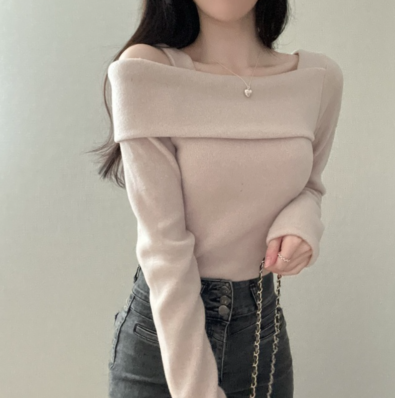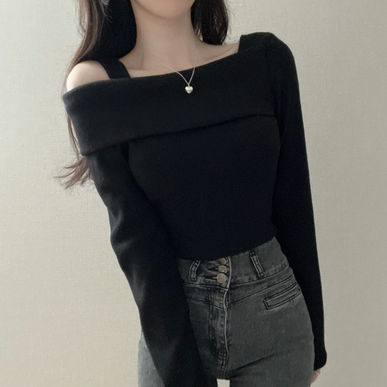 不規則露肩長袖T恤【3色入】