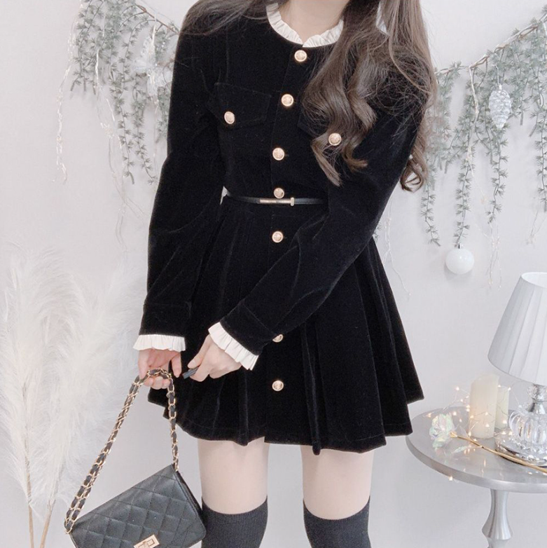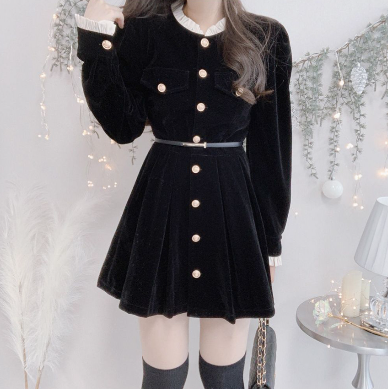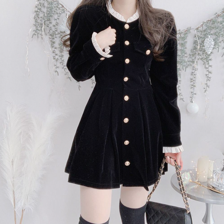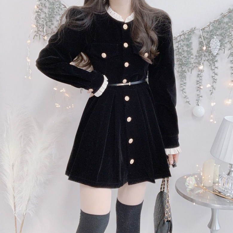 圓領金色扣連身裙 - 現貨