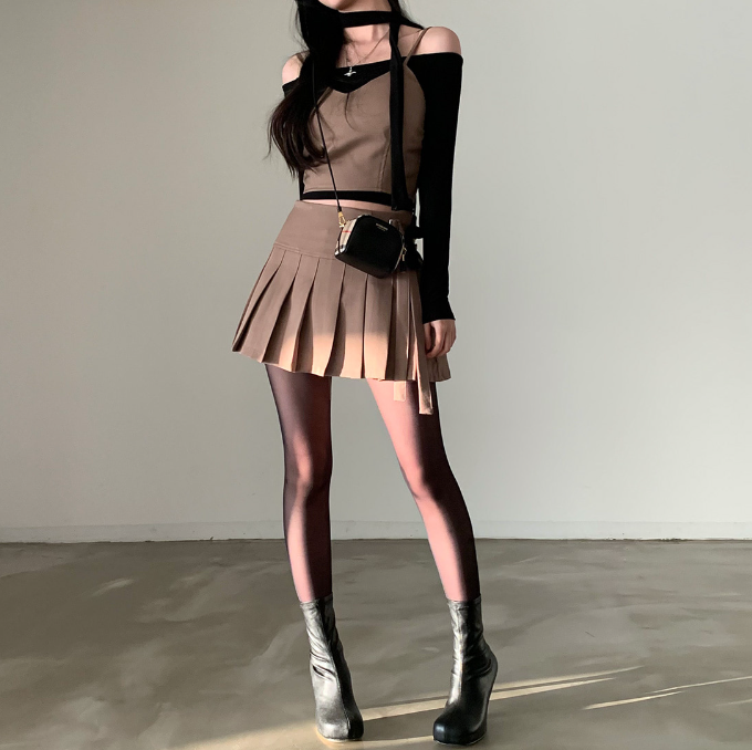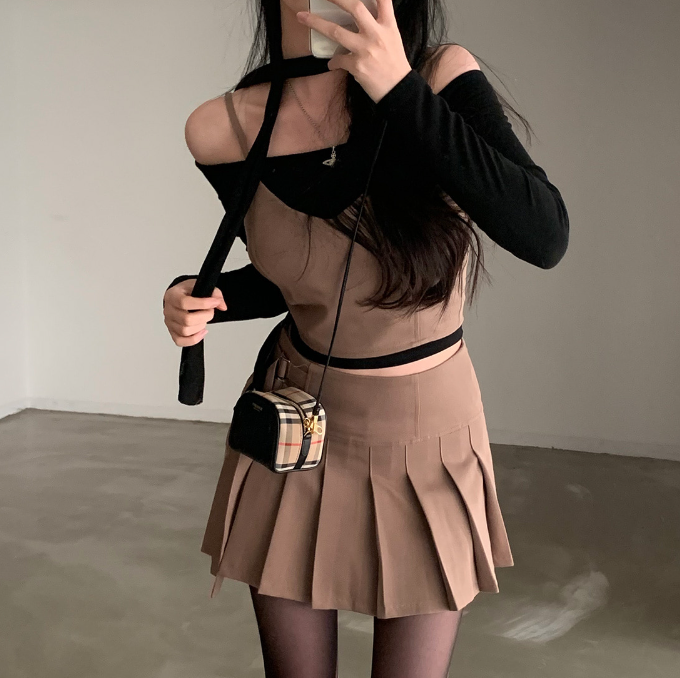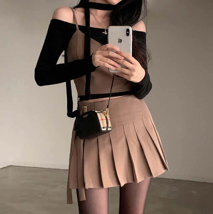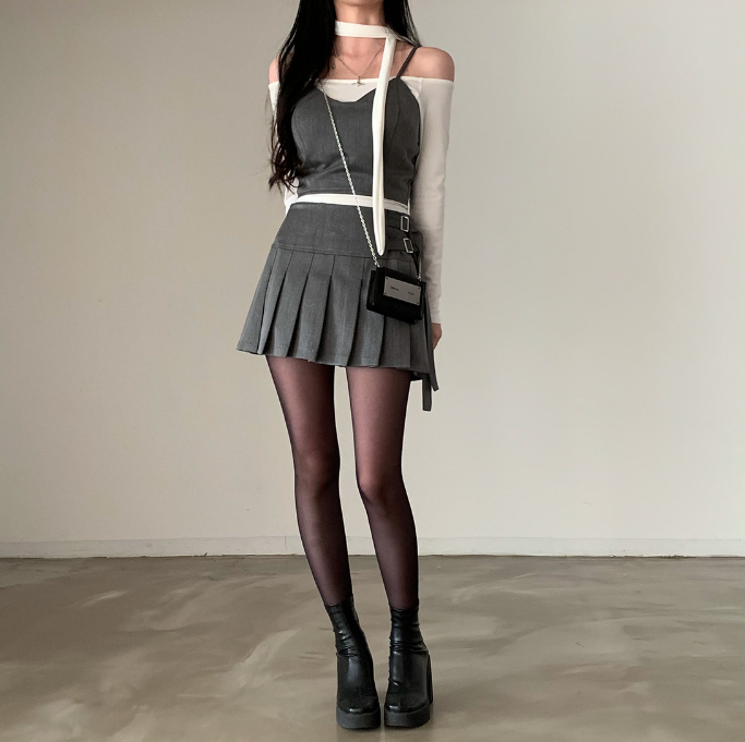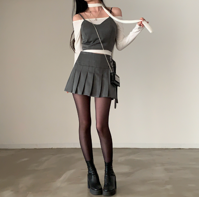 吊帶抹胸配百褶裙