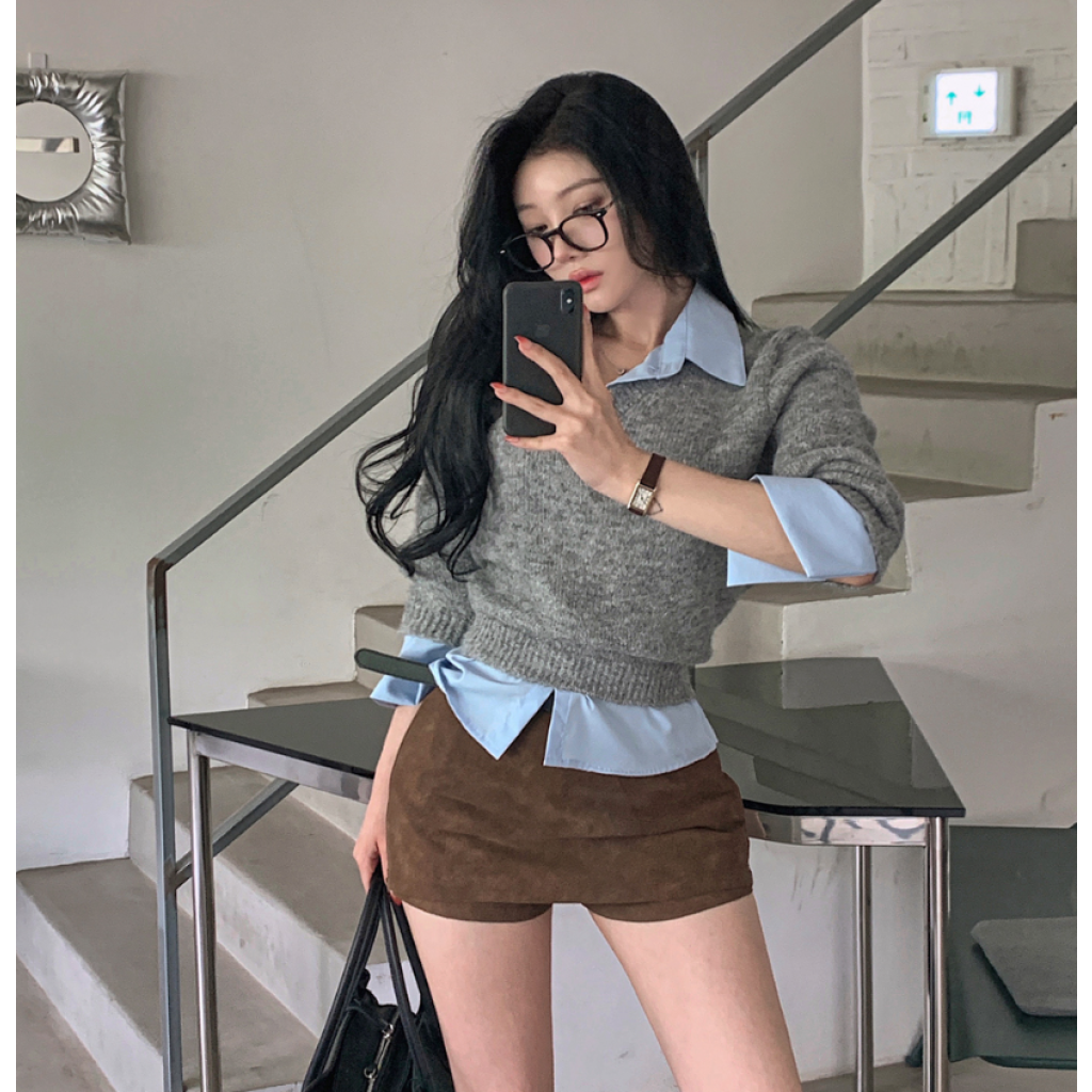 (•‾⌣‾•)假兩件疊穿設計💕日常出街都好容易襯衫❤️