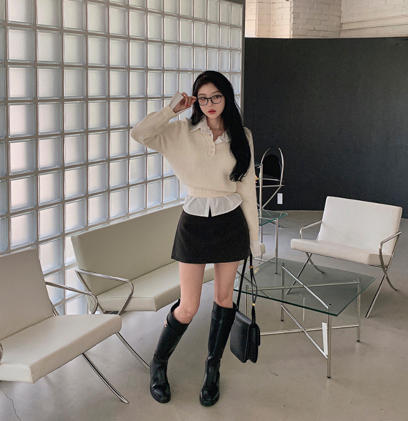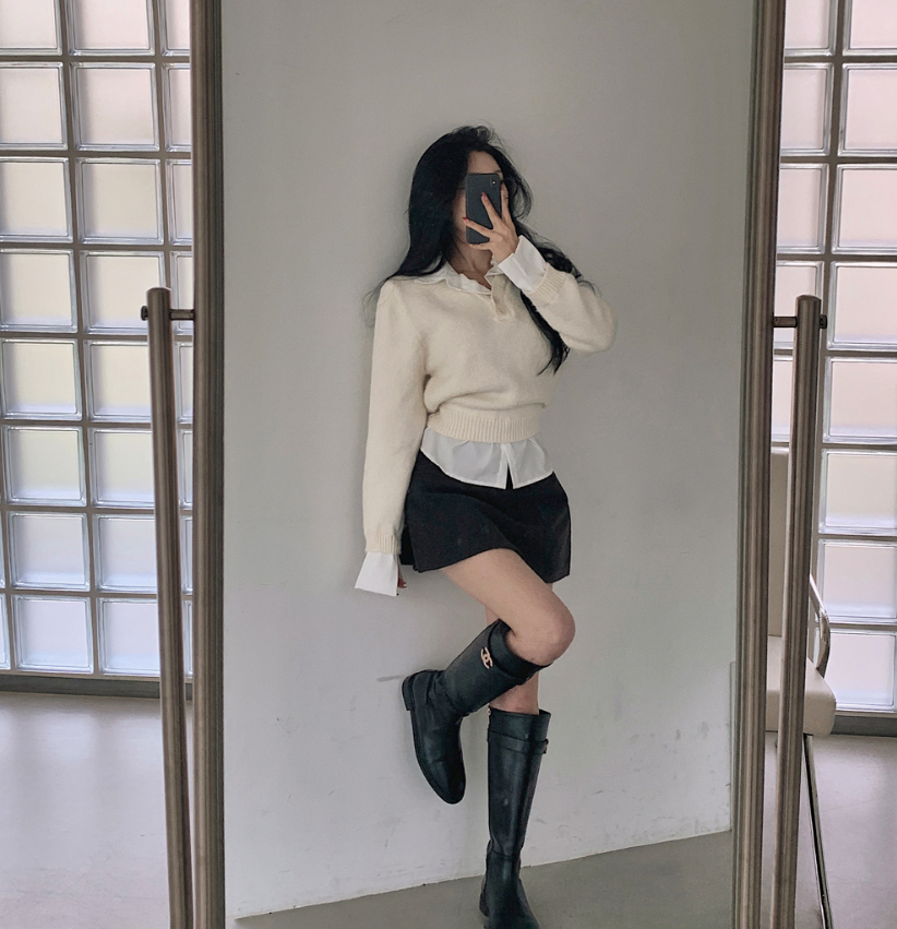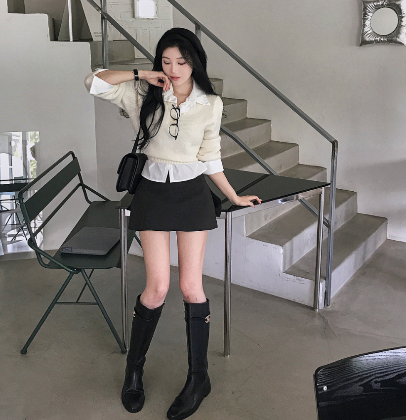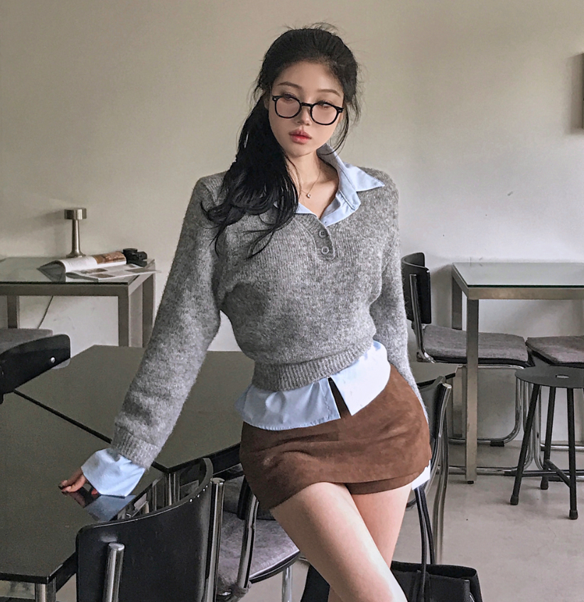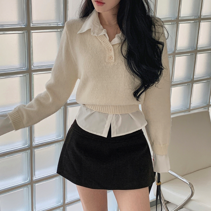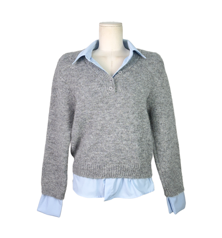 假兩件針織恤衫長袖【3色入】