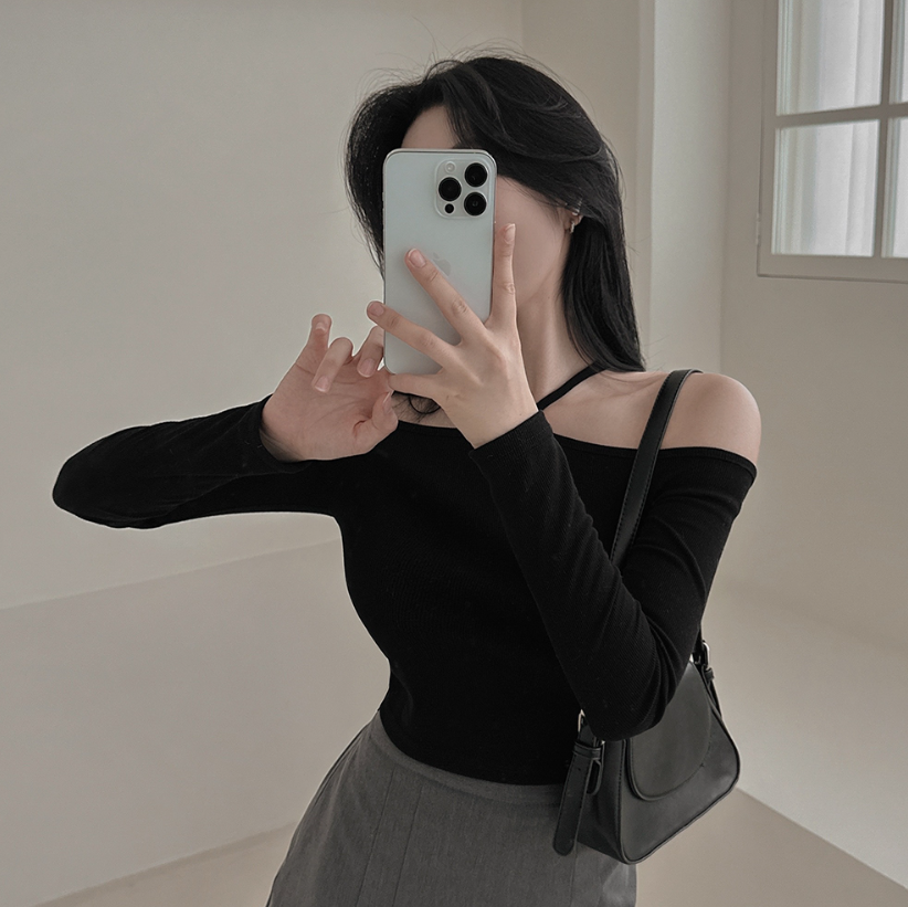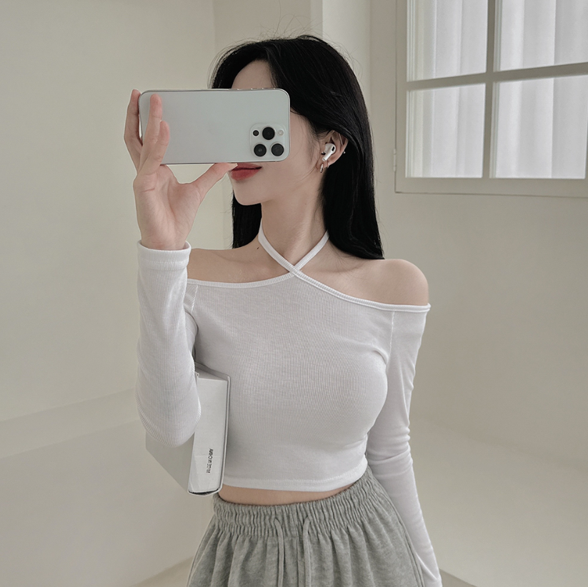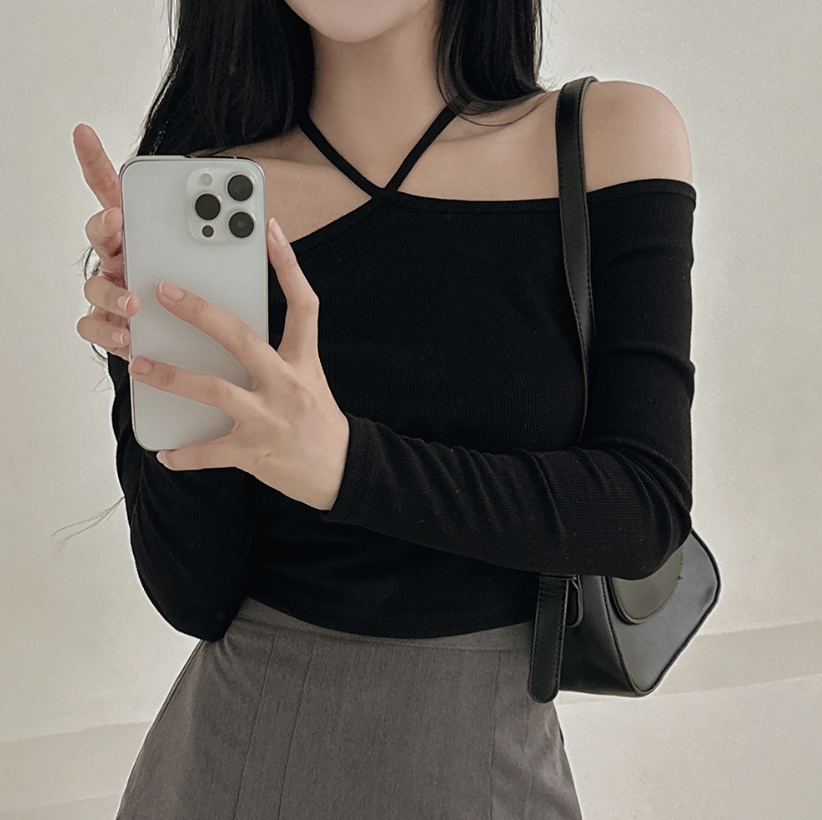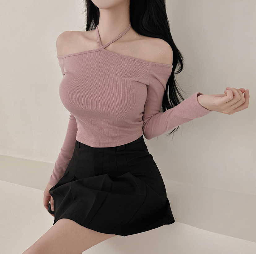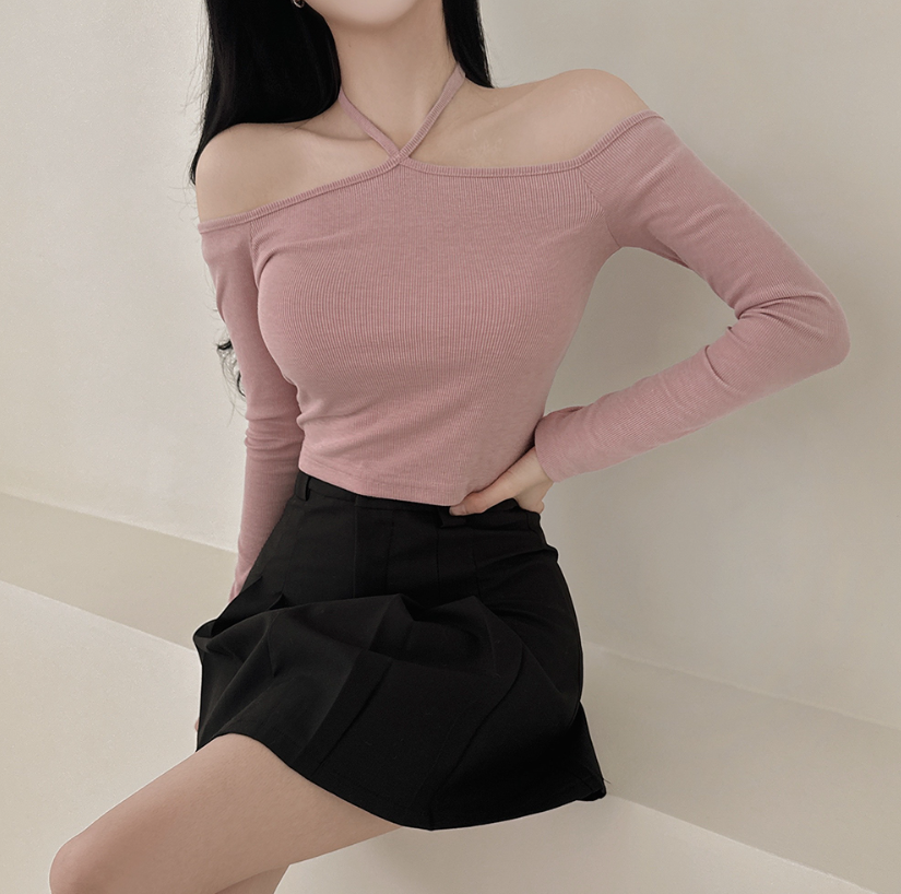 (•‾⌣‾•)露肩綁帶小性感誘人💕約會出街好適合❤️