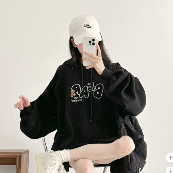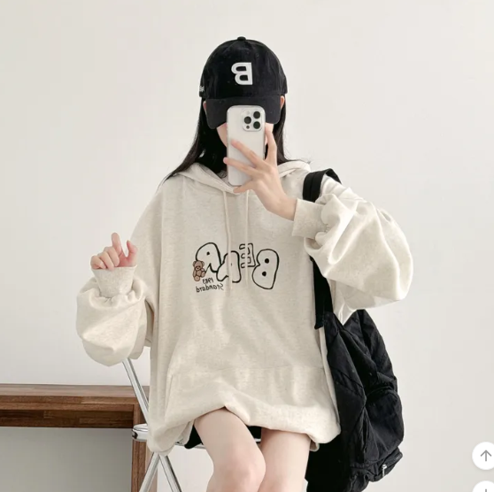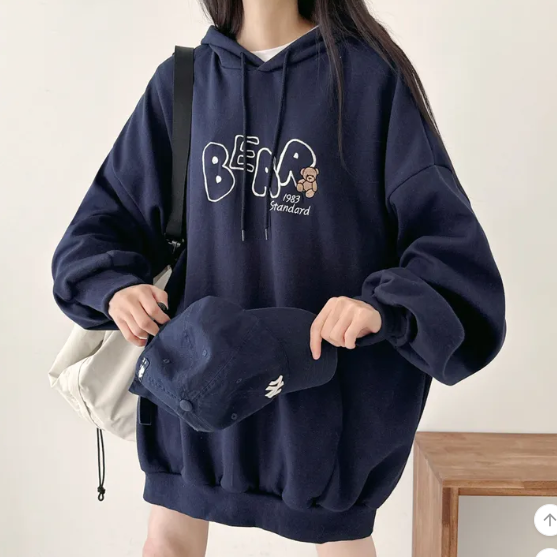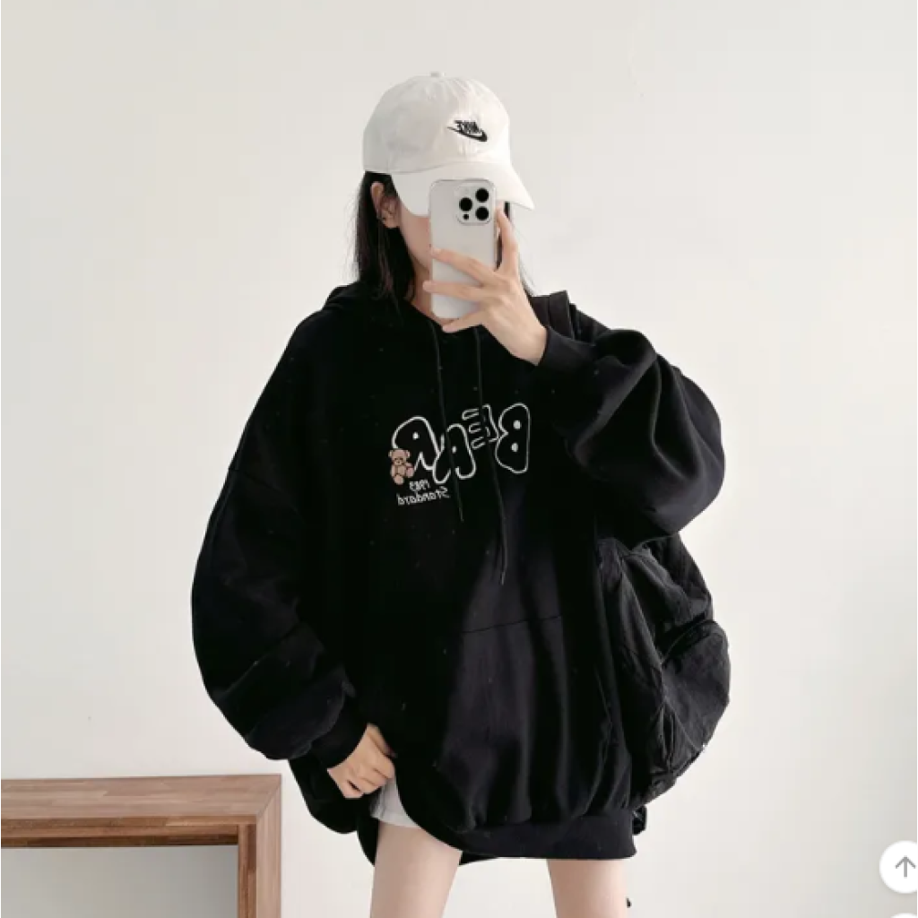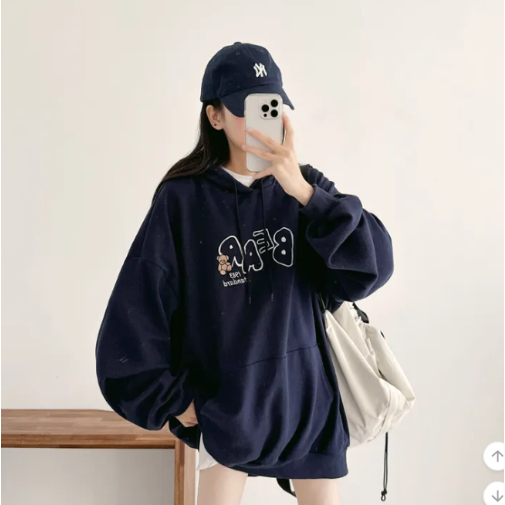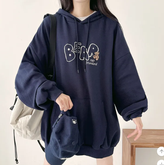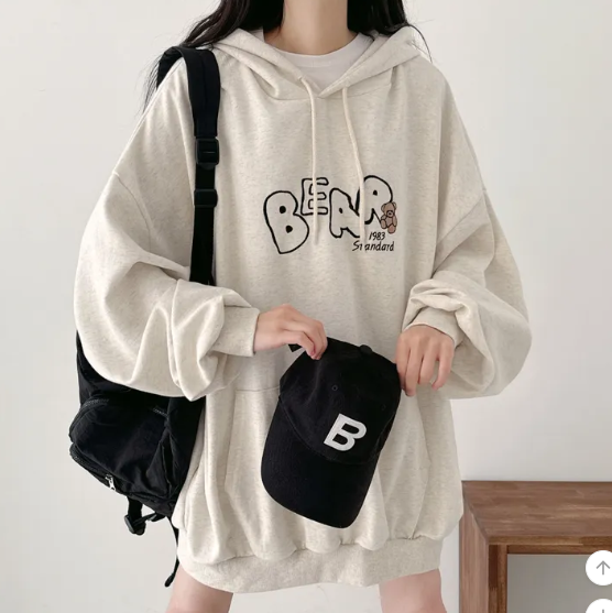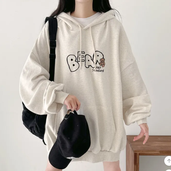 (•‾⌣‾•)連帽寬鬆熊仔衛衣❤️可單穿可襯褲或裙💕