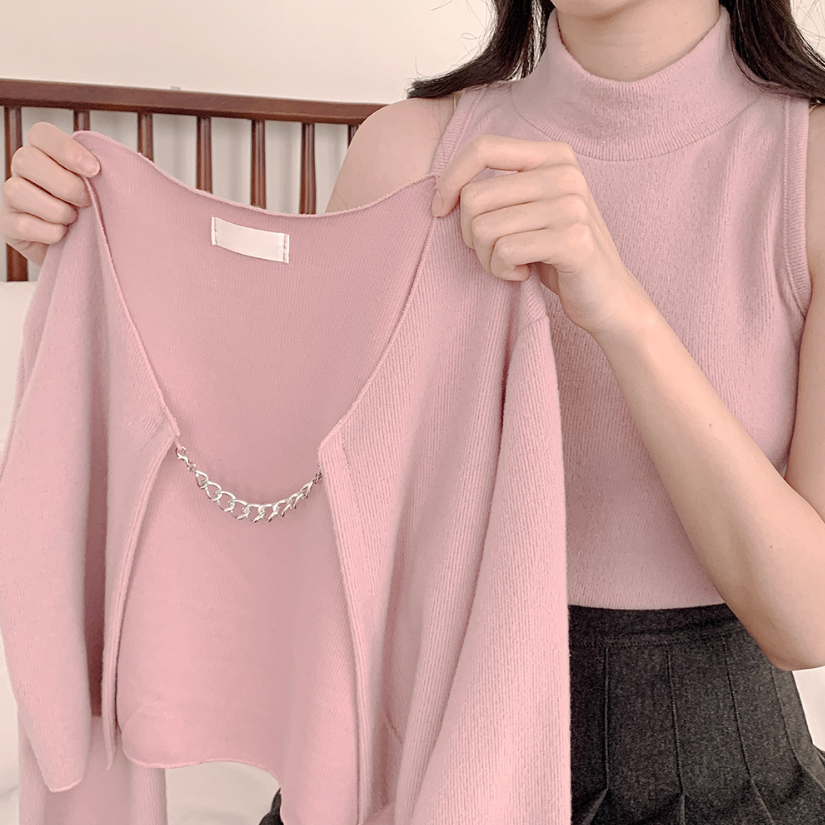 高領背心配銀鏈外套 - 現貨