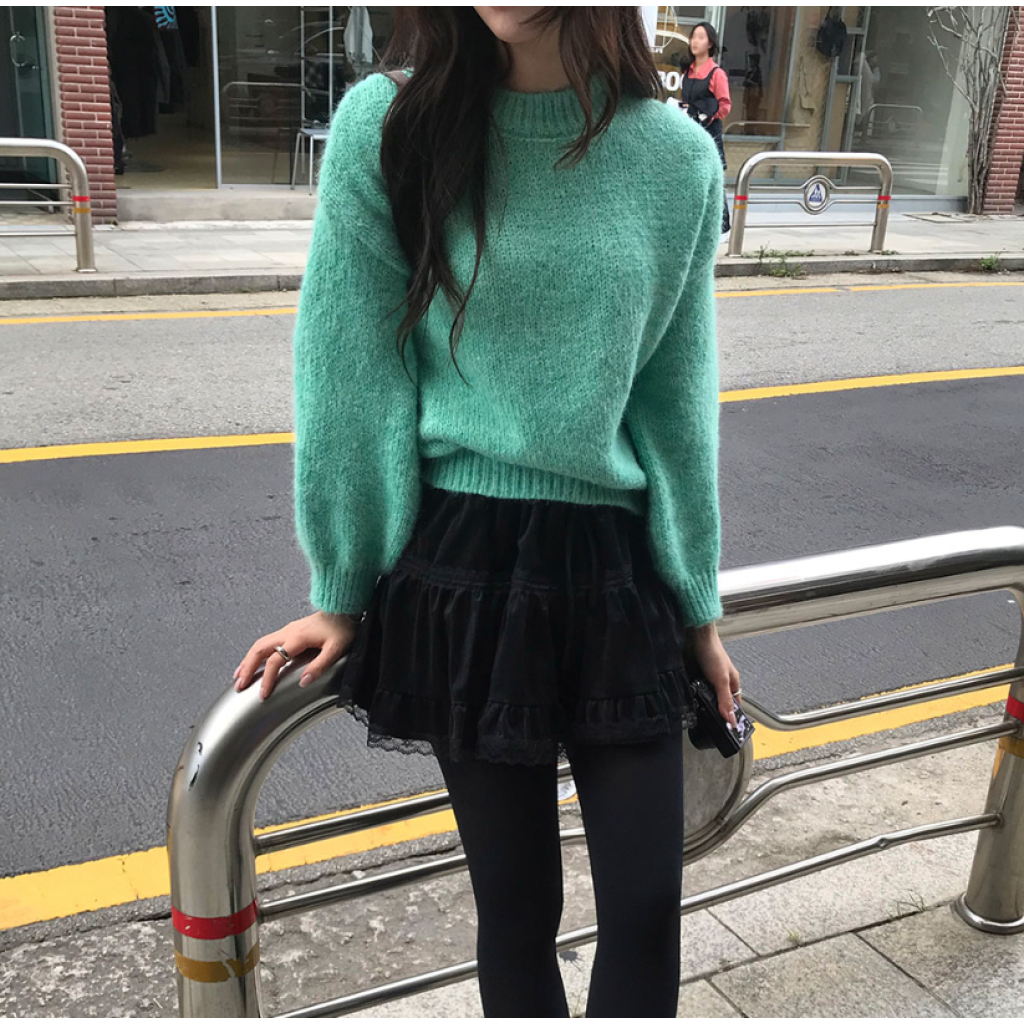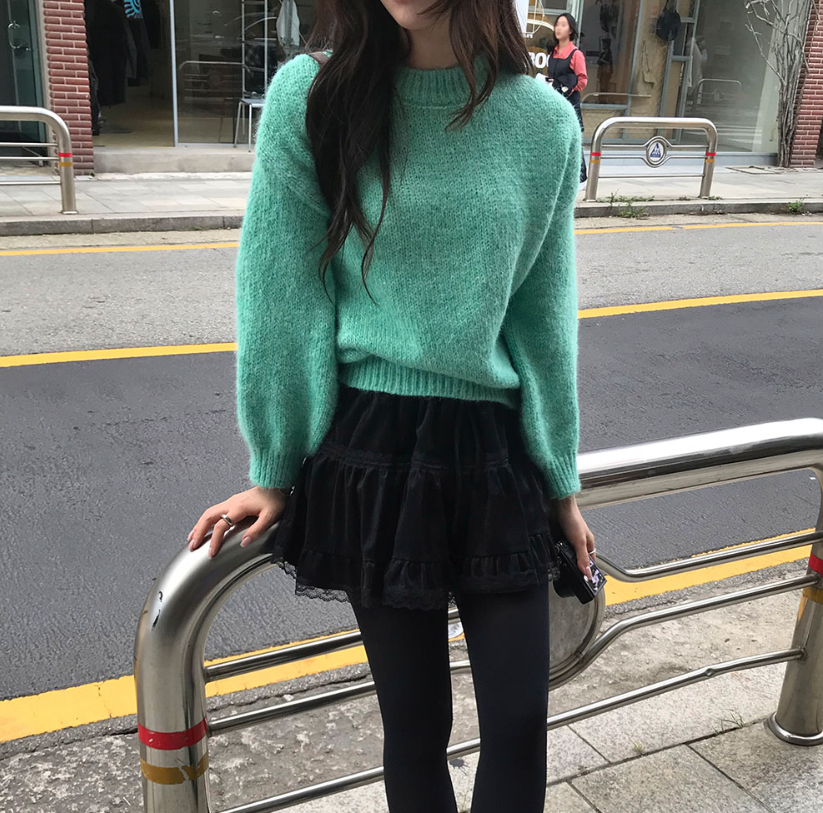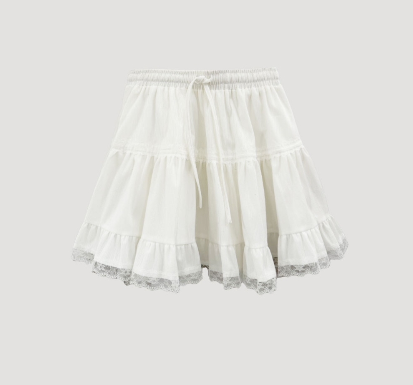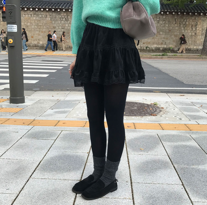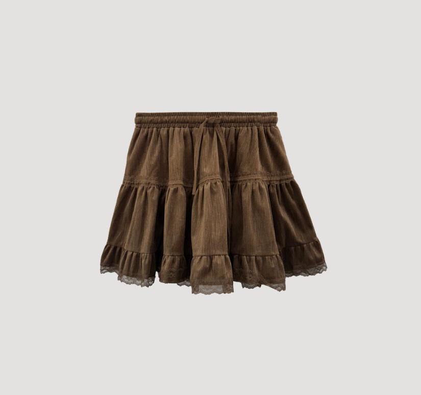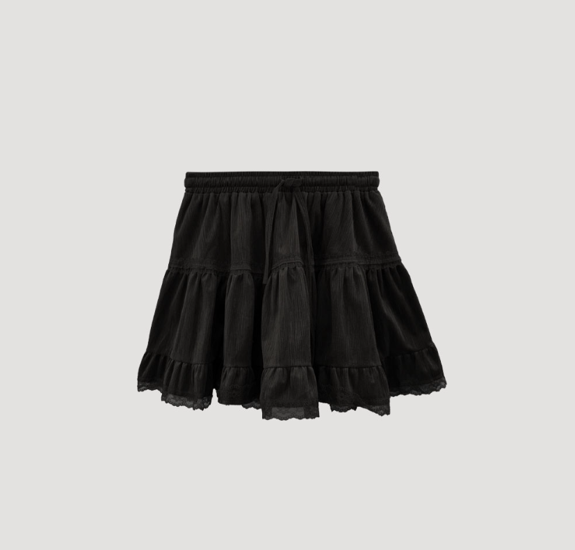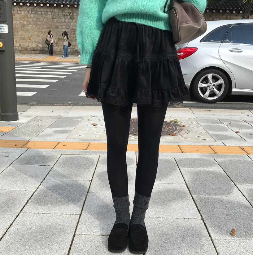 蕾絲天鵝絨橡筋腰半身裙【3色入】
