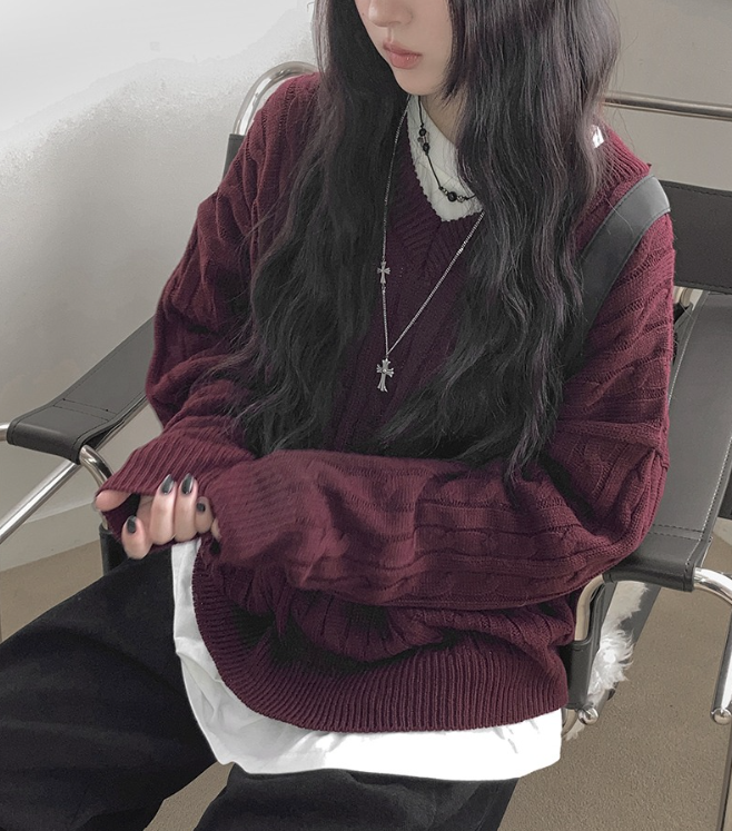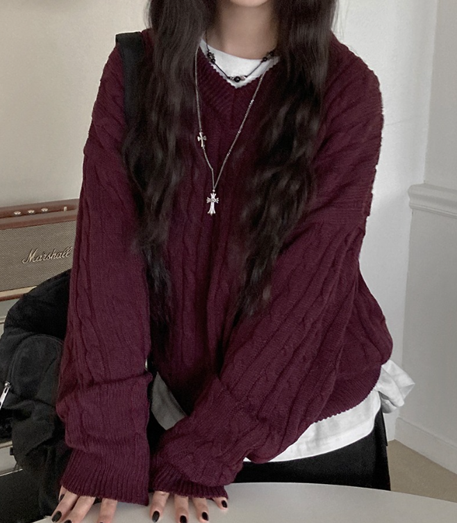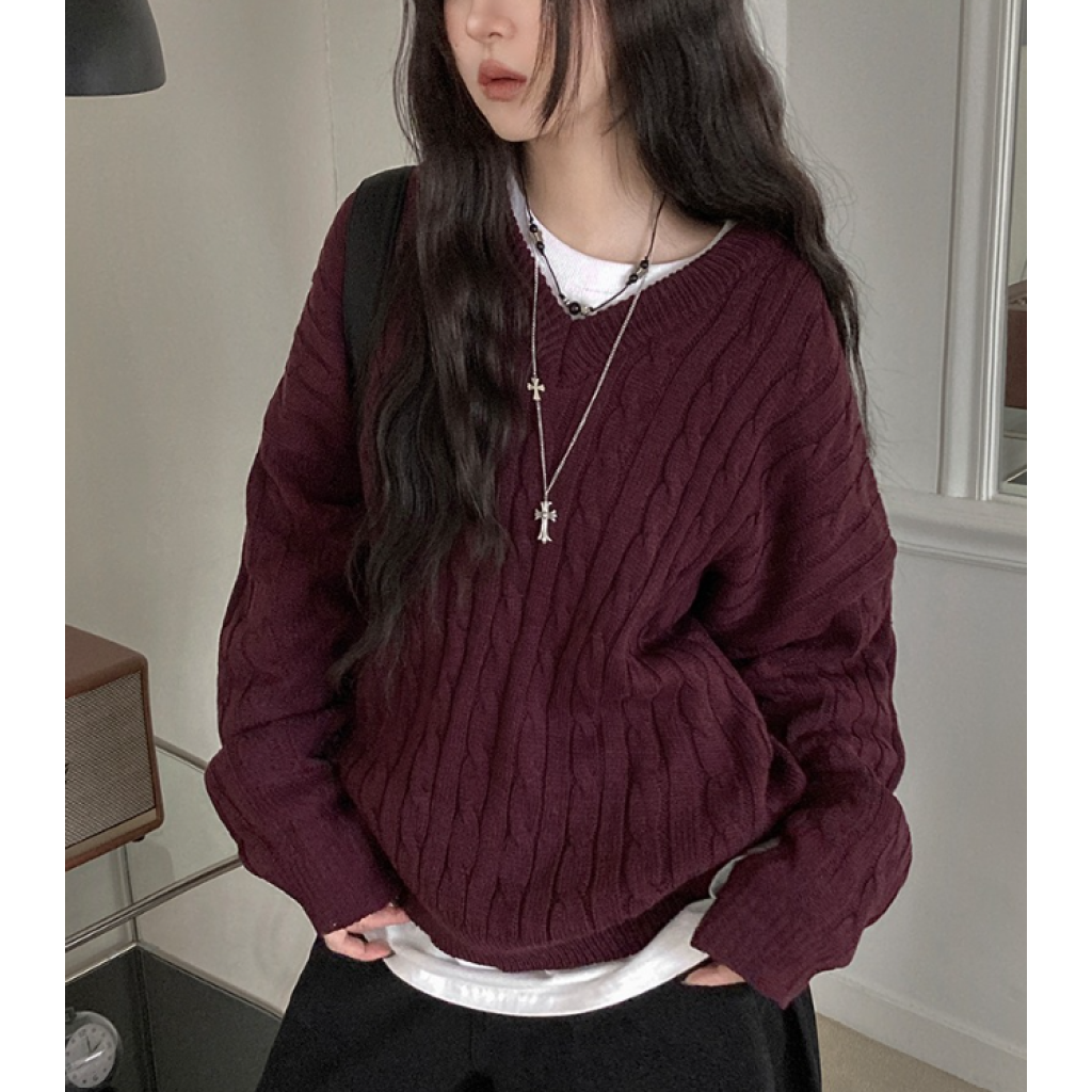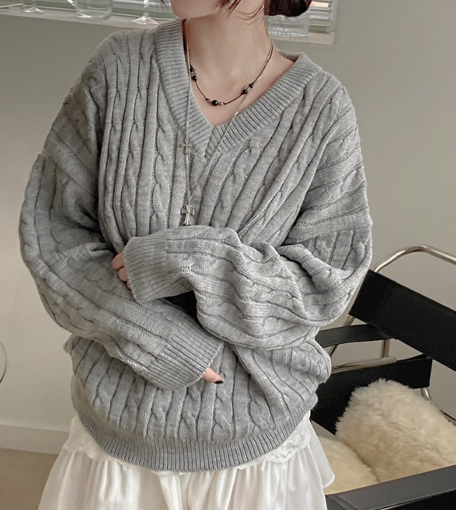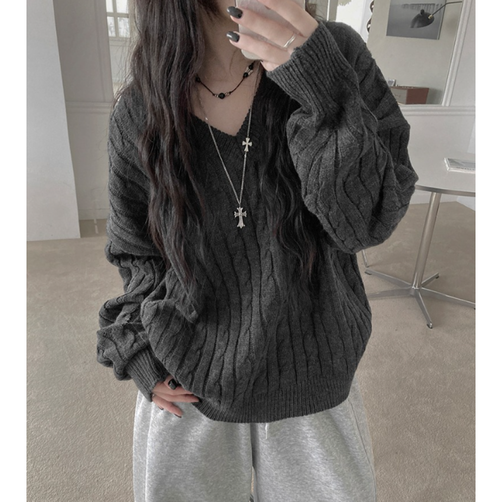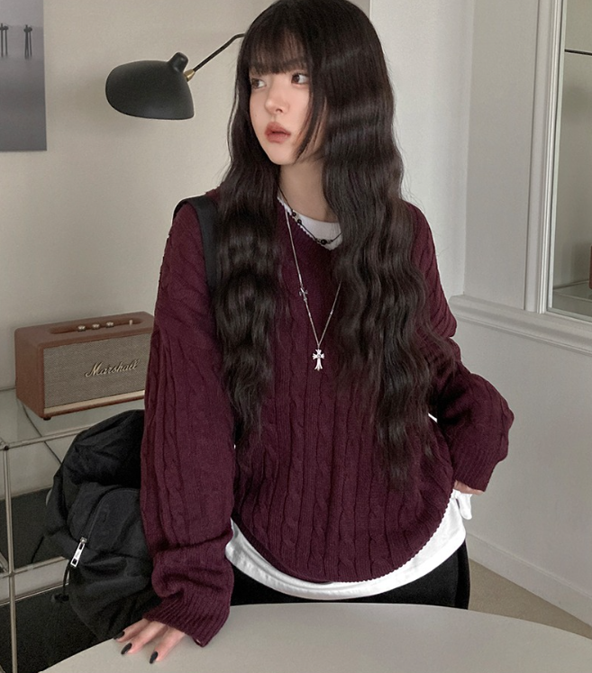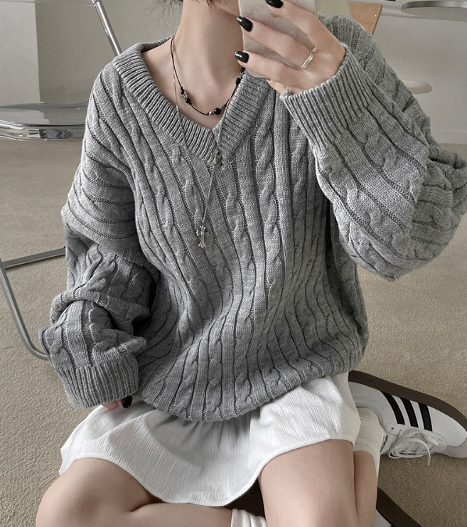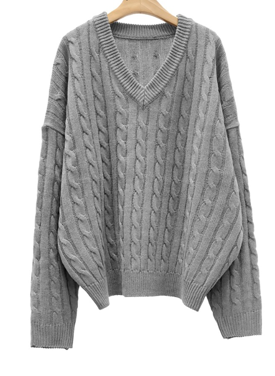 (•‾⌣‾•)麻花針織寬鬆長袖❤️可以單穿或者疊穿恤衫💕