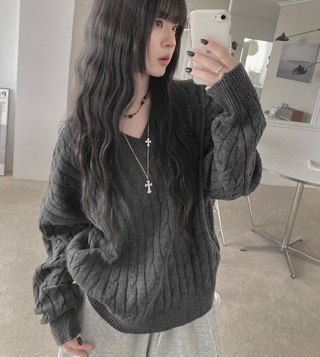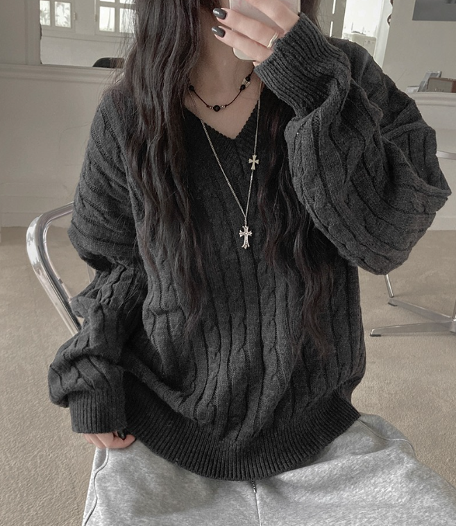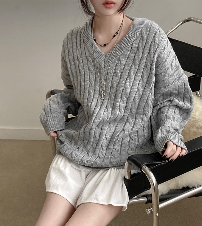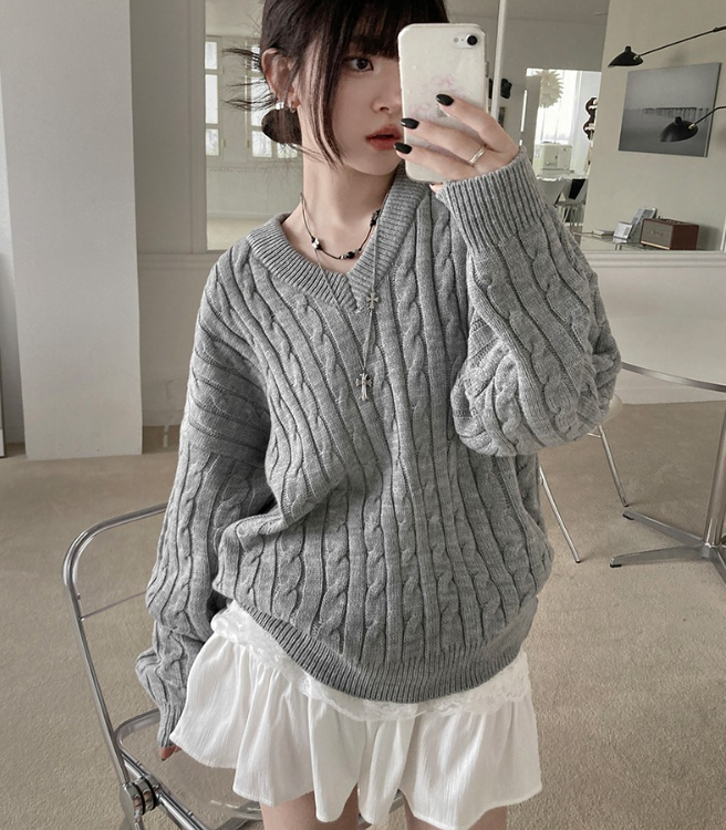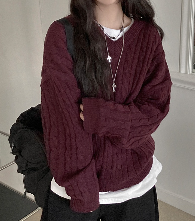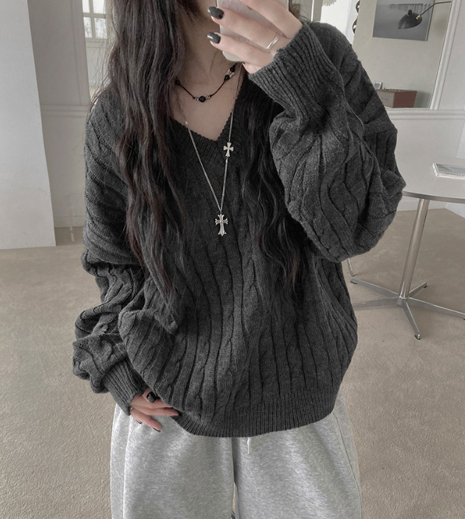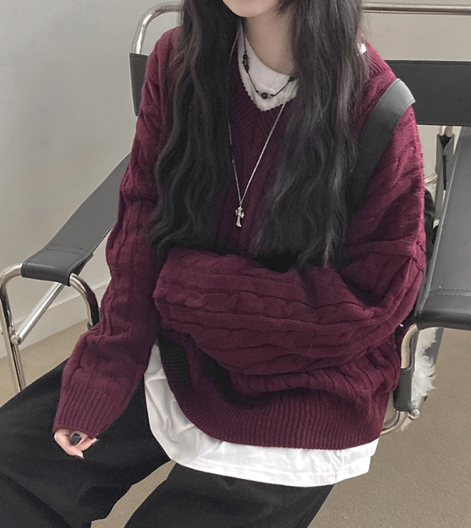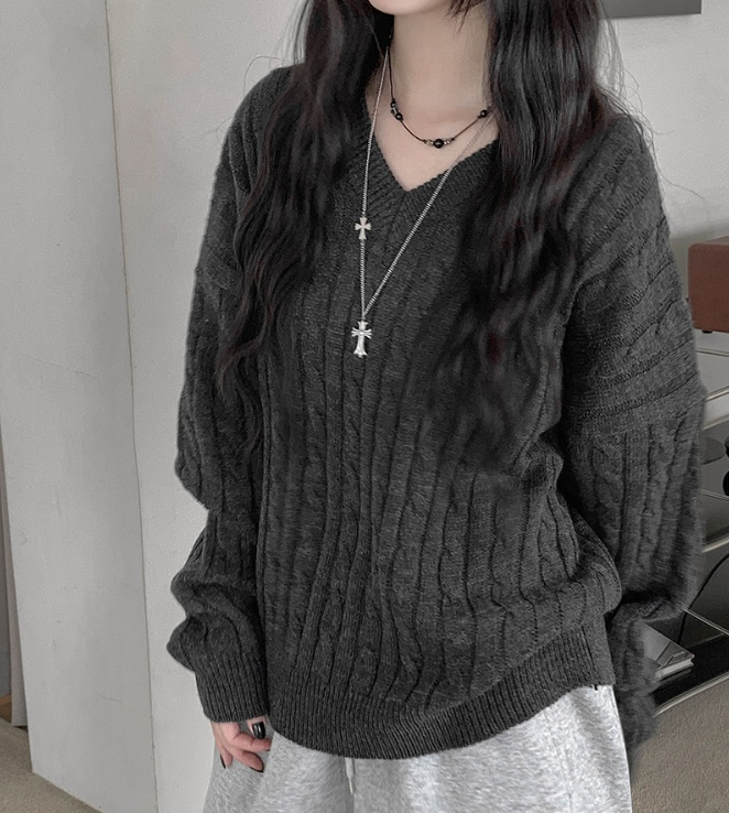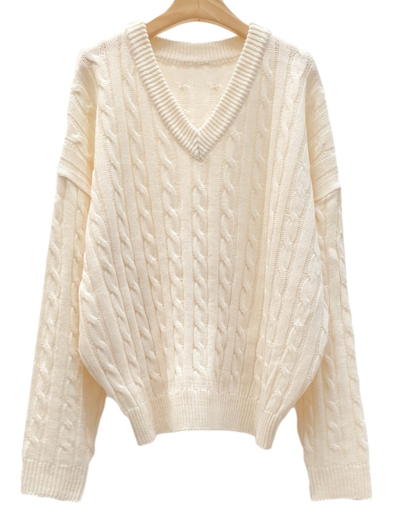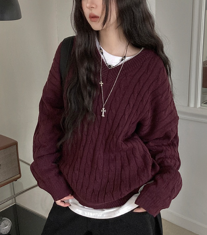 (•‾⌣‾•)麻花針織寬鬆長袖❤️可以單穿或者疊穿恤衫💕