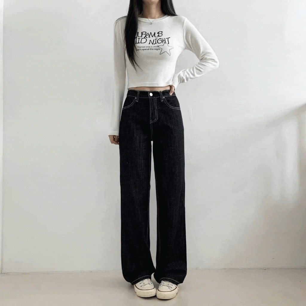 單色高腰直筒牛仔褲【S-XL】 - 現貨