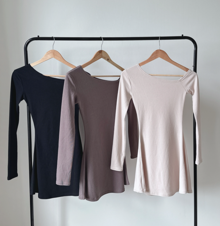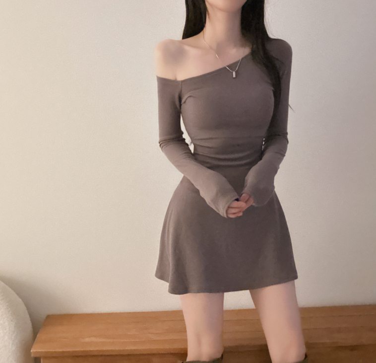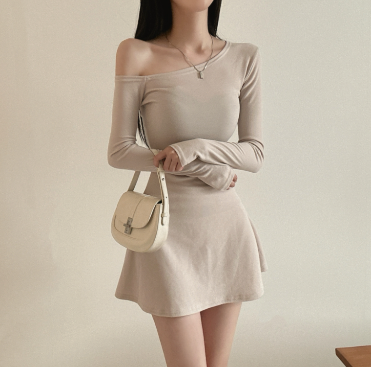 (•‾⌣‾•)單露肩神秘又性感❤️喇叭設計可以遮一遮下身肉肉💕