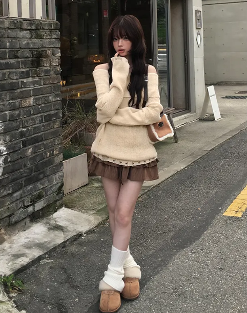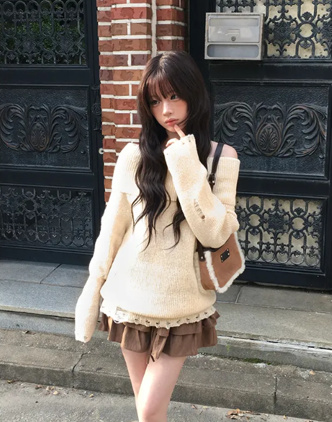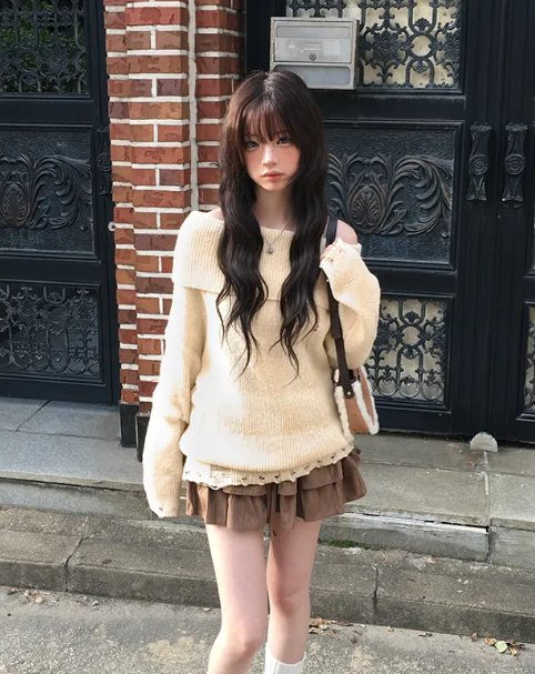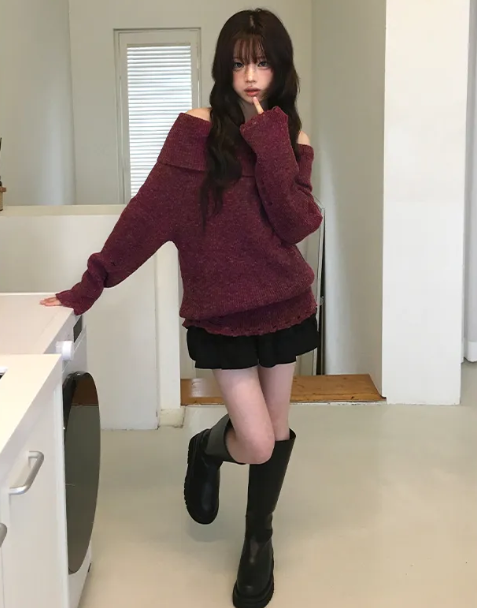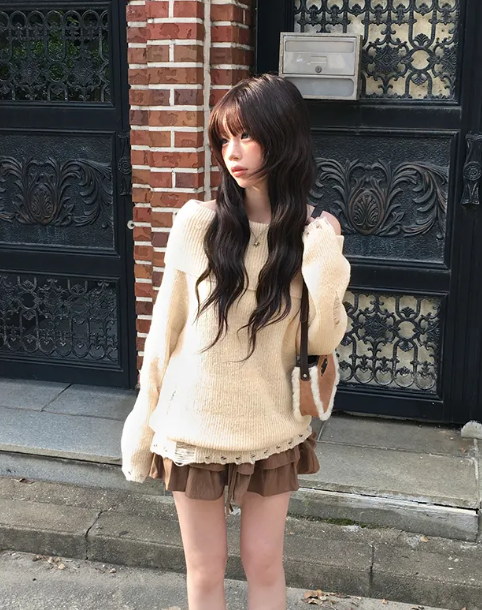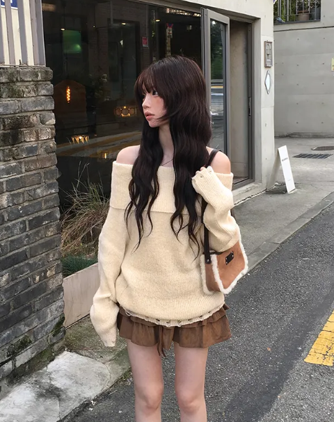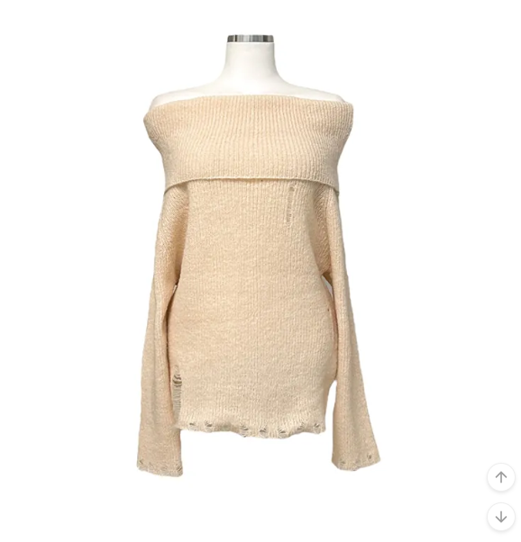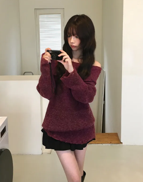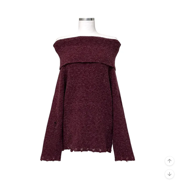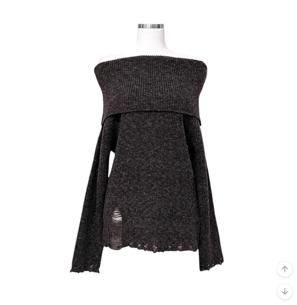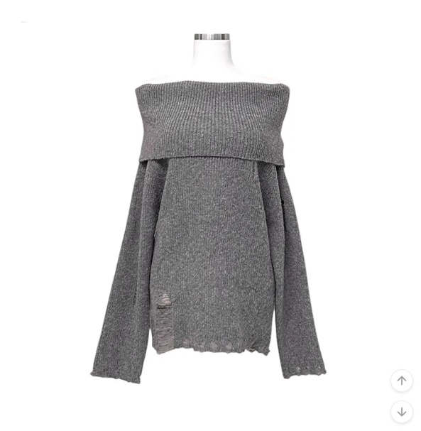 (•‾⌣‾•)露肩寬鬆針織長袖💕破洞設計唔會太悶❤️