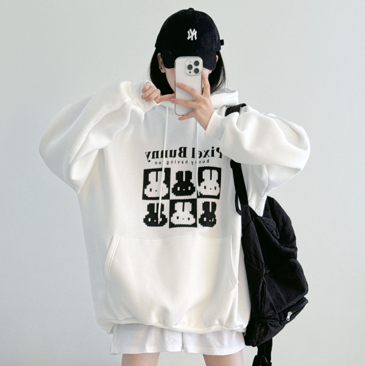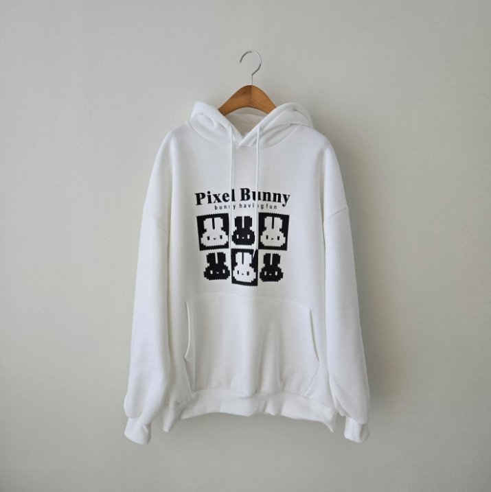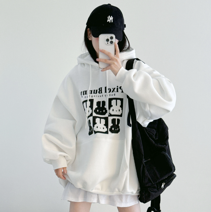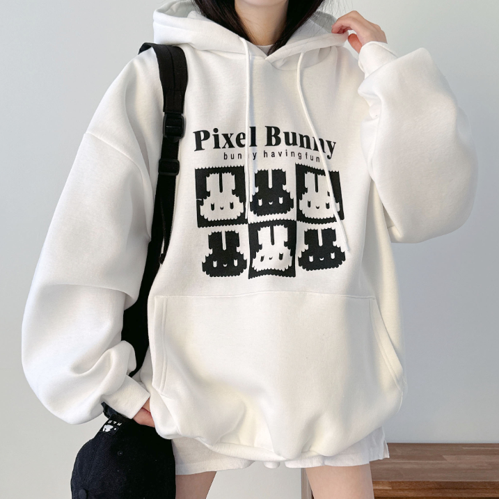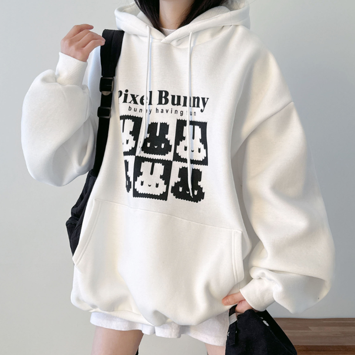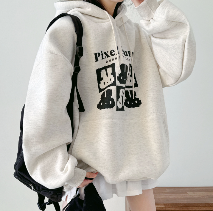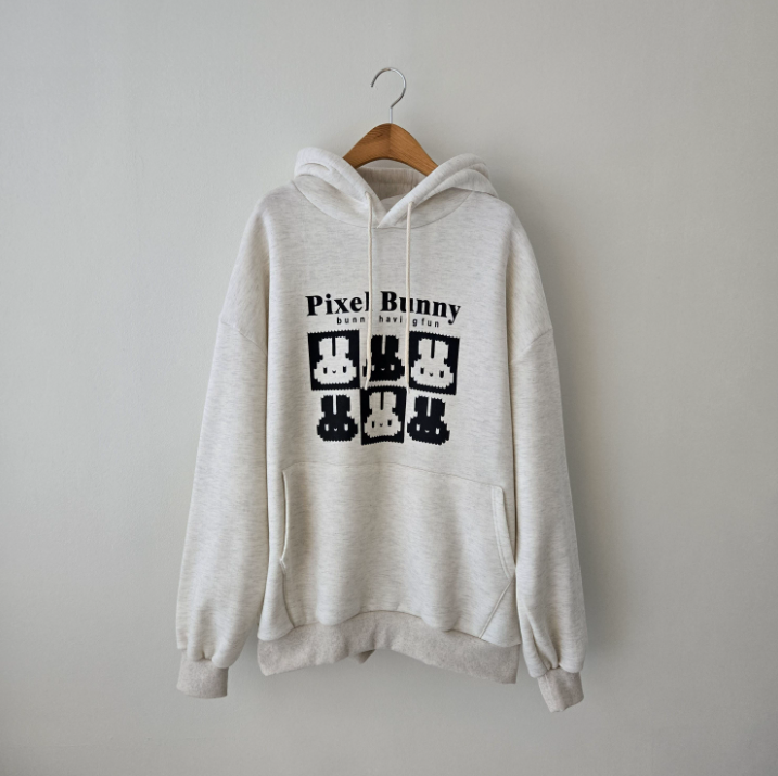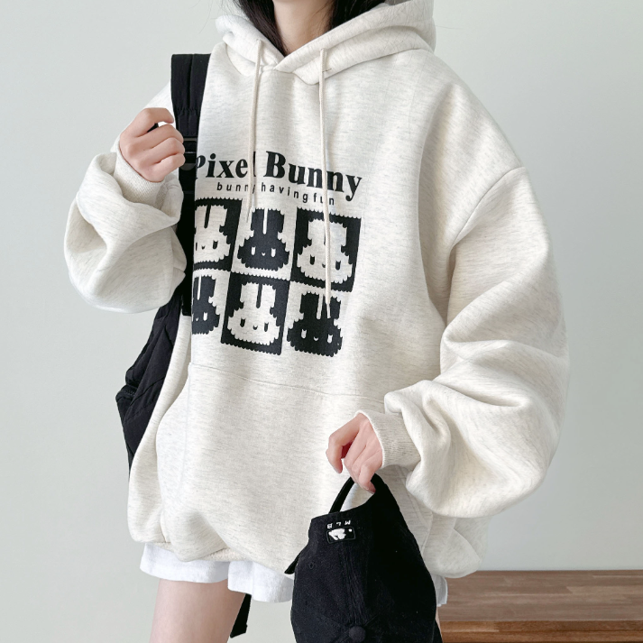 寬鬆像素兔子抓絨連帽衫【3色入】