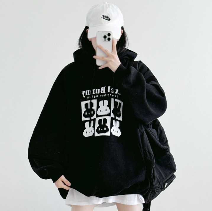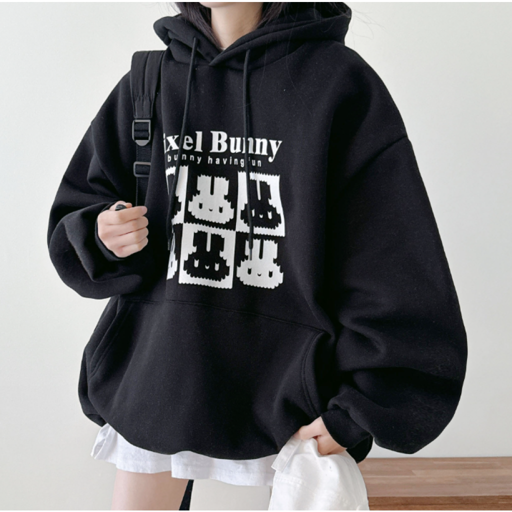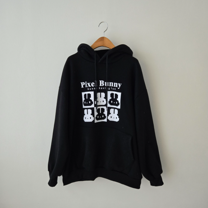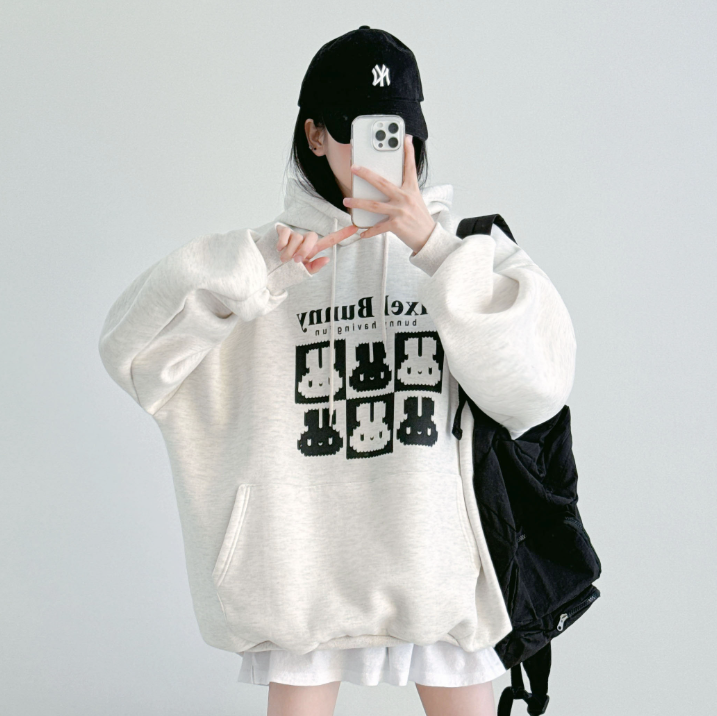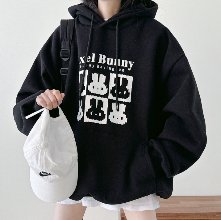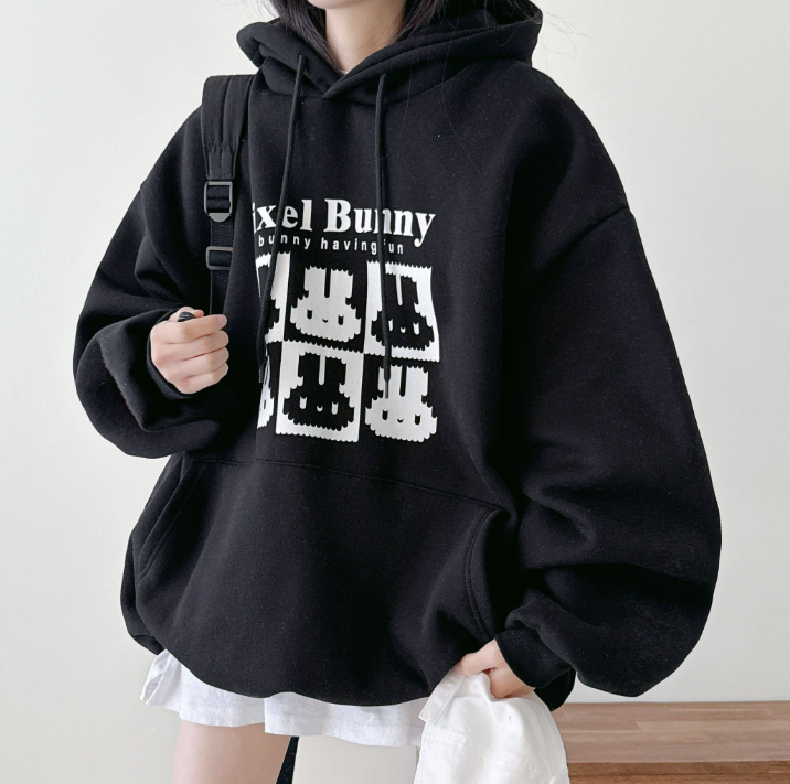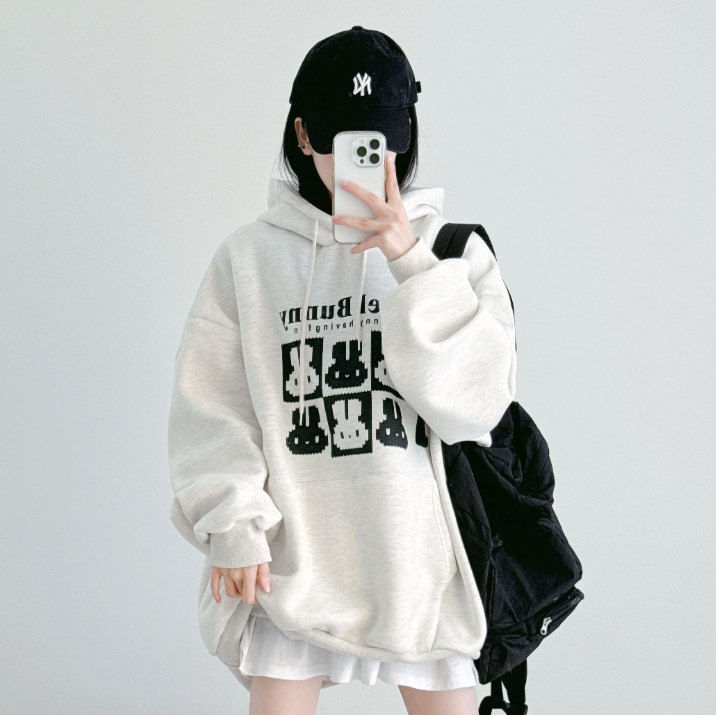 寬鬆像素兔子抓絨連帽衫【3色入】