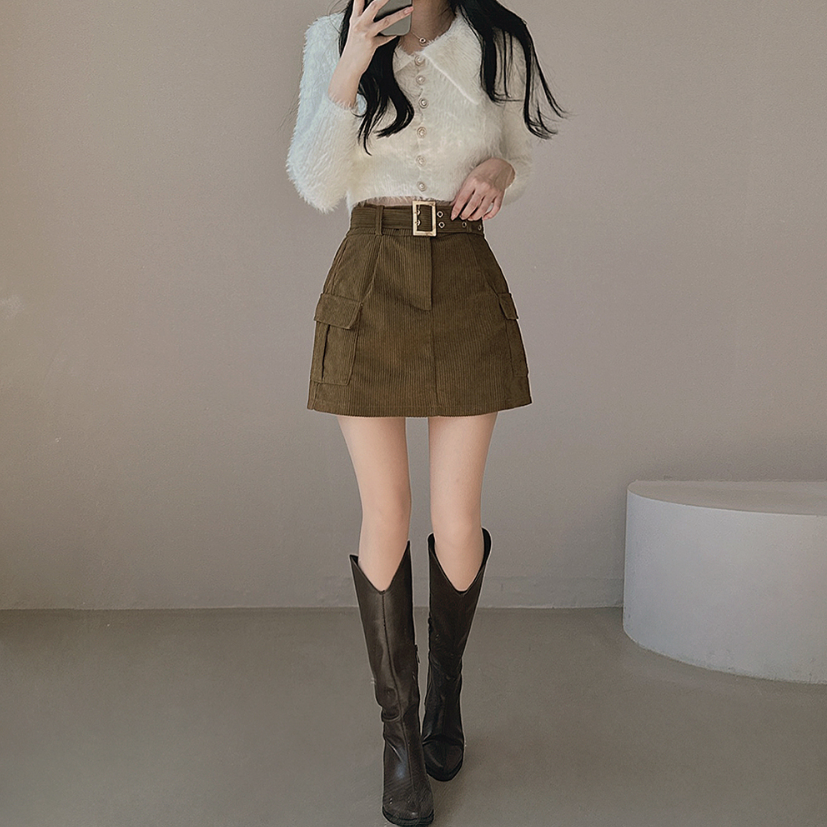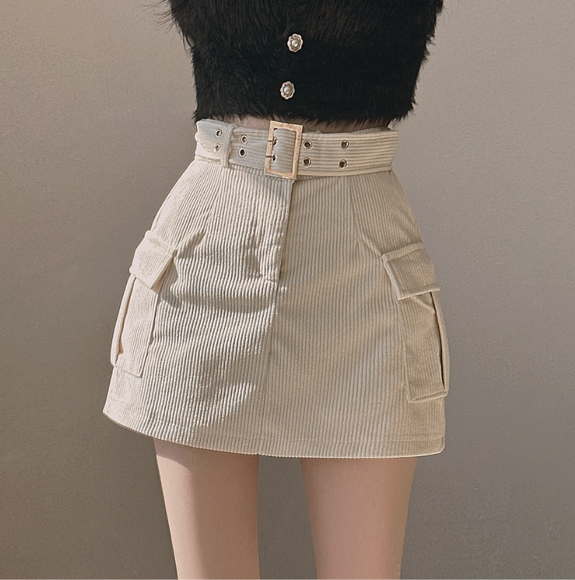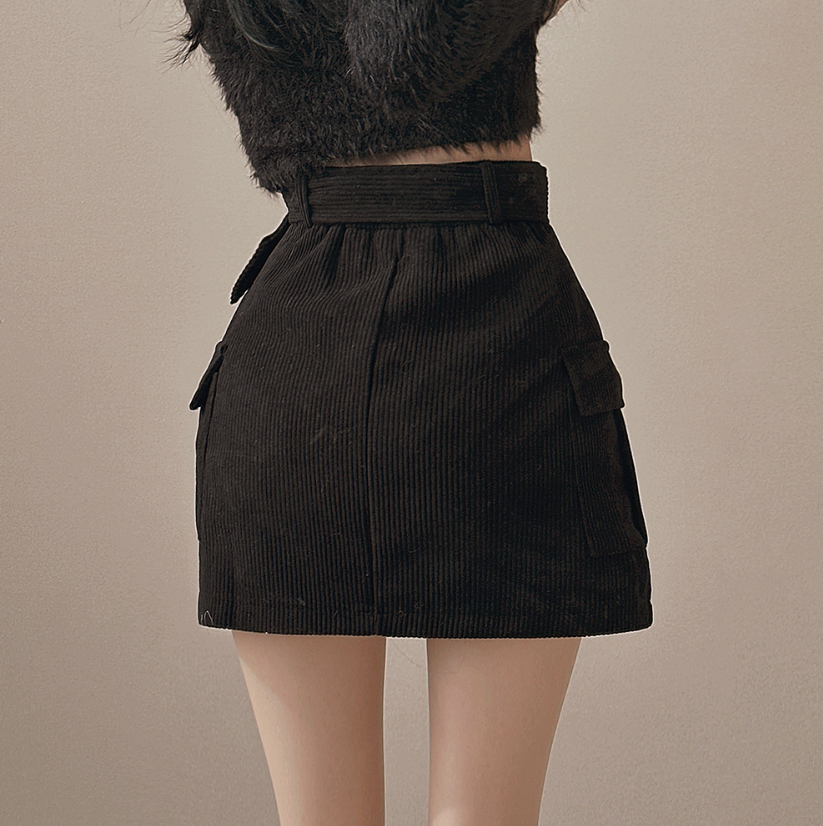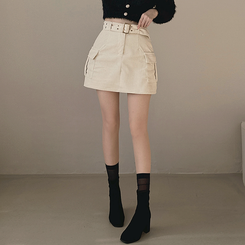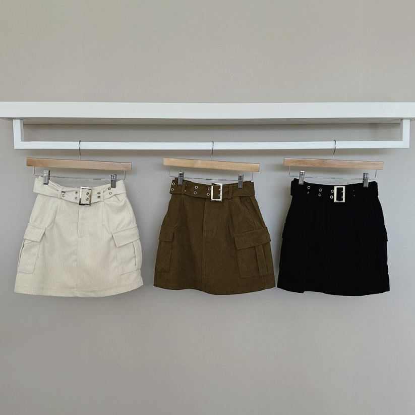 燈芯絨粗腰帶工裝裙 -現貨