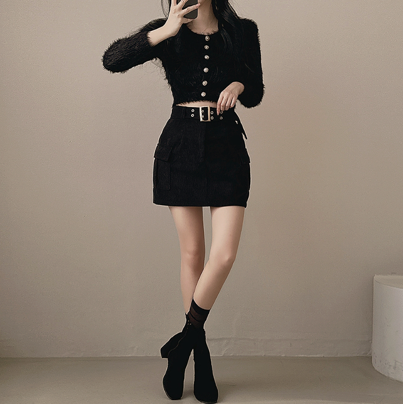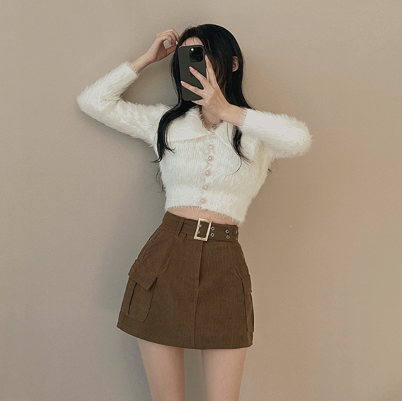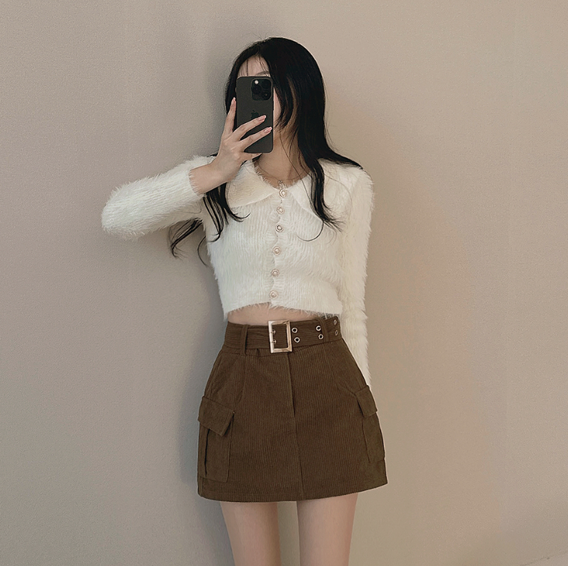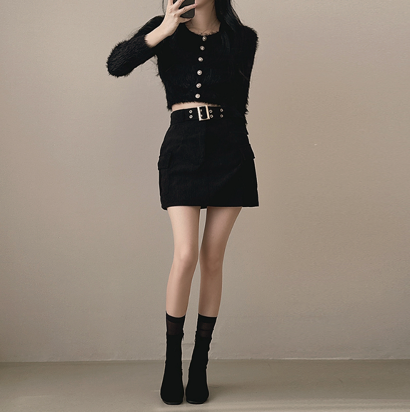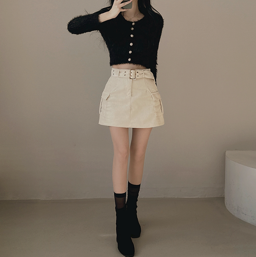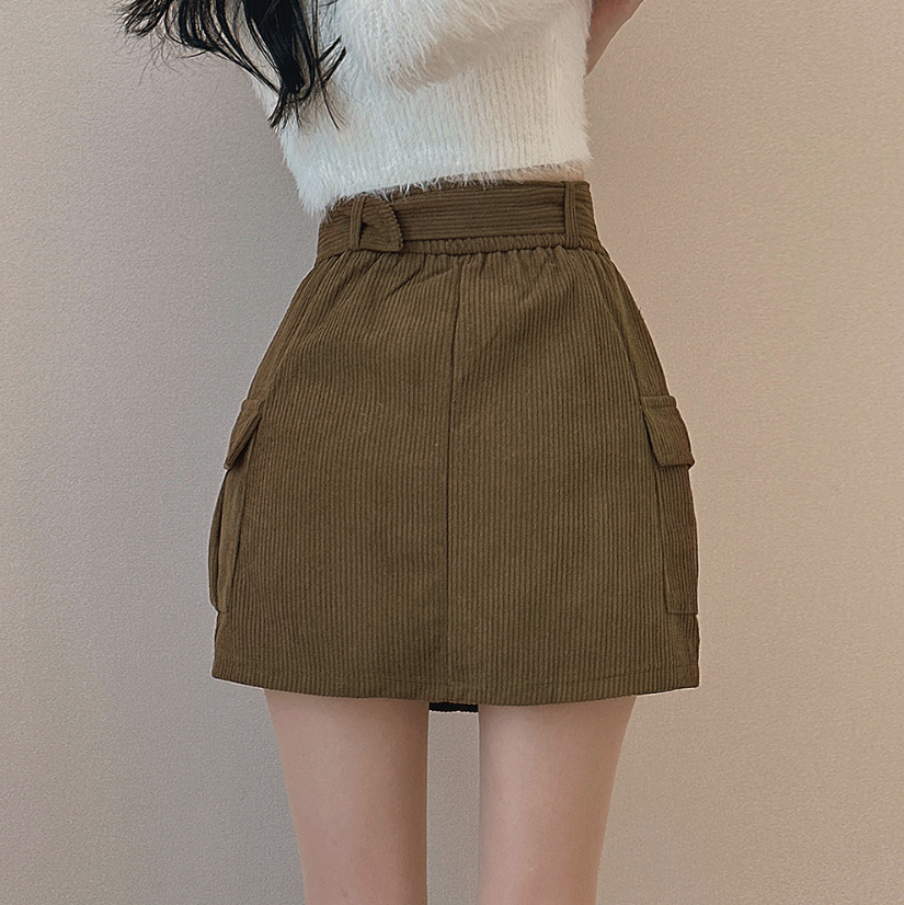 燈芯絨粗腰帶工裝裙 -現貨