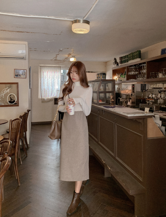 (•‾⌣‾•)羊毛直身長裙好適合秋冬💕簡約又容易襯❤️