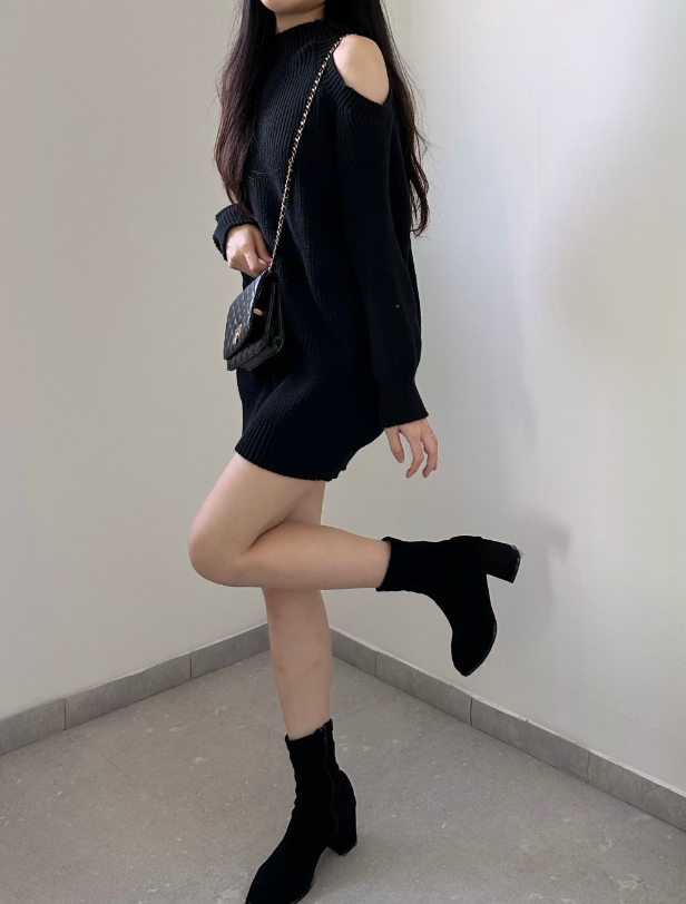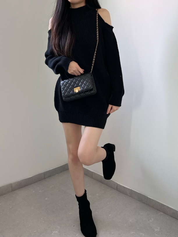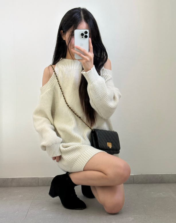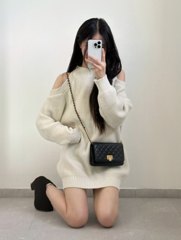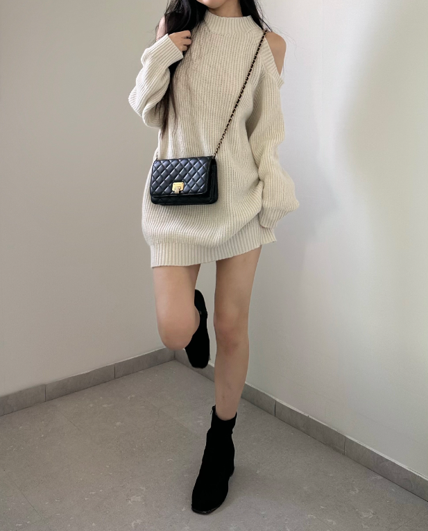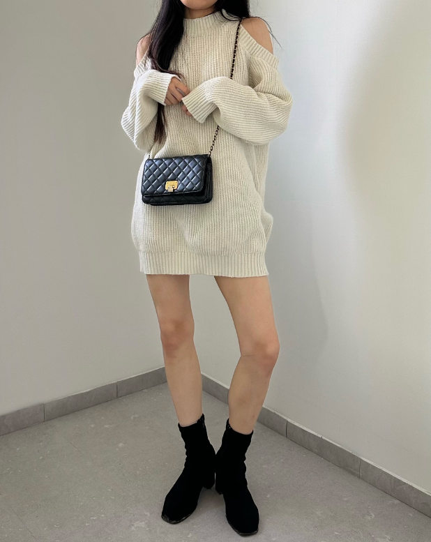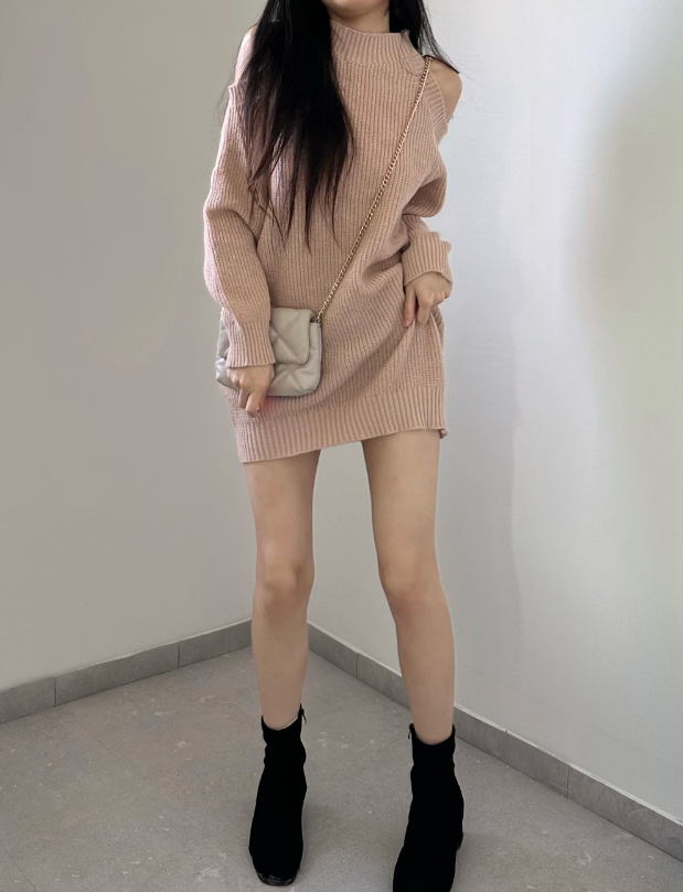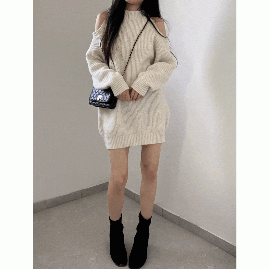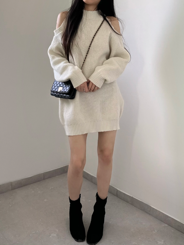 圓領露肩針織連身裙